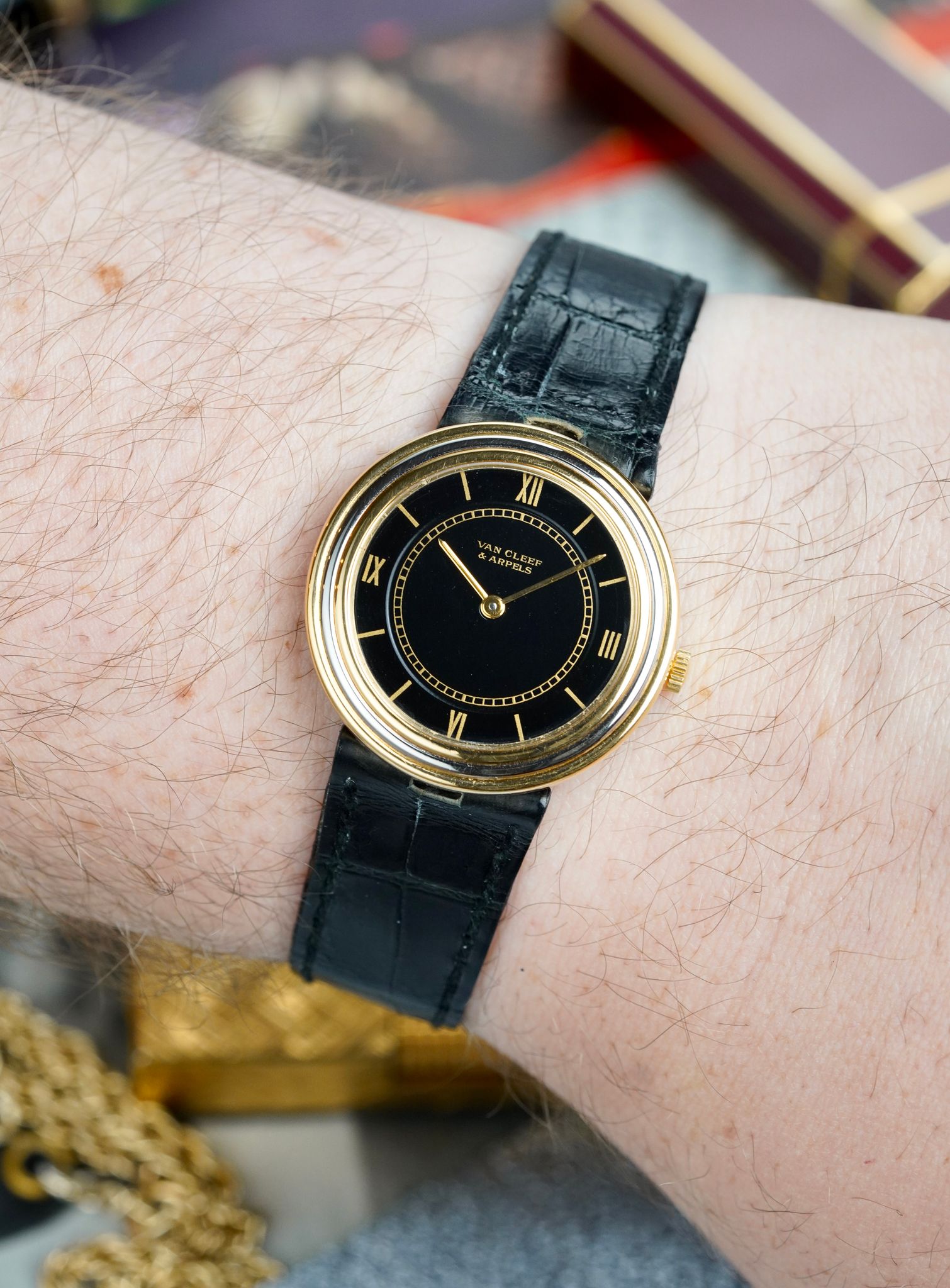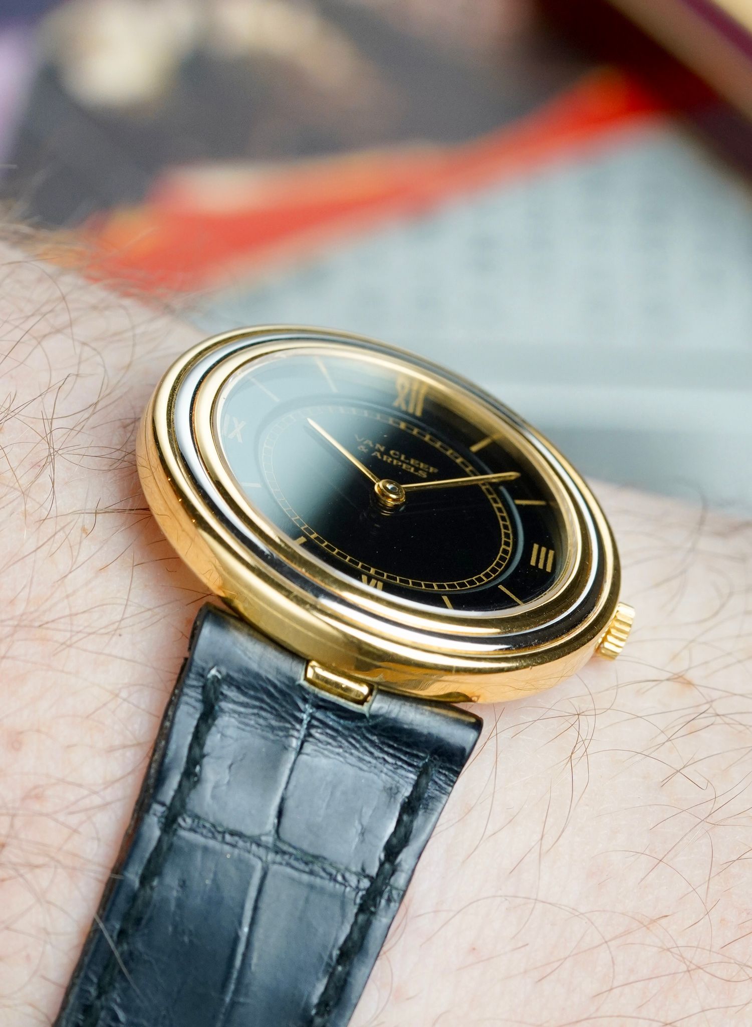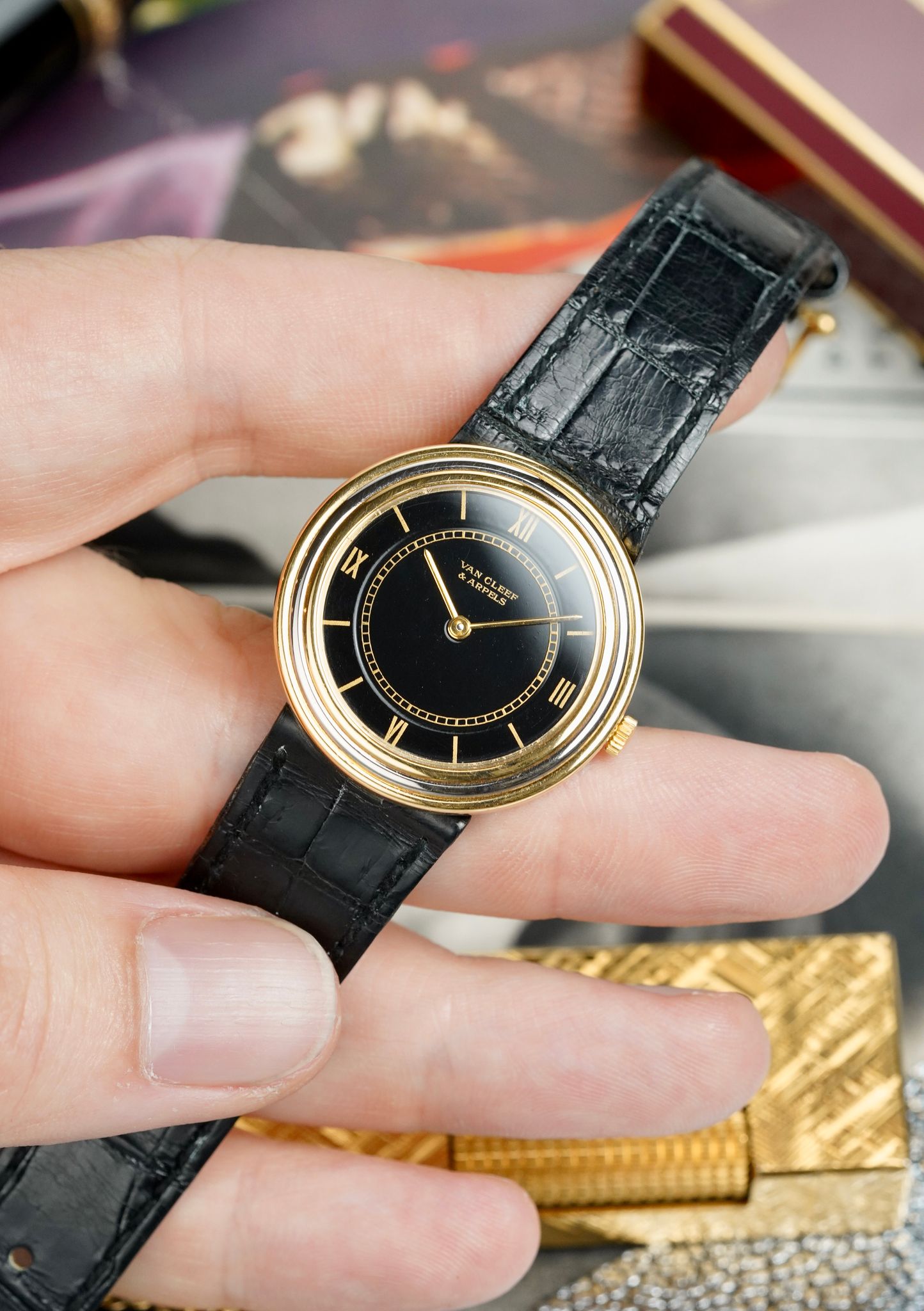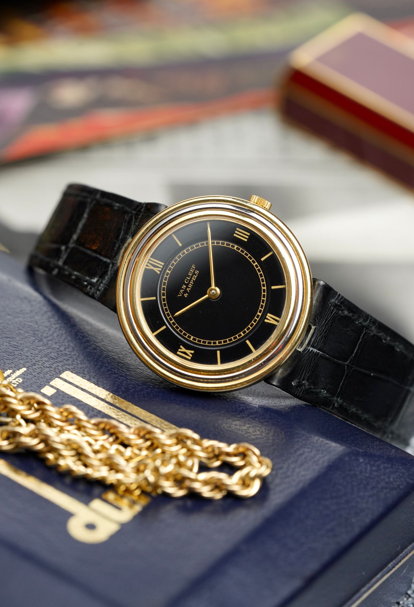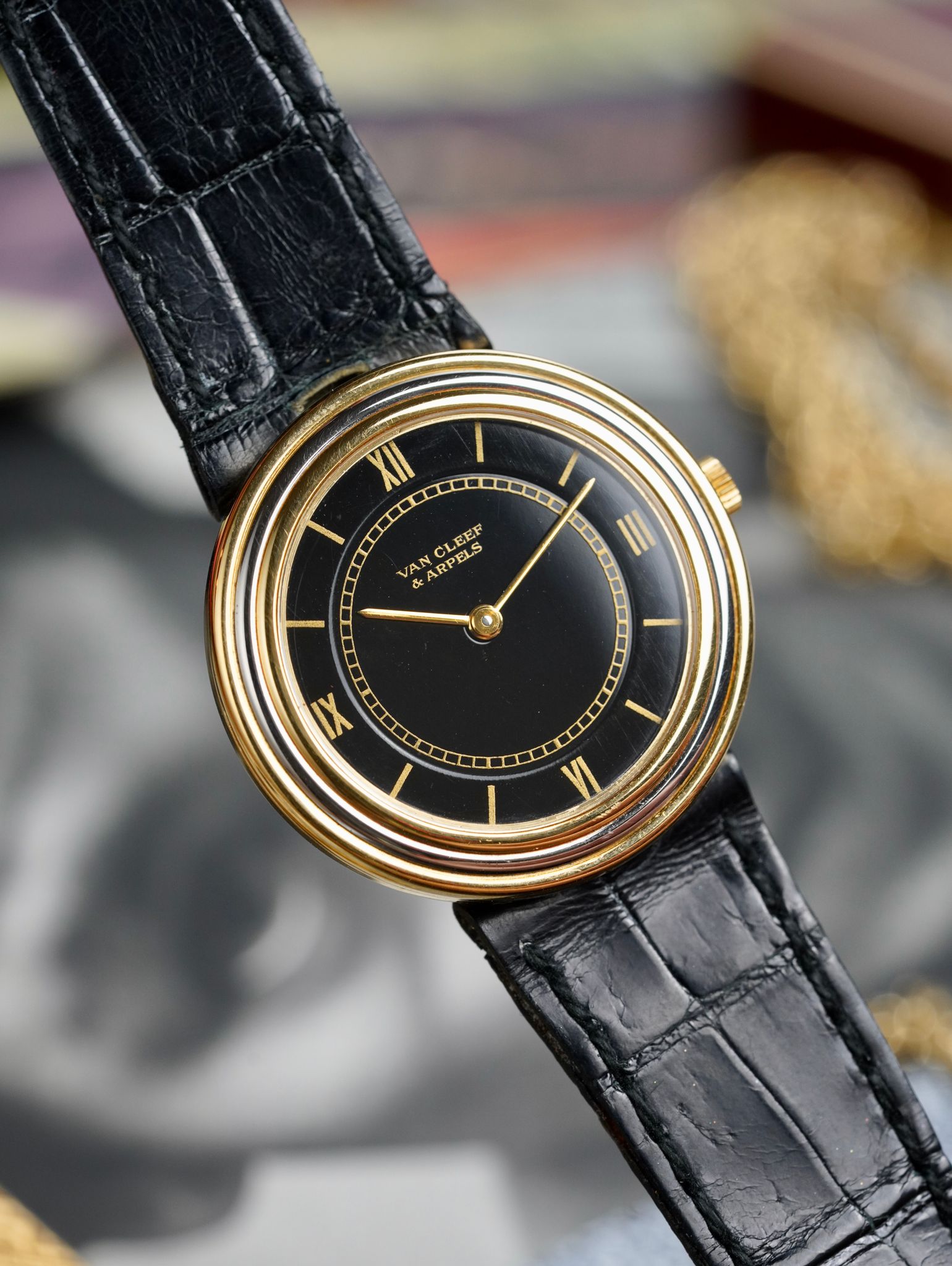 This chic dress watch from the house of Van Cleef & Arpels was designed in collaboration with Gerald Genta, who worked with the brand on some truly unique creations during this era. This 30mm dress watch says