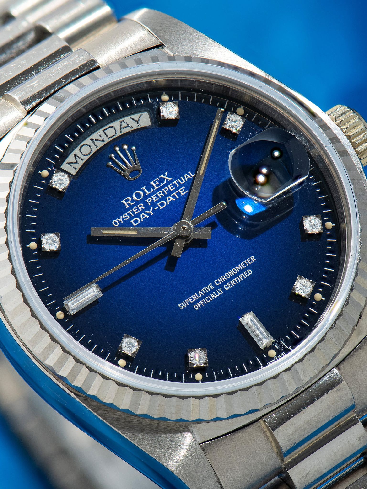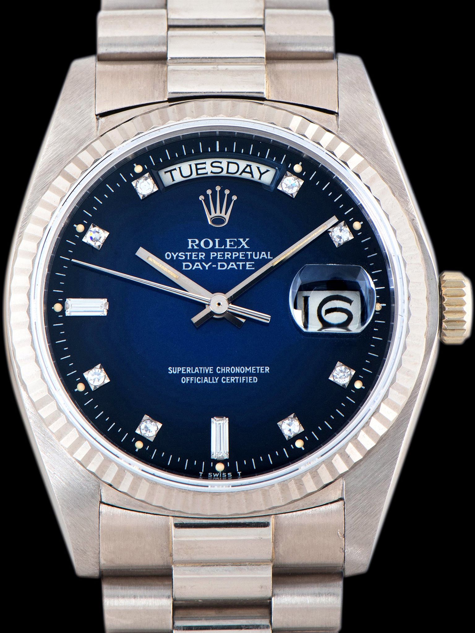 Rolex - 1981 Rolex Day-Date 18K WG (Ref. 18039) Blue Vignette Diamond Dial