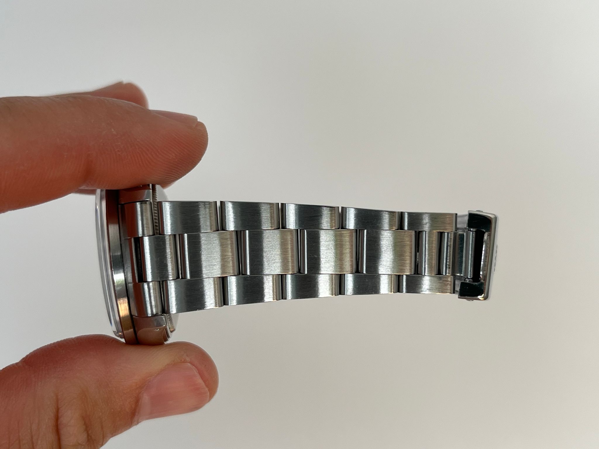 Today's example comes to us in excellent vintage condition. The case is razor sharp. The engine turn bezel is in excellent condition. The matt white roman dial is amazing with rich and full matching pumpkin patina throughout! Bracelet has 12 total links and shows no stretch.