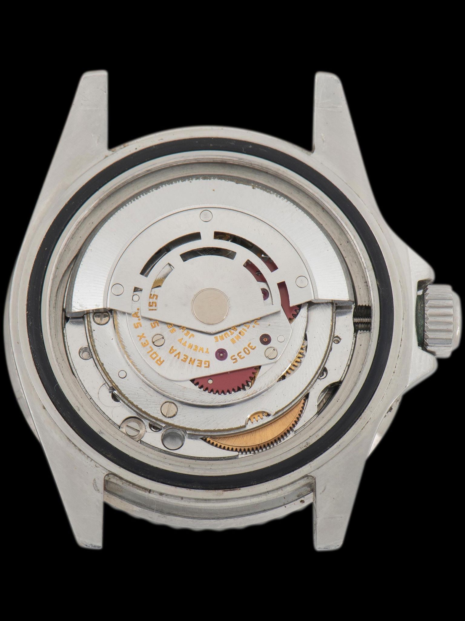 Introduced in late 1979, the ref. 16800 brought us a litany of improvements to the Submariner line. First of which is a sapphire crystal, which helped bring the depth rating from 660ft to an impressive 1000ft. The uni-directional click-spring bezel made its first appearance on the Submariner line as well, making the Submariner a more secure and safe timing apparatus for divers. Along with these external enhancements, the movement was drastically upgraded to the Cal. 3035, which featured a quickset function for the first time in the Submariner line.