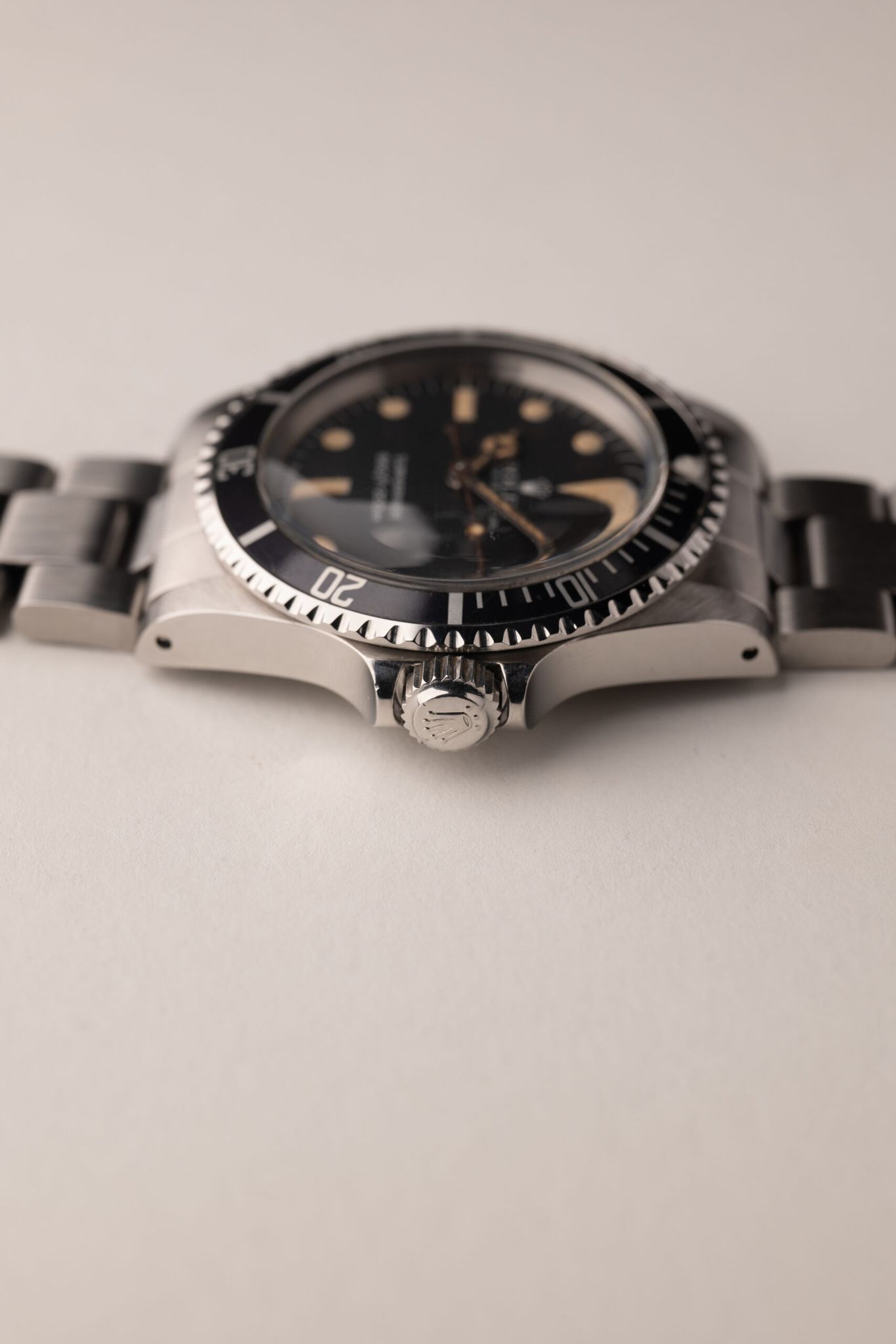 Black Maxi dials are the Matte Submariner grail. The maxi moniker refers to the largest lume plots made available prior to WGS dials, and this Maxi Mk. IV's tritium comes in a luscious honey gold. Matte dial Submariners retain a vintage feel, and these are some of our favorites.