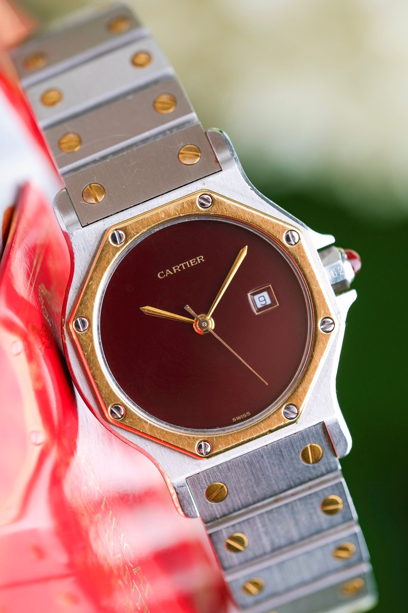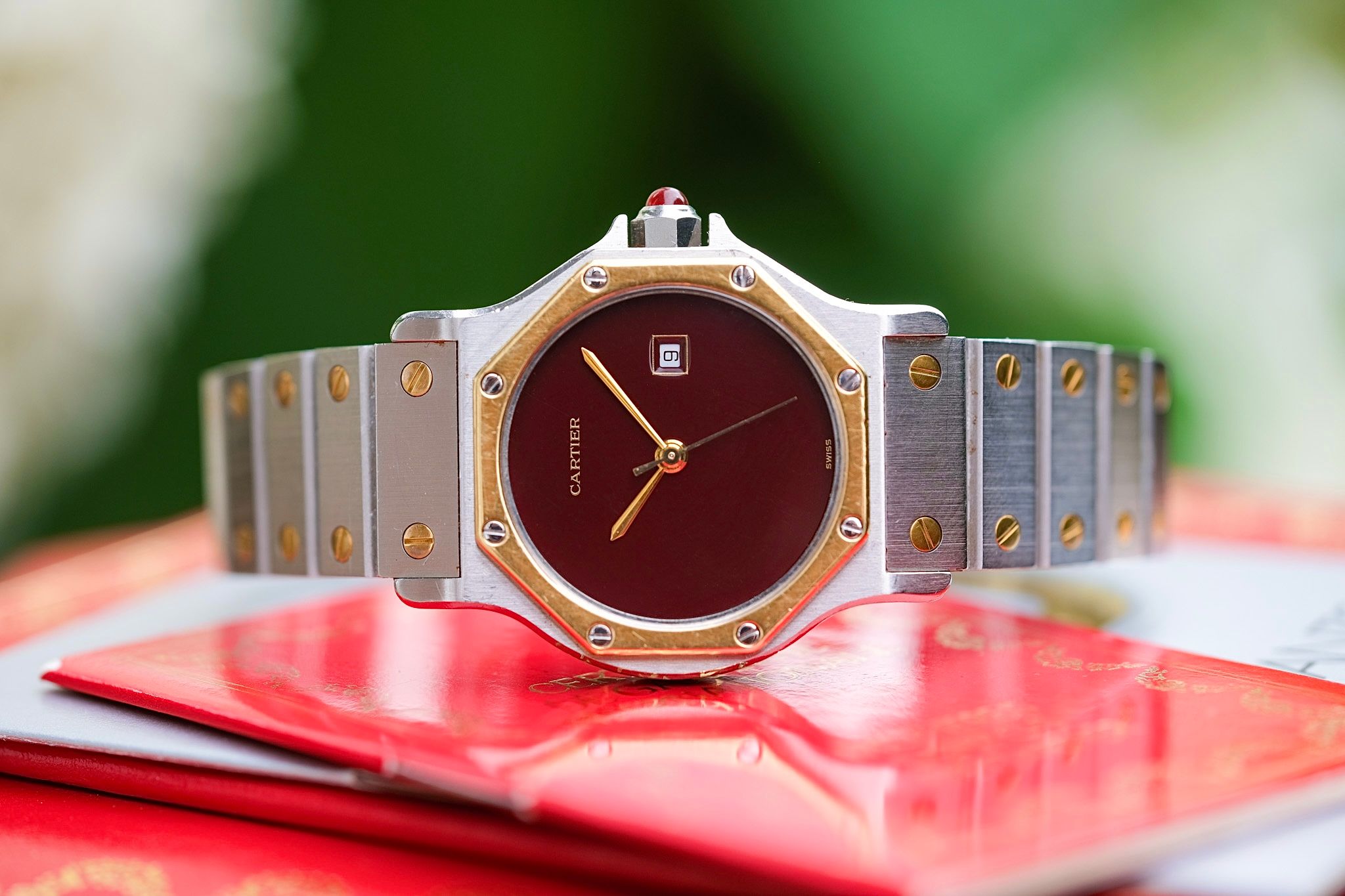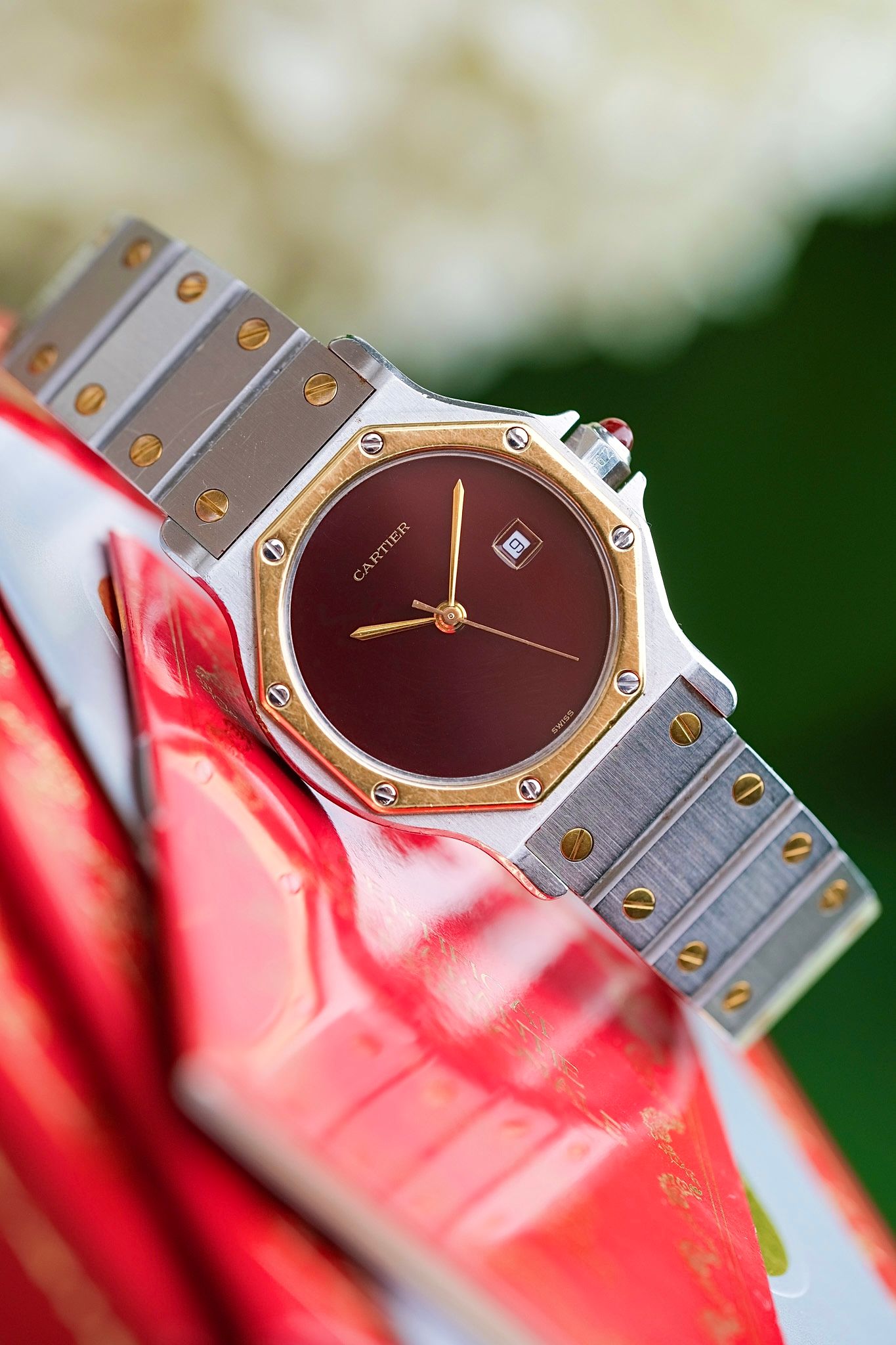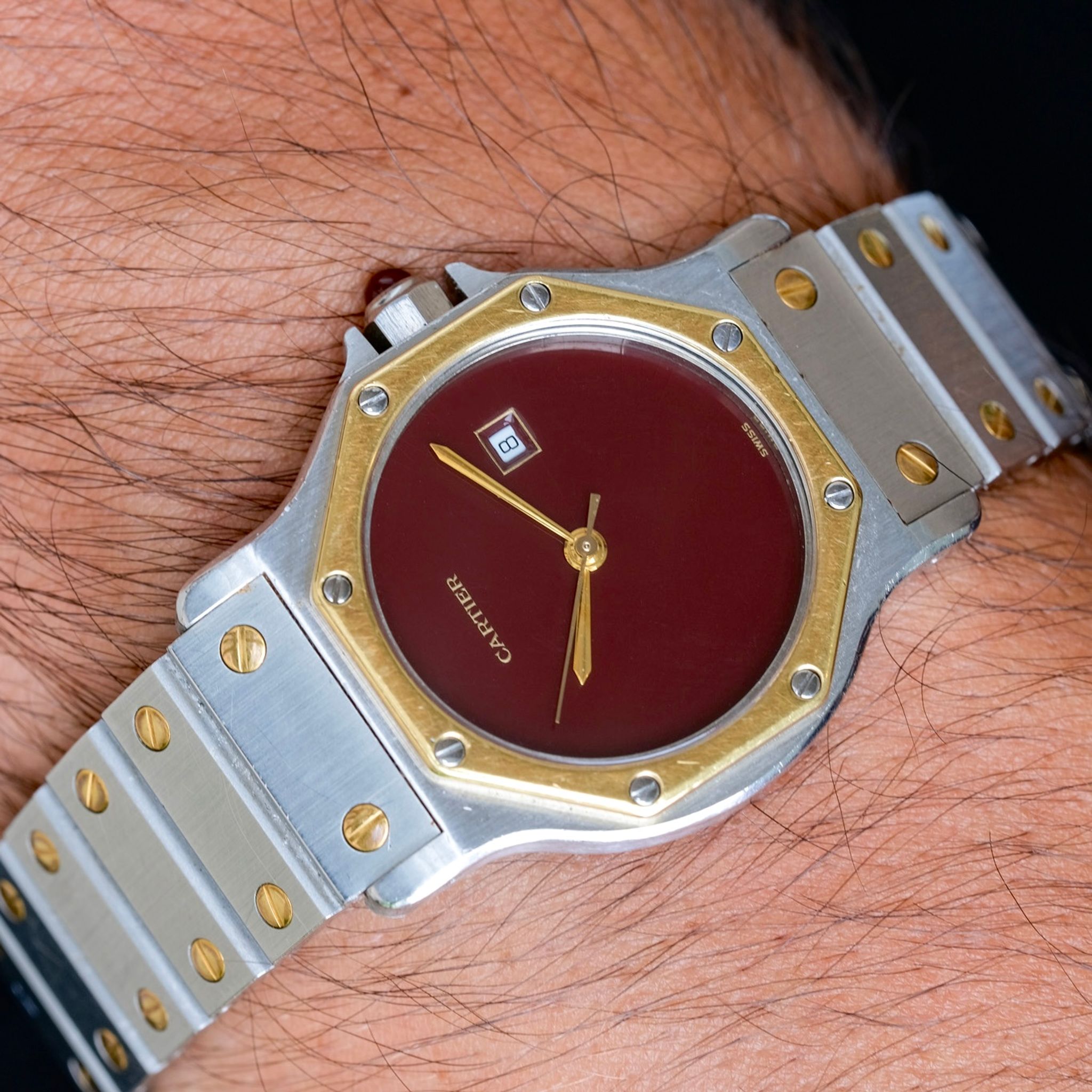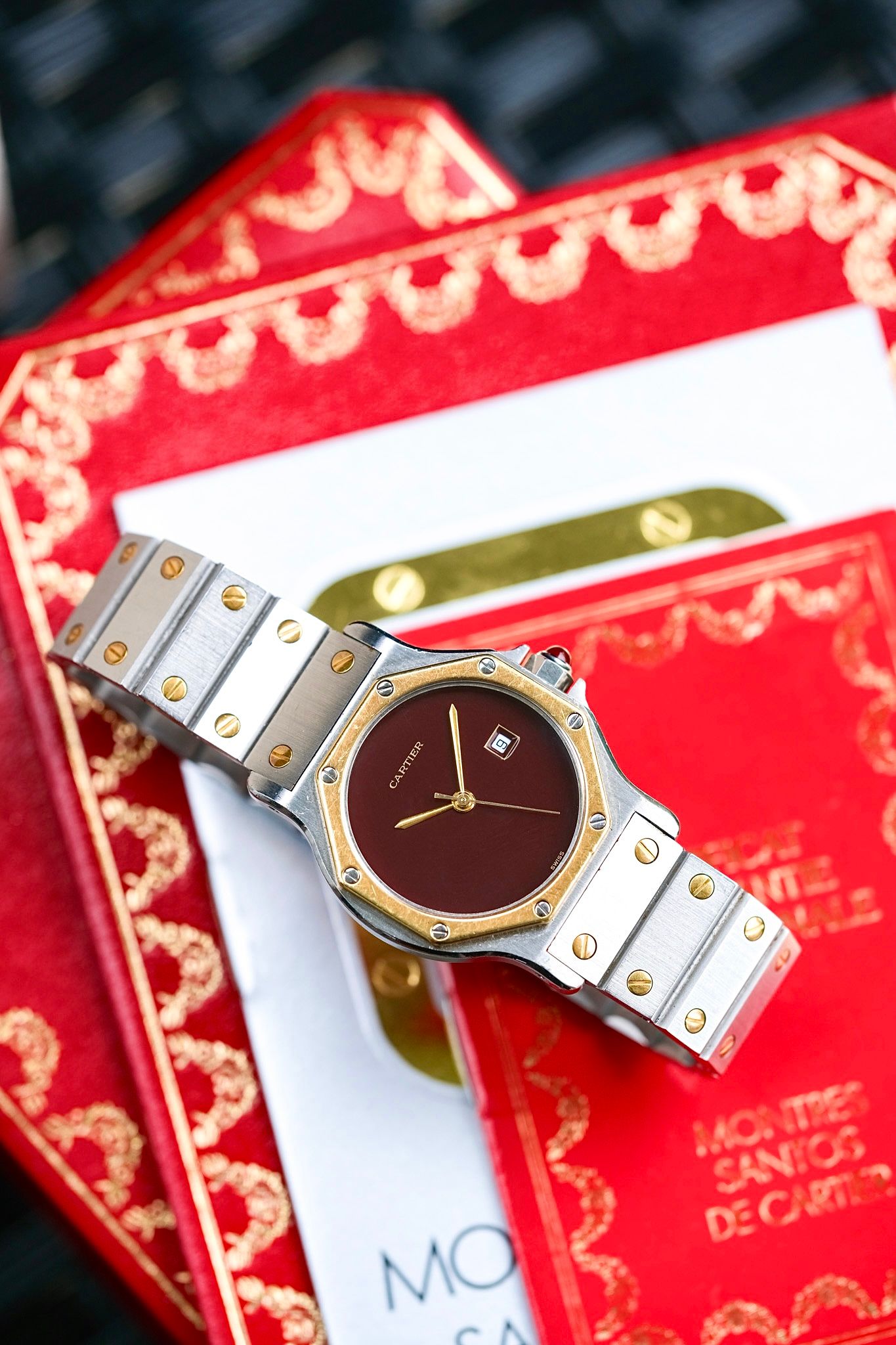 Cartier - 1984 Cartier Santos Octogonal Ref. 2966 with rare Burgundy dial in Full set