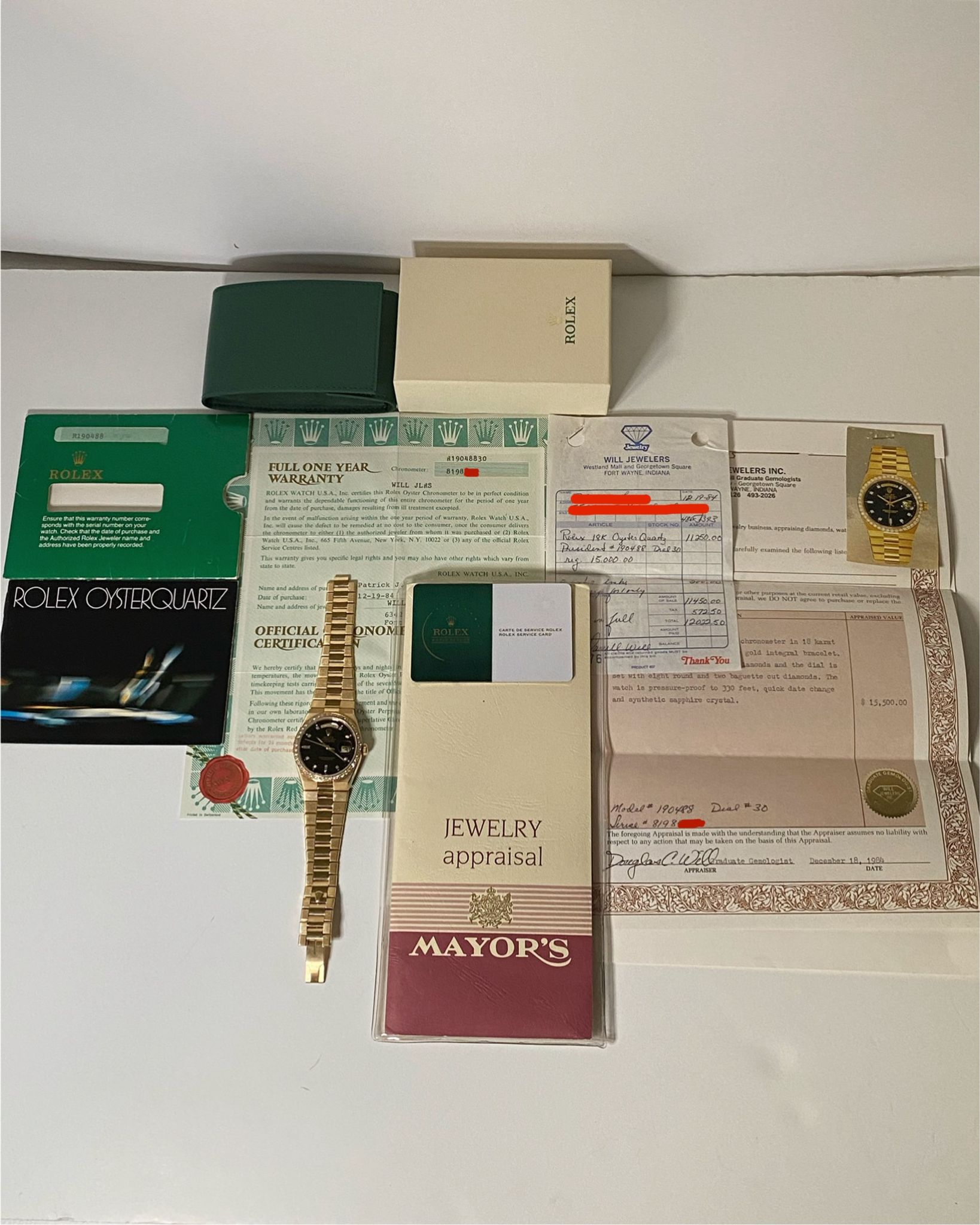 Rolex - 1984 Rolex 19048 Day-Date Oysterquartz Factory Diamond Paper RSC Service
