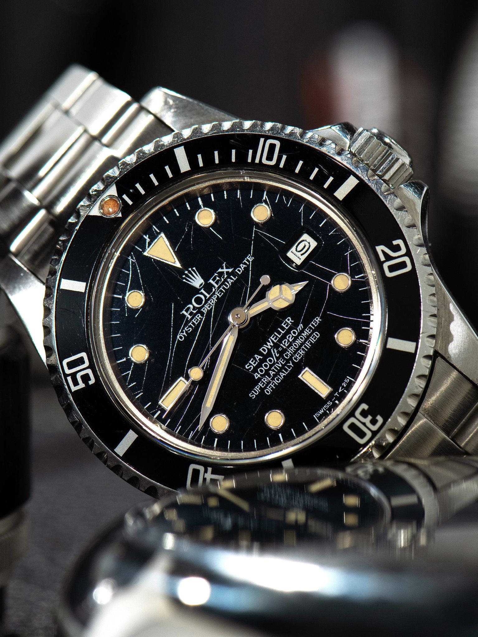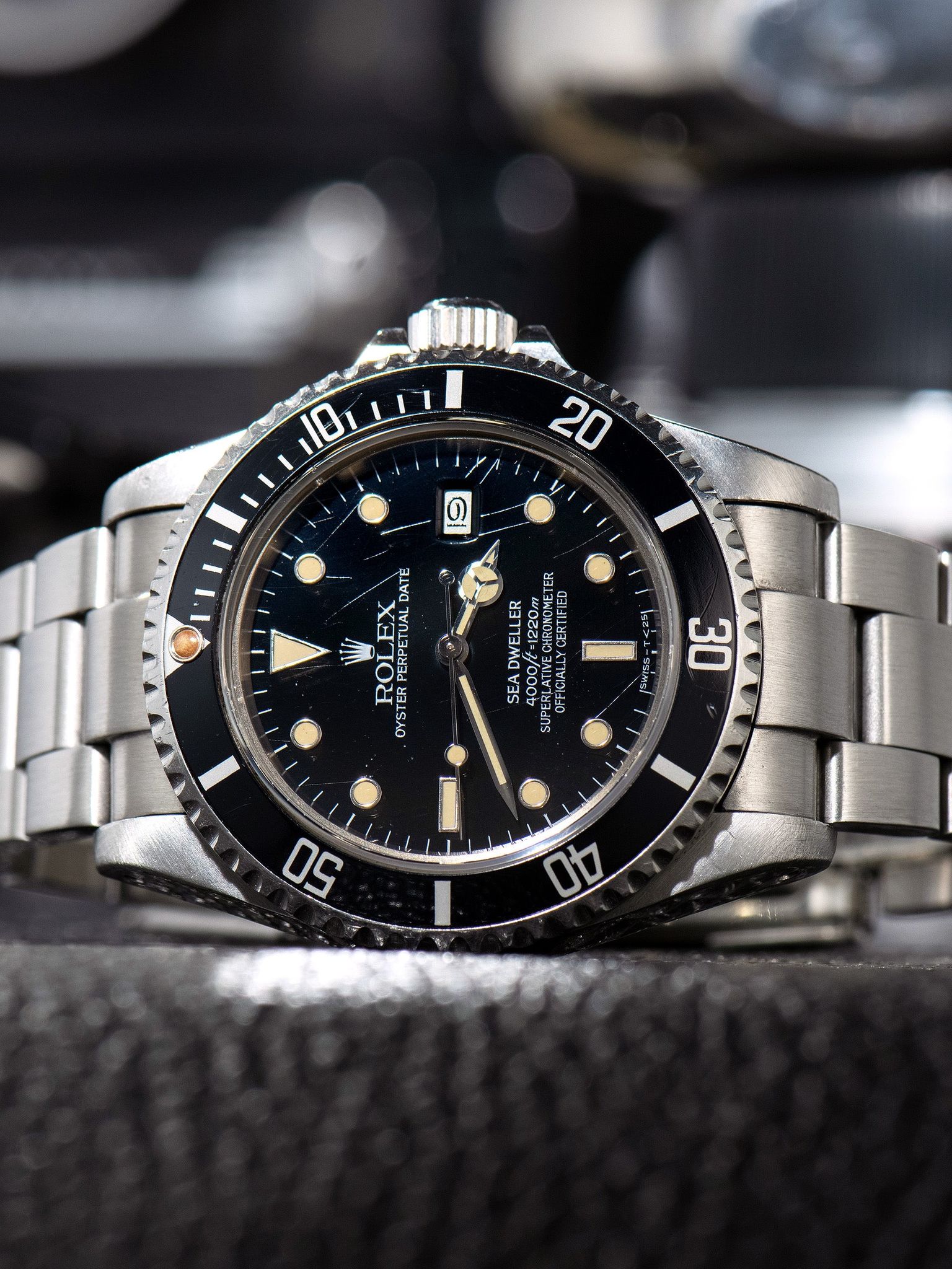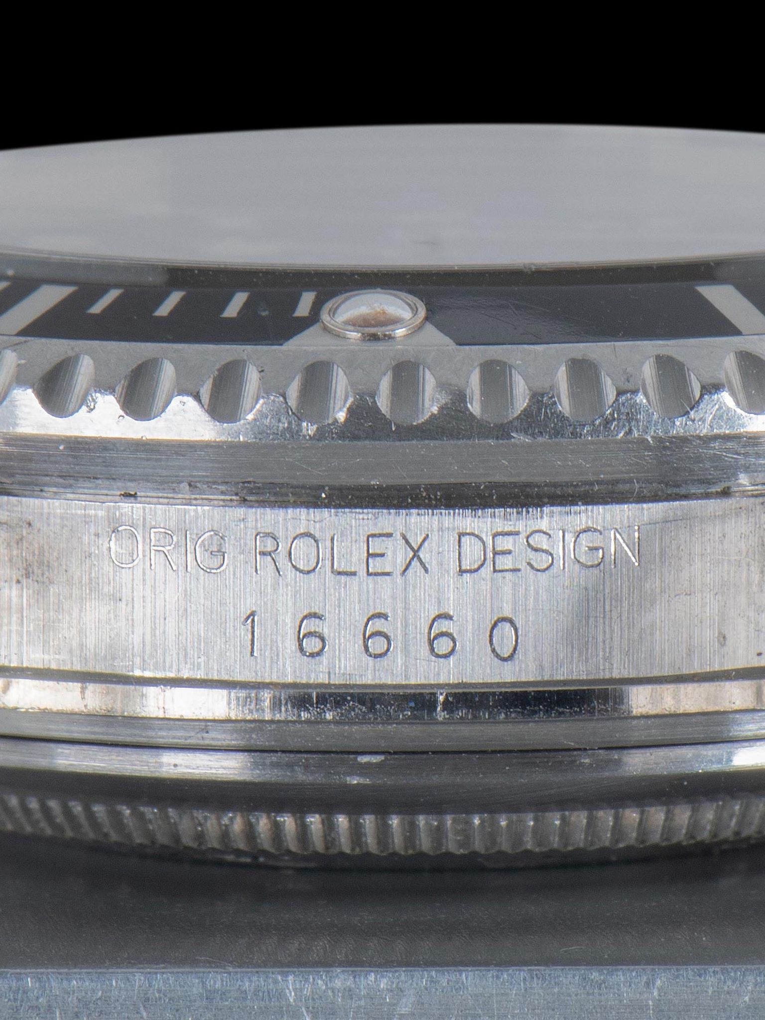 Similar to the other Rolex sport models that were released in the early 80s, the Sea-Dweller "Triple Six" is a very transitional model that we split into two categories depending on the time of production and the dial variation utilized. Early ref. 16660 models from 1981 to 1984 will feature a matte black dial similar to Rolex sport models of the 70s; however, in late 1984, Rolex updated the dial design to a glossy black finish with white gold surround markers, which is still in use today.