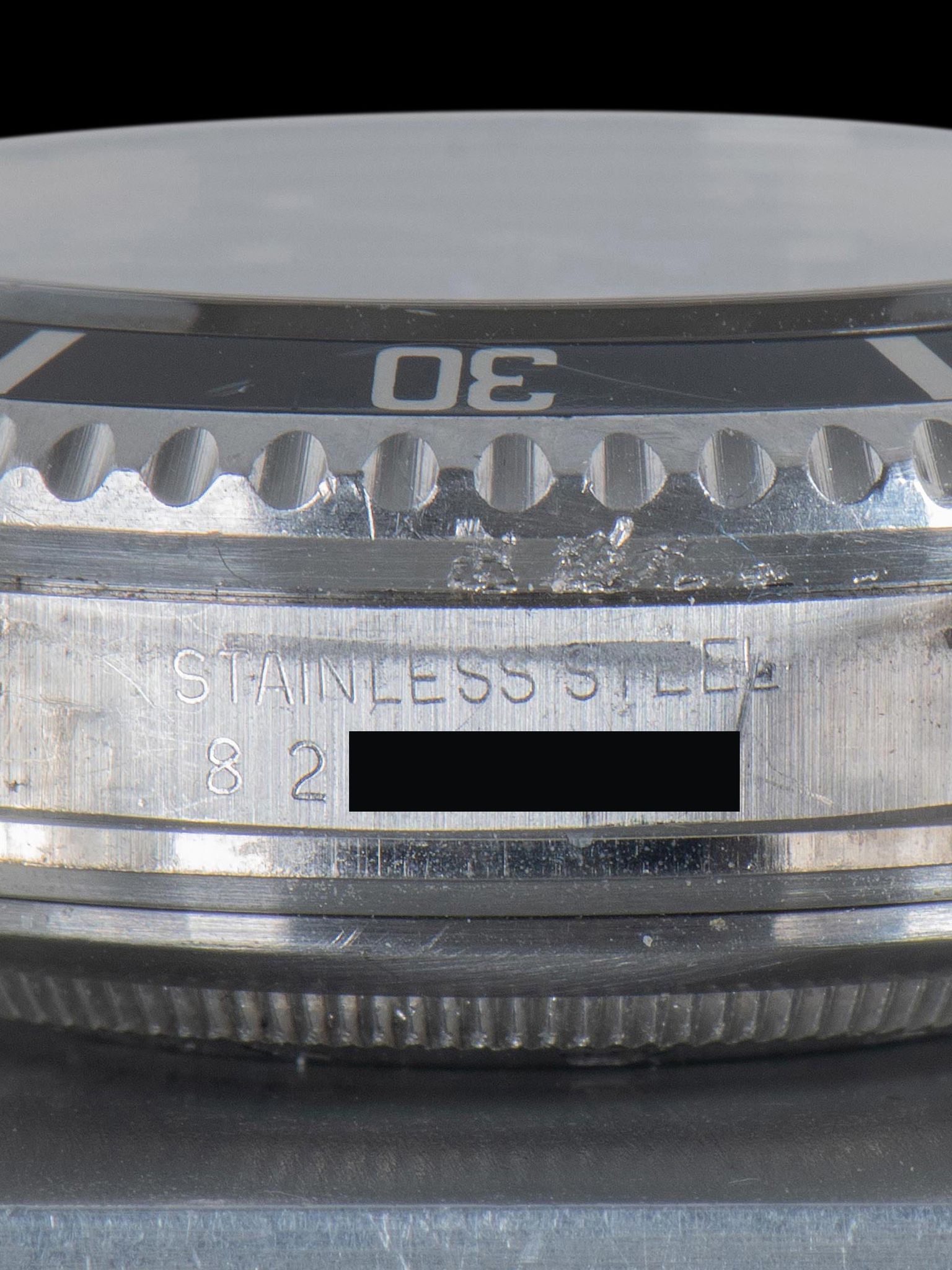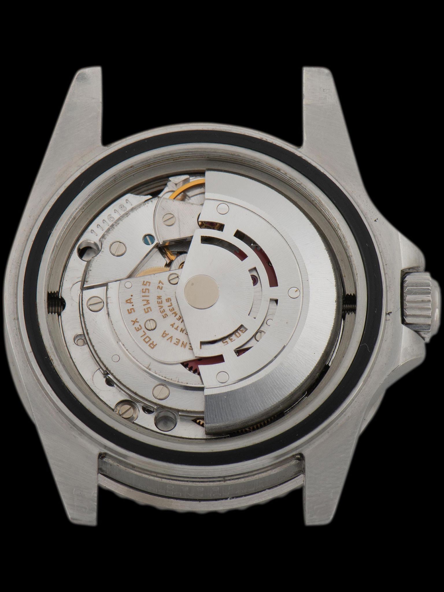 The excellent case retains full and symmetrical lugs that retain slight chamfers, exhibit minimal evidence of being previously polished, and show honest signs of use. The original bezel insert is in exceptional condition, showing nominal elements of previous wear, and retains its tritium pearl, which features a deep caramel patina. The case back shows gentle wear and retains the factory engravings in deep and crisp condition. The original Rolex 93160 Oyster bracelet with solid 592 end pieces retains 11 links along with the integrated diver's extension and will fit up to a 7 1/2 inch wrist, with light stretch present.