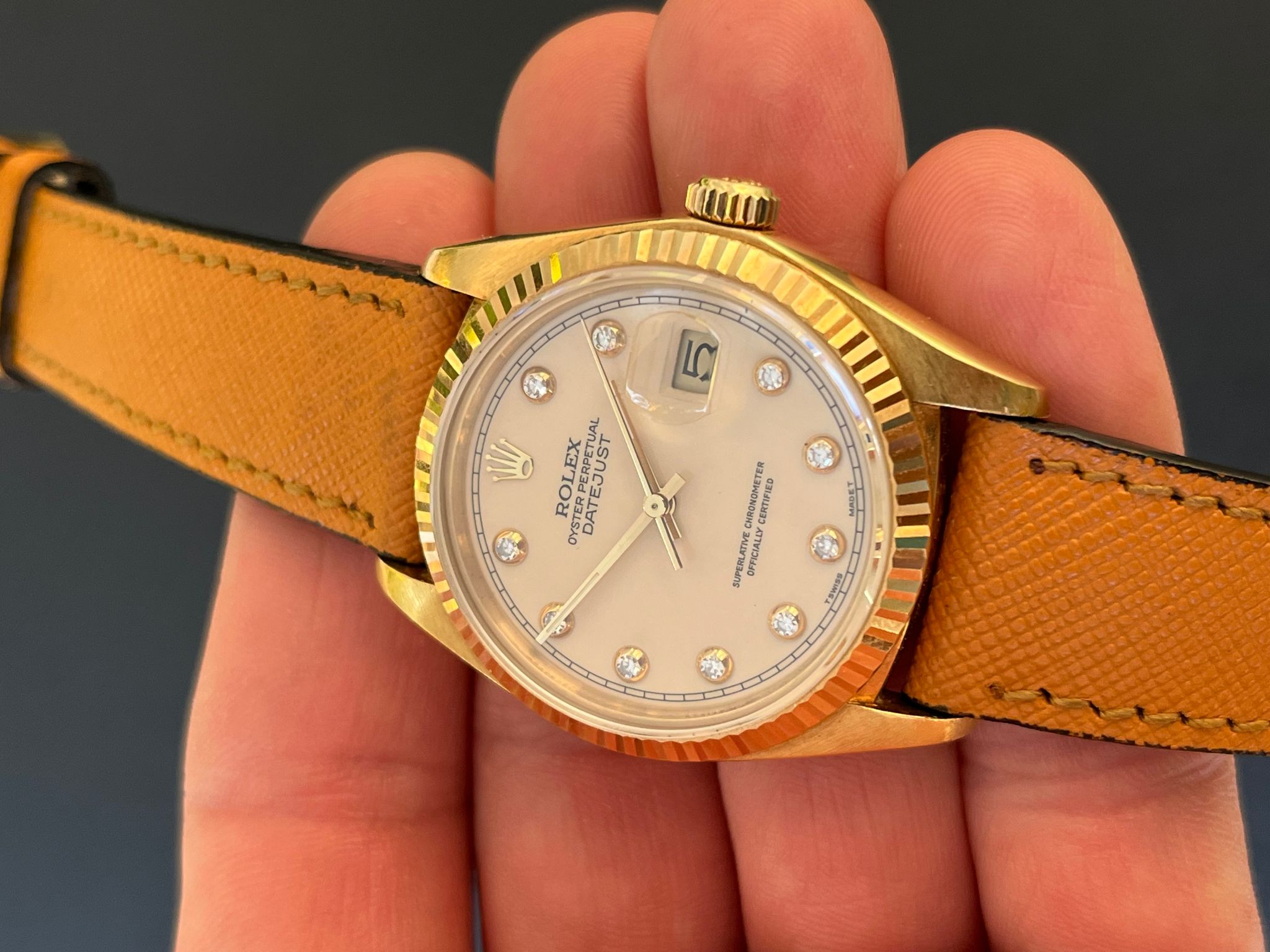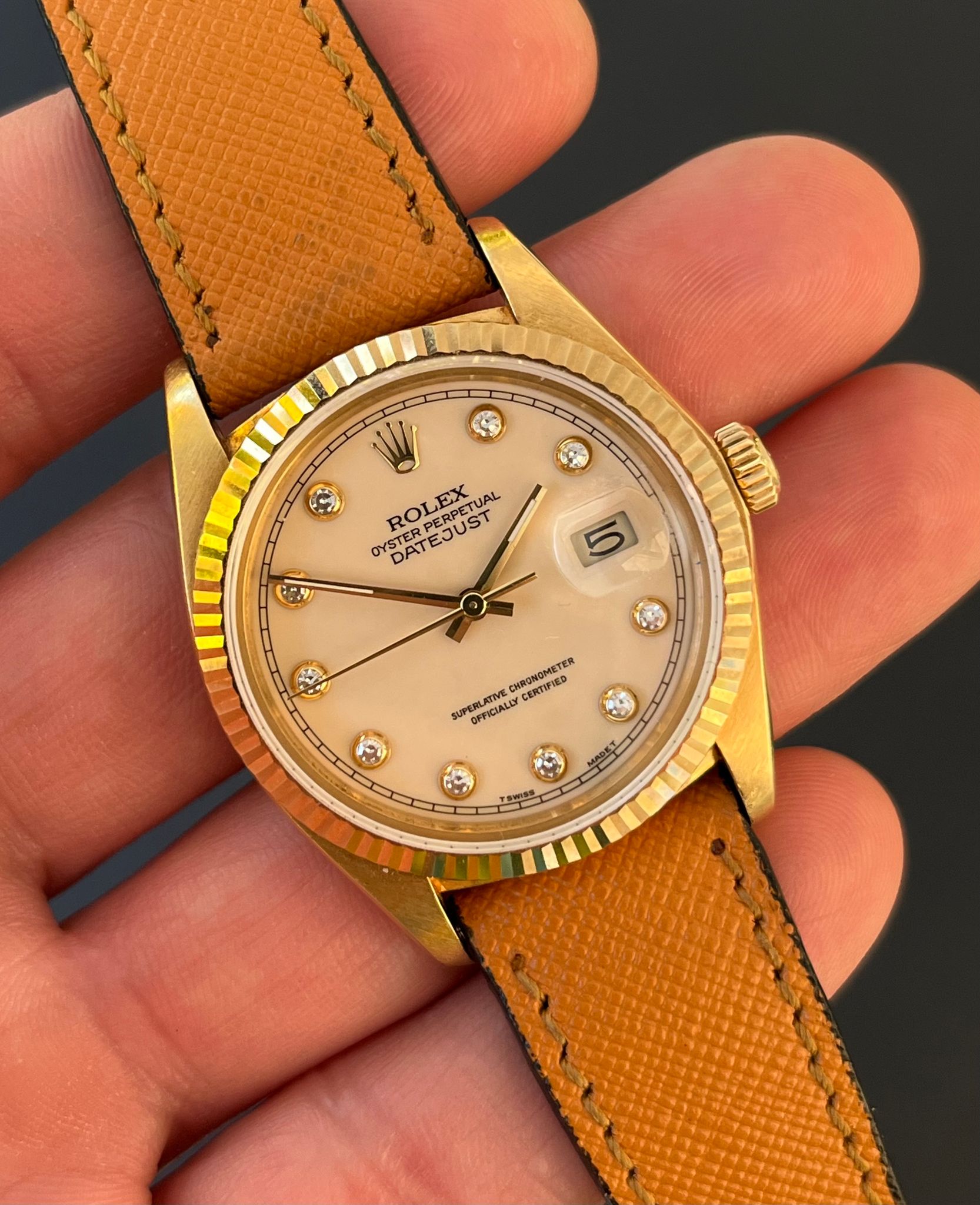 Rolex - 1984 Vintage Rolex 18K Date Just Ref. 16018 Pin Ball Diamond Dial