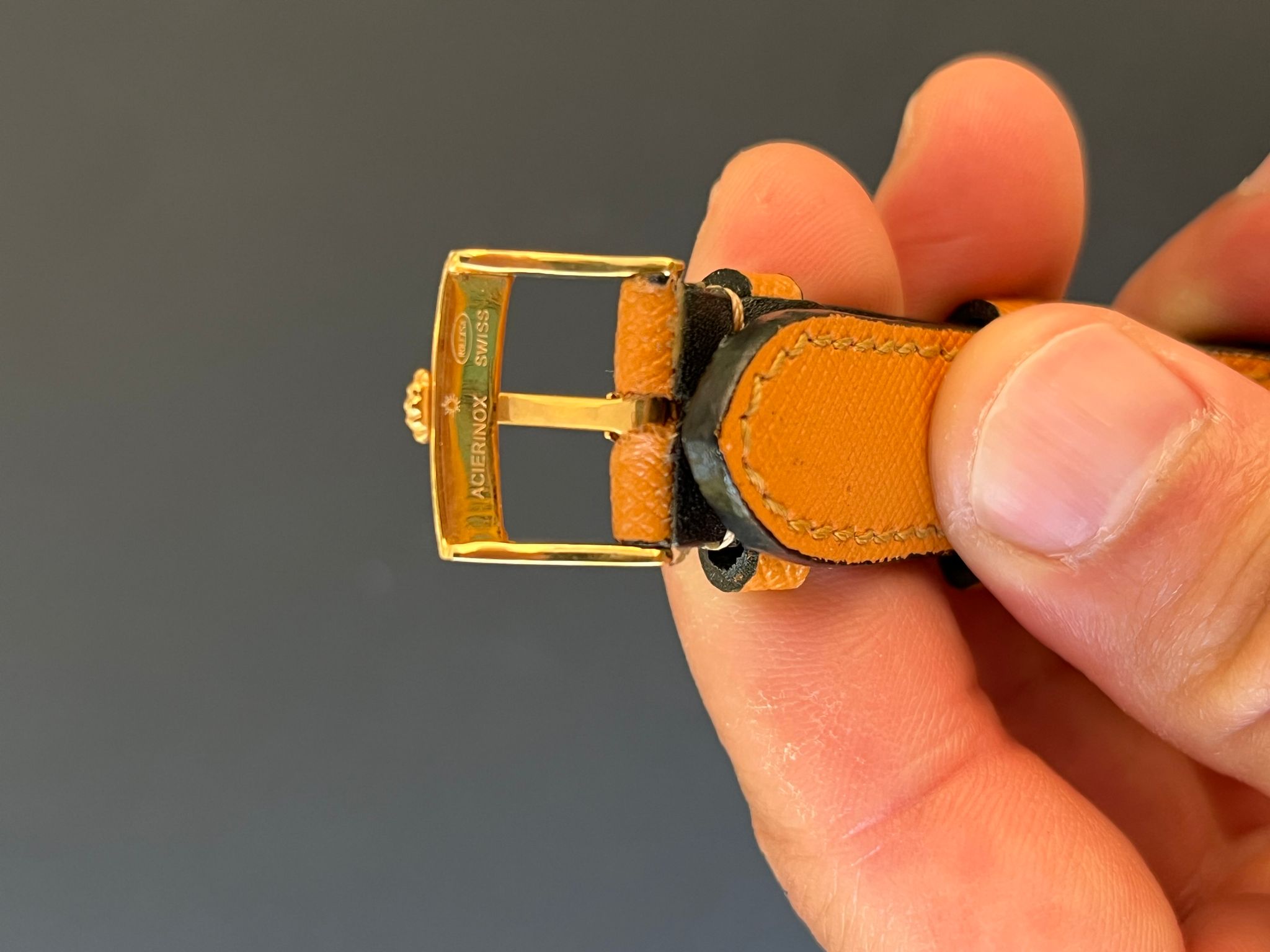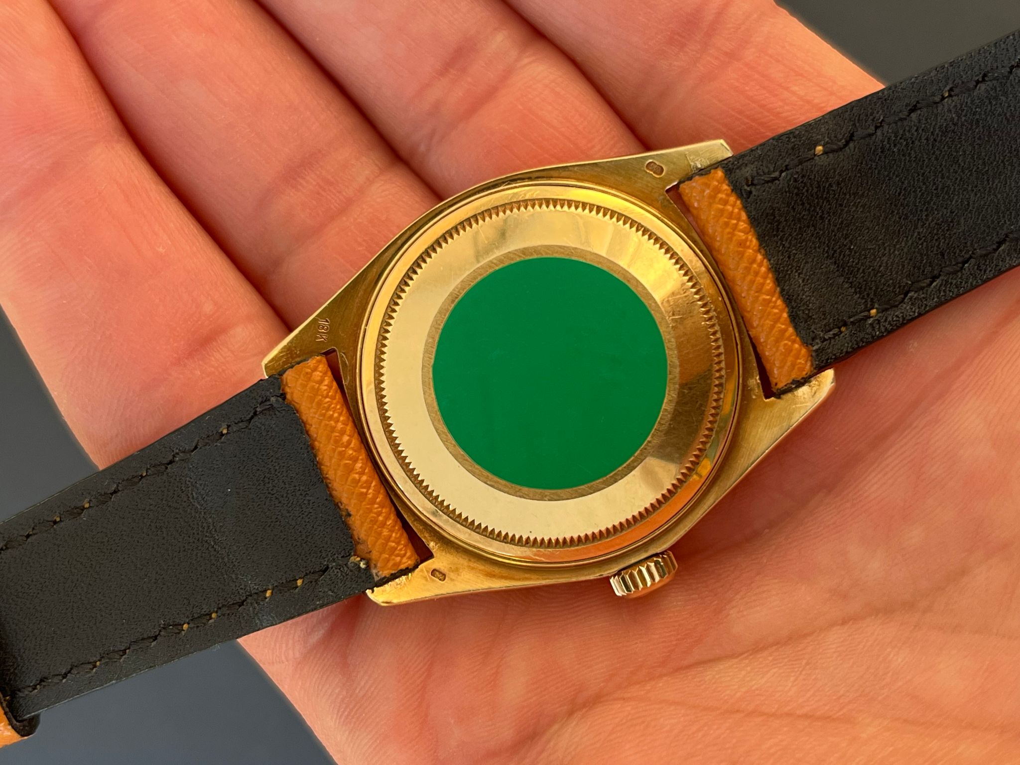 This example is in excellent condition with an unpolished case with thick lugs and full case back sticker. The factory Pin Ball diamond dial is excellent showing no wear. The case shows excellent patina throughout. This example comes head only with its original Rolex buckle and is running COSC and has an excellent aesthetic appearance.