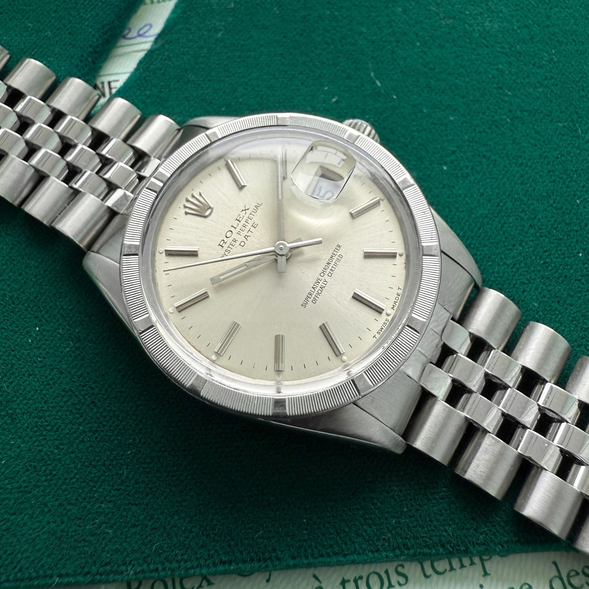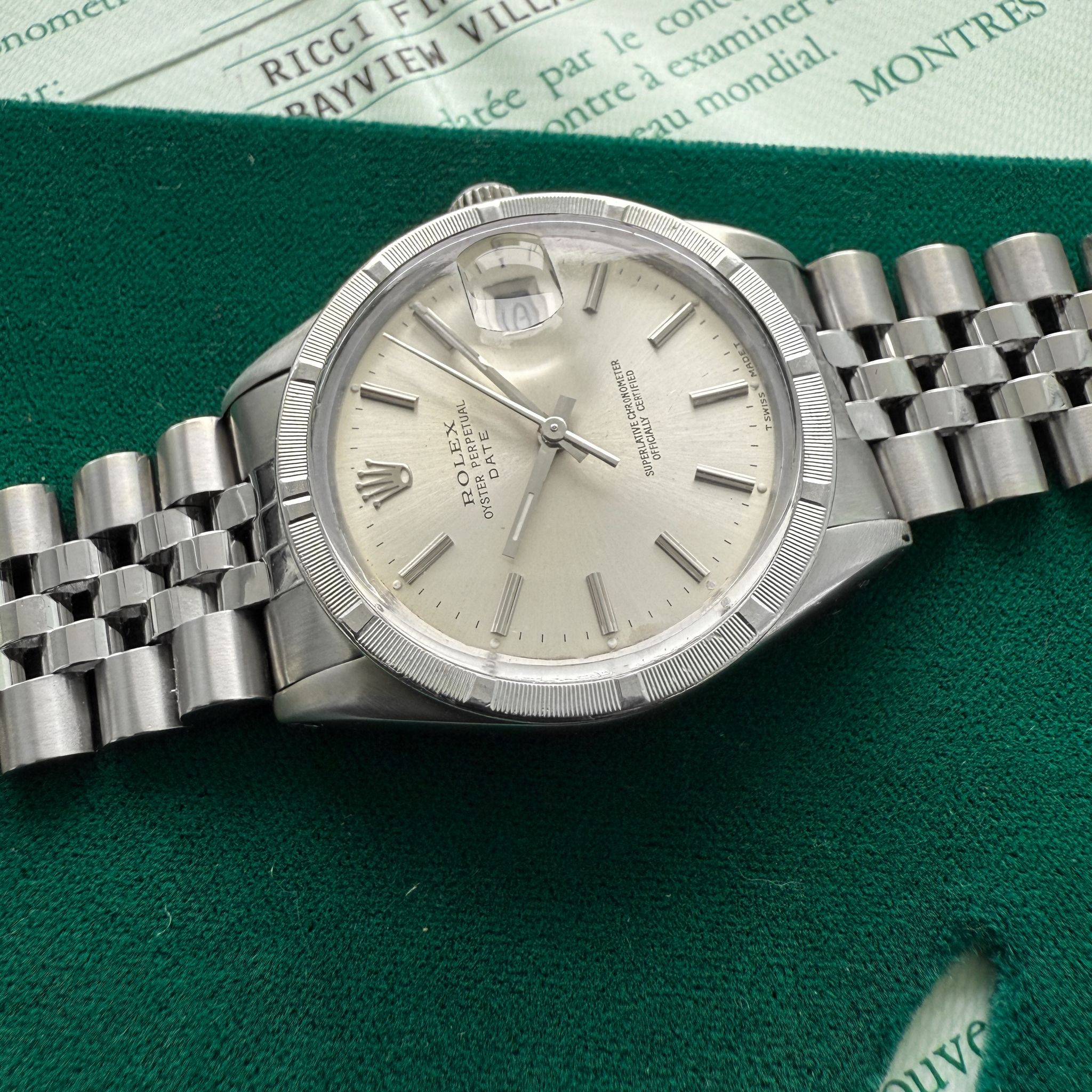 Rolex - 1985 Rolex Date Engine Turned Bezel - Jubilee 15010 – Box and Papers