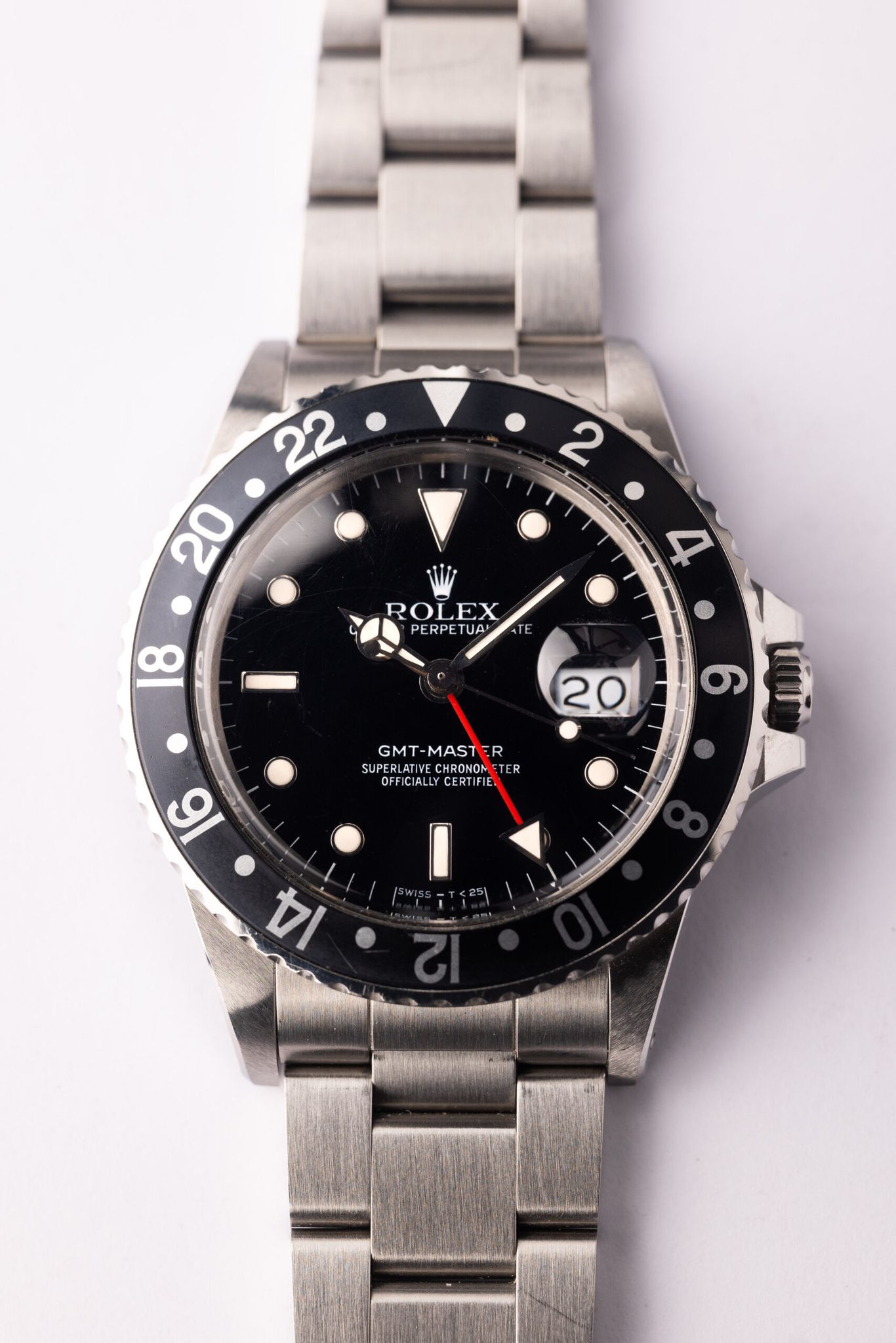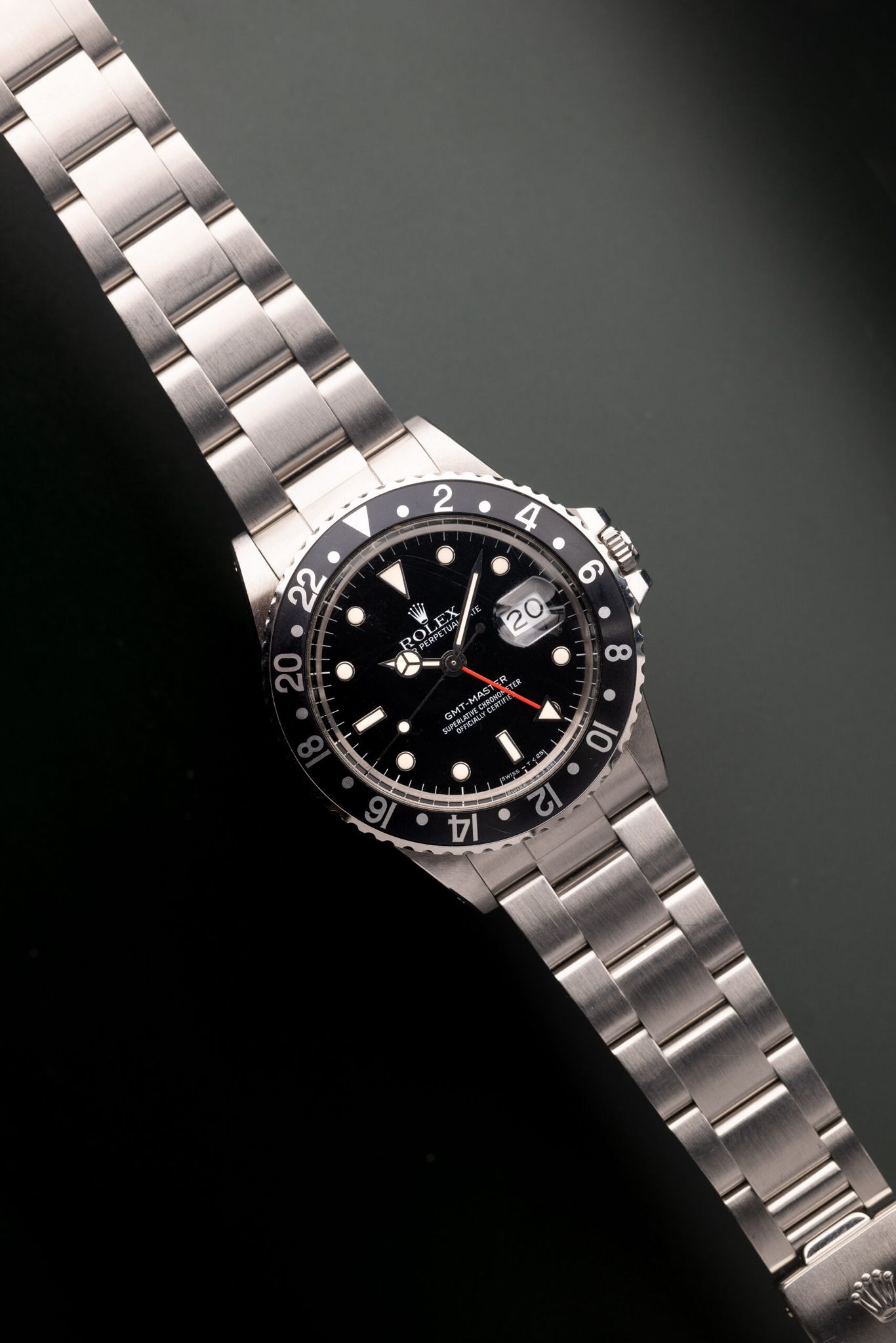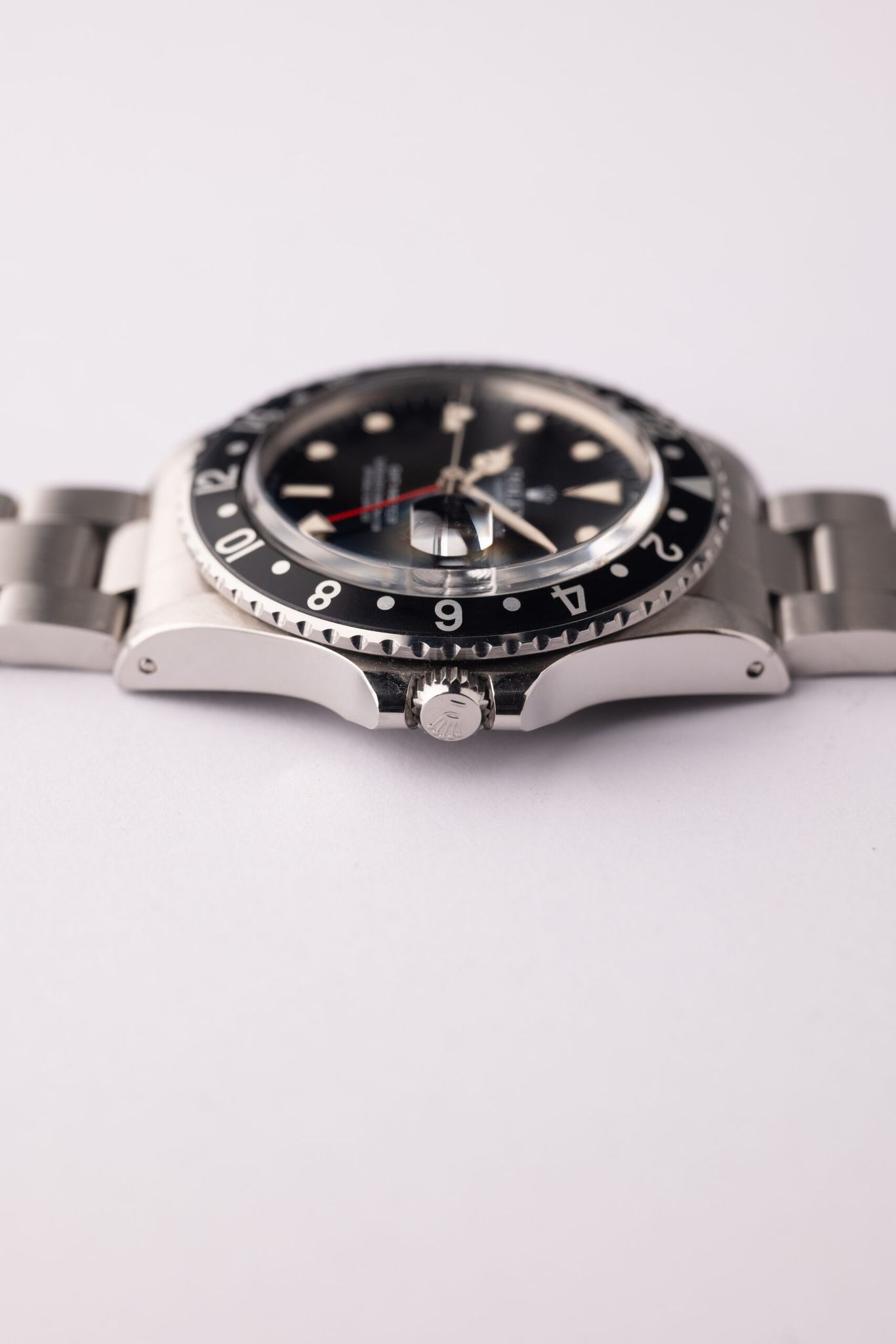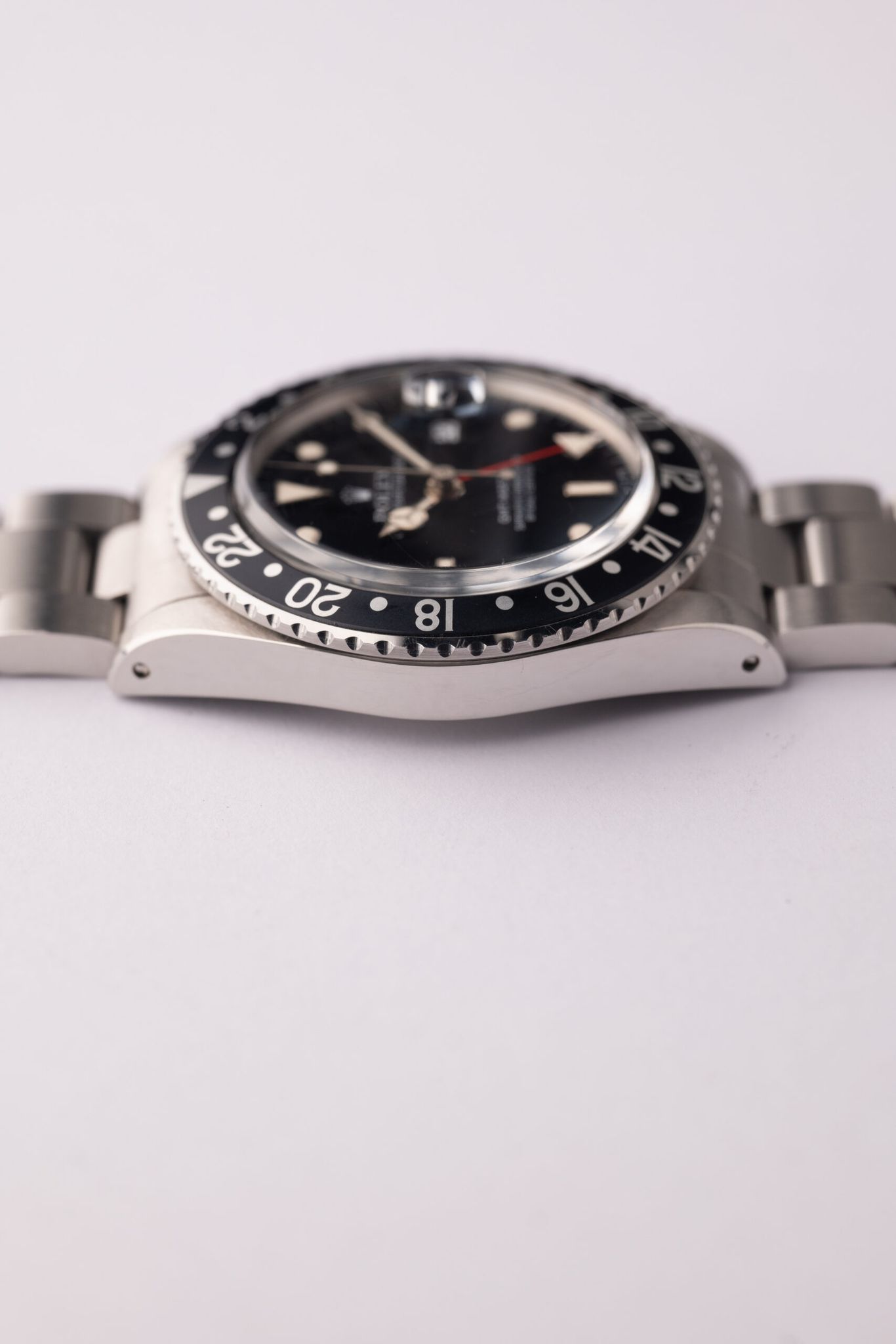 This specific Black GMT appears like new old stock. The case and bevels looks amazing as well as where the serial and references are engraved show no wear from the bracelet.