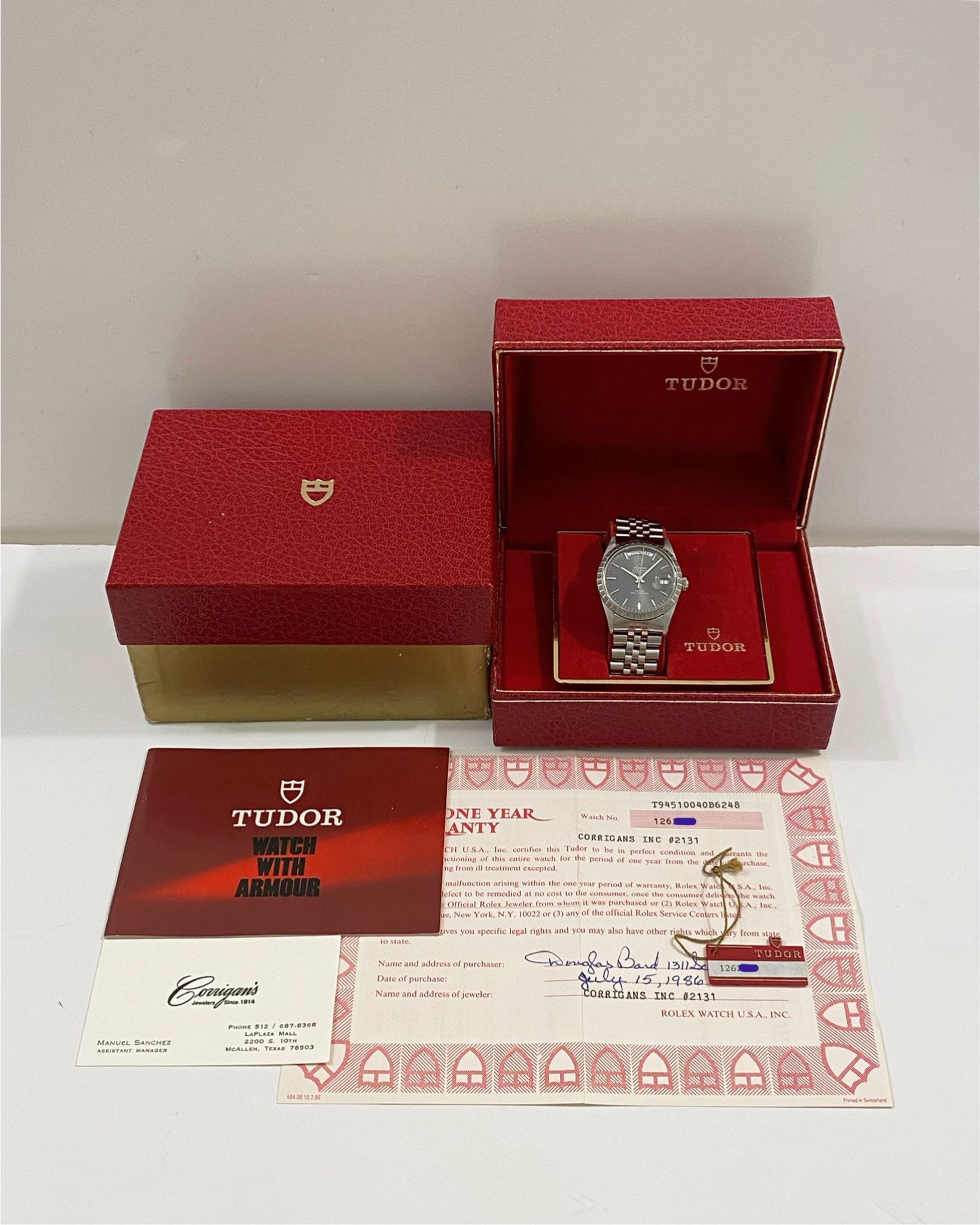 Tudor - 1986 Tudor 94510 Oyster Prince Date Day Grey Dial Patina Box and Papers