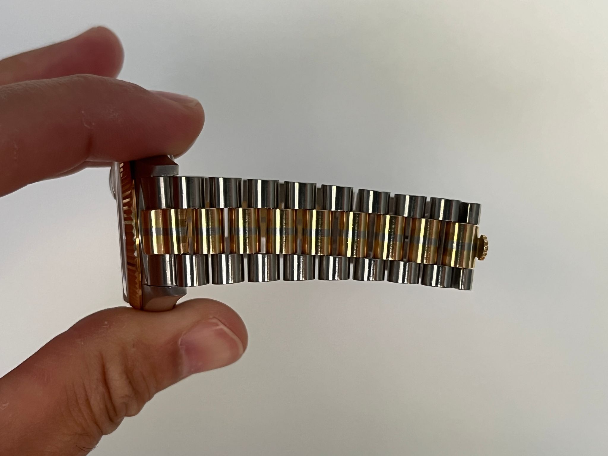This particular example is in excellent condition and features a minty factory anniversary dial with factory diamond setting which is keeping great time. The unpolished case lugs are thick and rich. The bracelet has 5 total removable screws and is tight showing no stretch. Indulge in timeless elegance with this 18039, where vintage charm meets modern luxury, creating a watch that's truly a work of art.