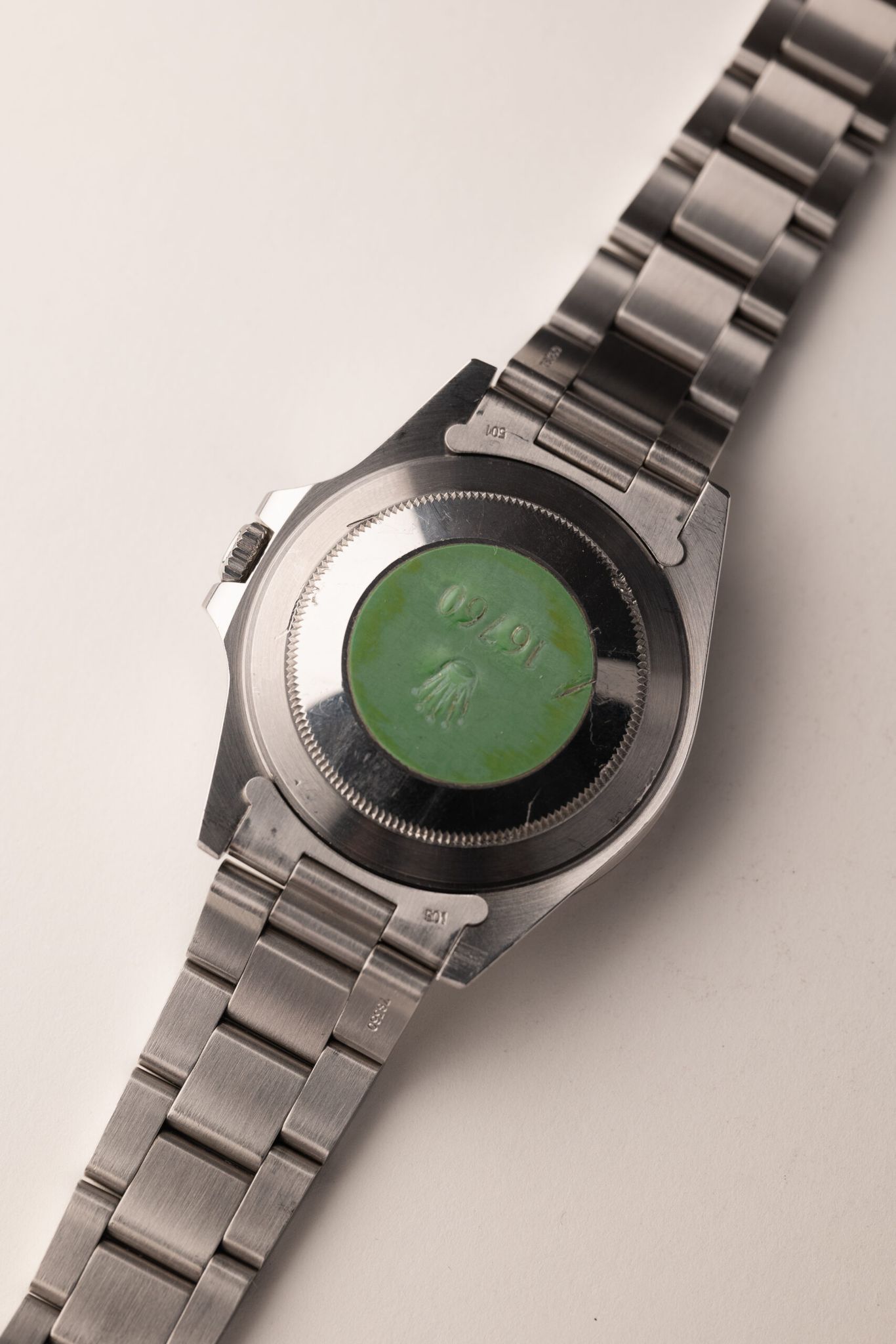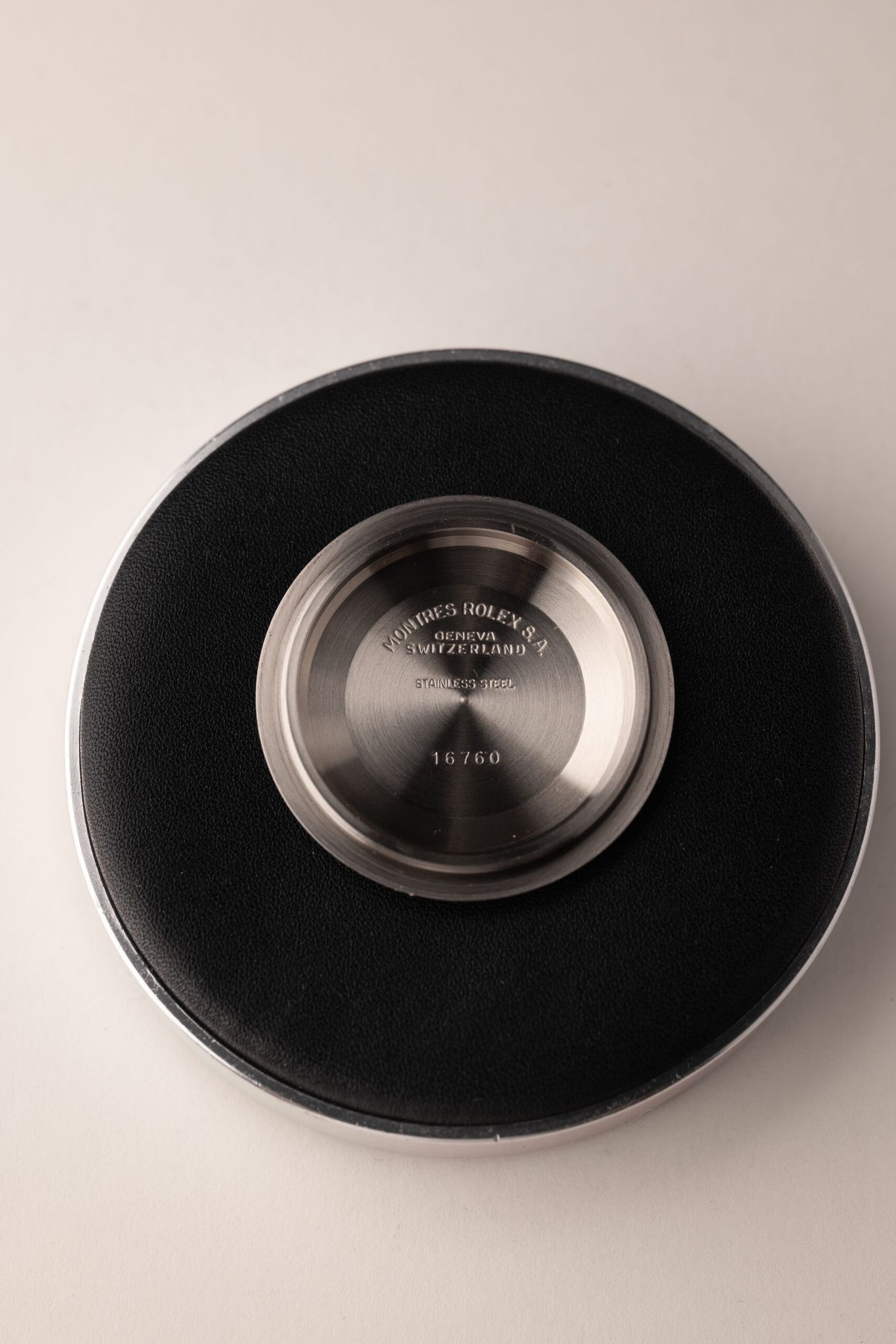 “Fat Lady” 16760 GMT-Masters are rarer, once overlooked, named for its increased case height and size around the lugs, crown guards. Produced only as a “Coke” variant, the case dimensions give the watch a completely different feel and could not easily be confused with its “Pepsi” counterparts. Case comes excellent through previously polished, faded bezel and dial have begun to fade with light warm tropication. Hands have been stabilized to the back preventing further deterioration.