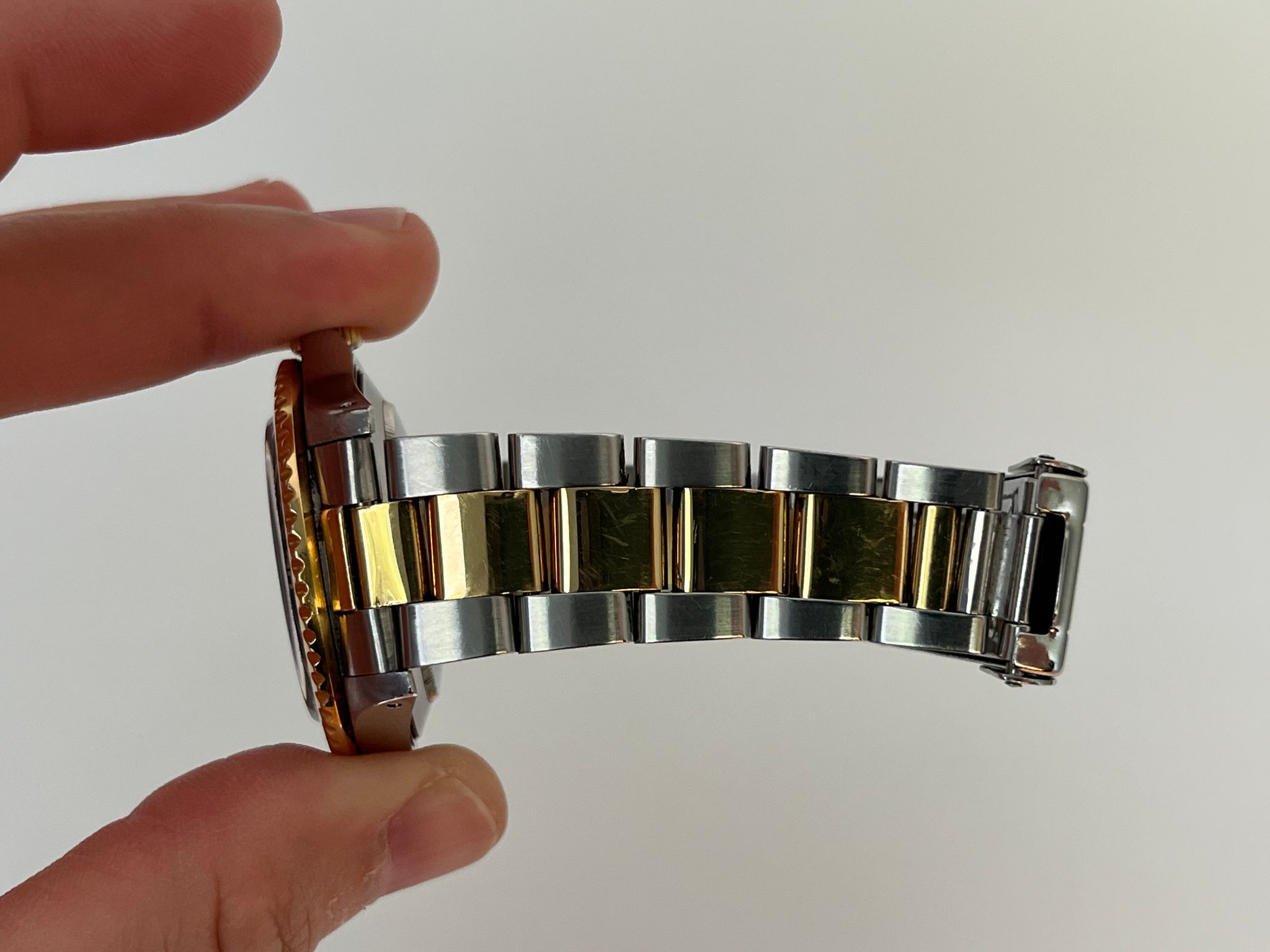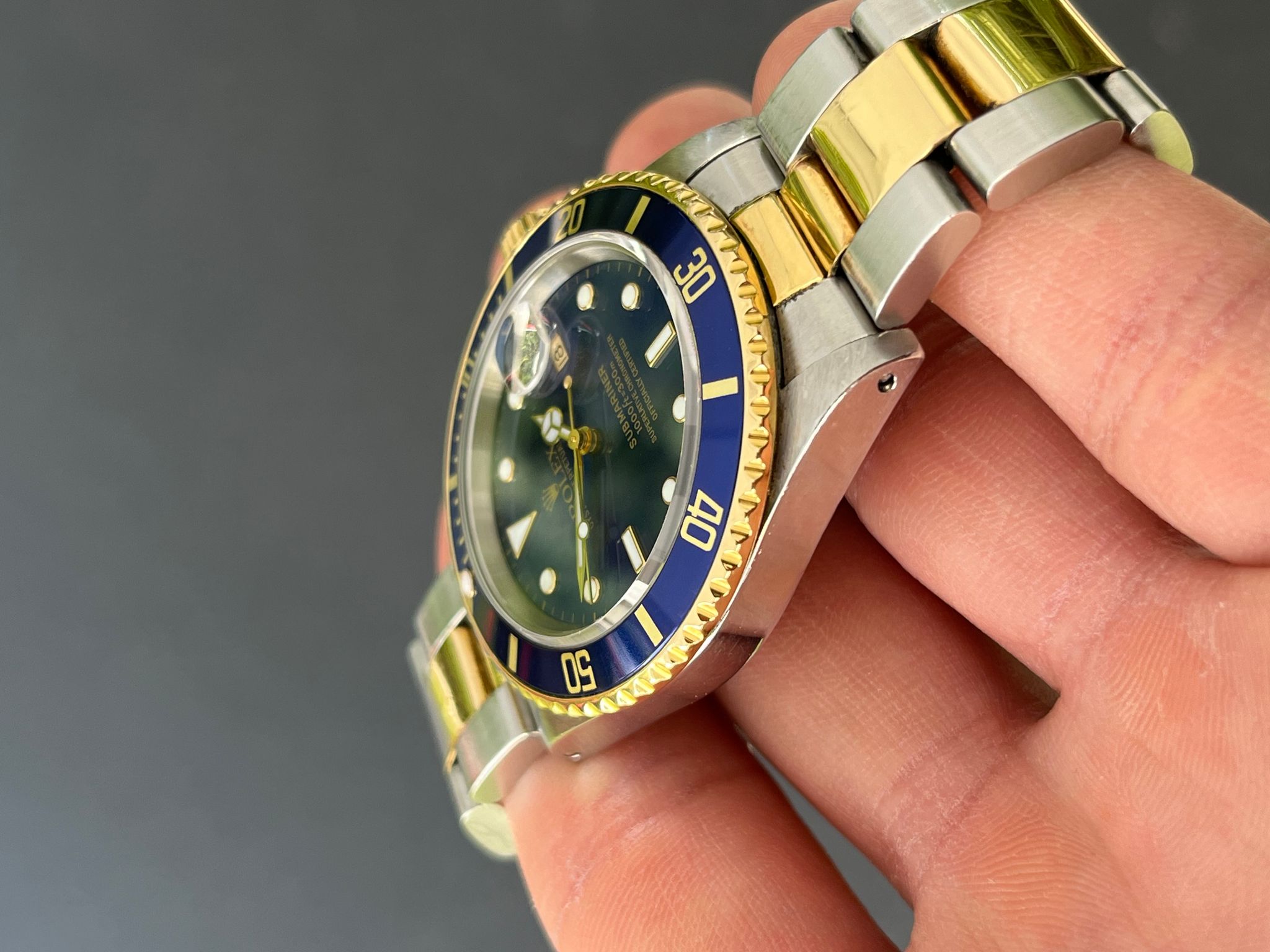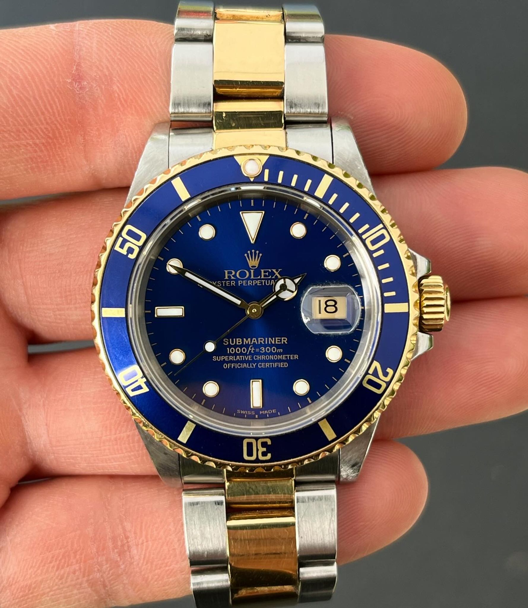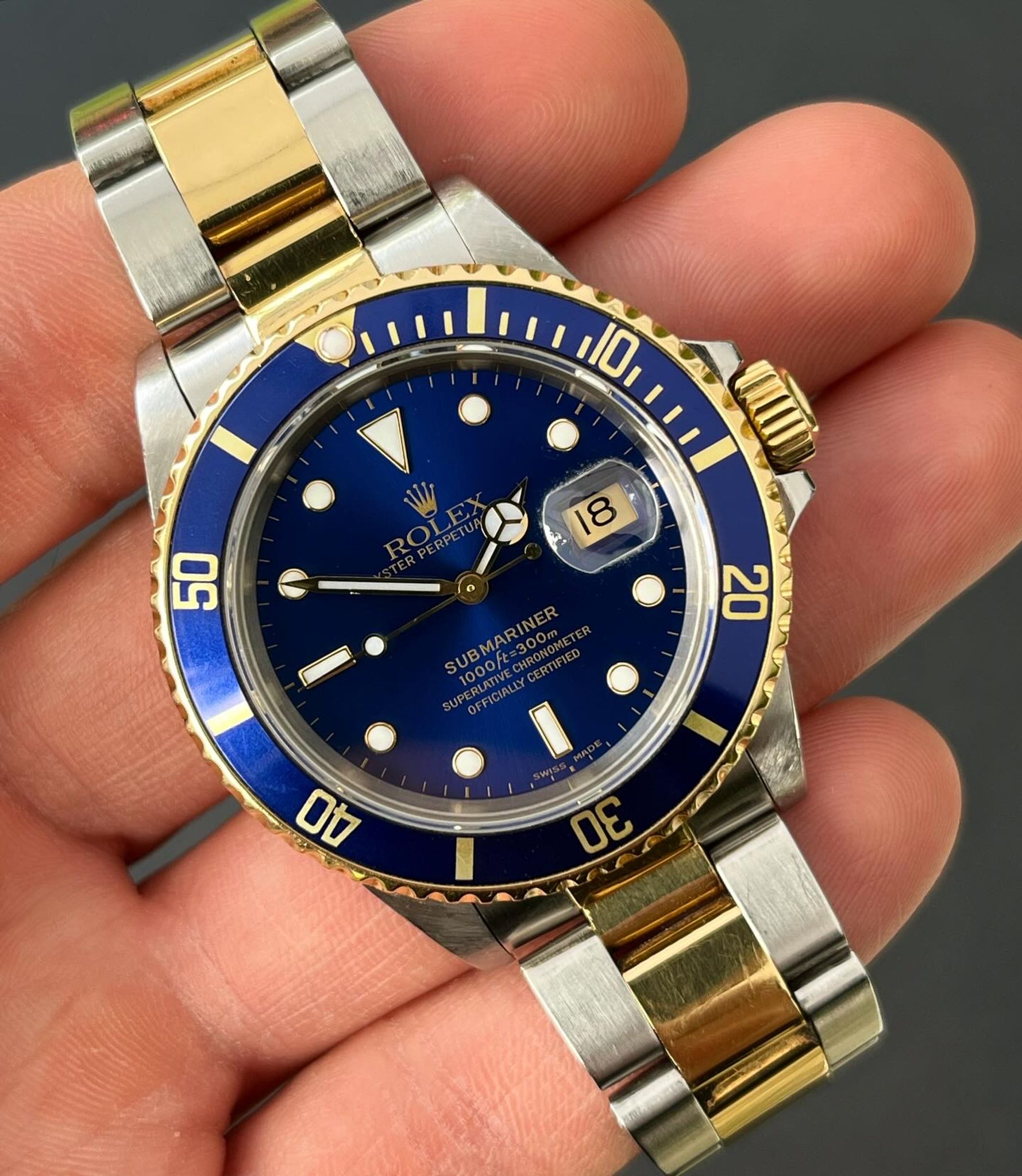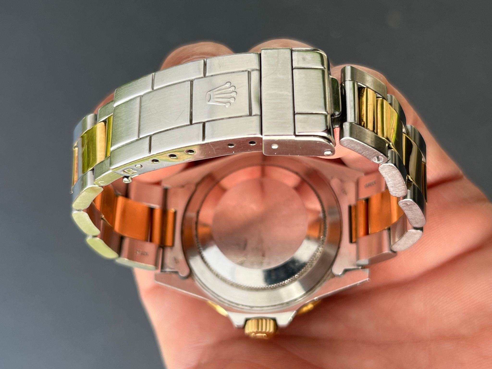 The Rolex 16803 is a distinguished and timeless timepiece that effortlessly combines classic design with cutting-edge technology. Crafted with precision and attention to detail, this iconic watch boasts a stainless steel case and a two tone bracelet, exuding durability and sophistication. The stunning black dial features luminous hour markers and hands, ensuring optimal visibility in any lighting conditions. Equipped with a date function, the Rolex 16803 seamlessly blends practicality with elegance. The yellow gold unidirectional rotating bezel not only adds a touch of sportiness but also enhances the watch's functionality. Powered by a reliable automatic movement, the Rolex 16803 exemplifies the brand's commitment to excellence and is a symbol of luxury and status. Whether worn for formal occasions or daily wear, this timepiece stands as a testament to Rolex's legacy of craftsmanship and style.