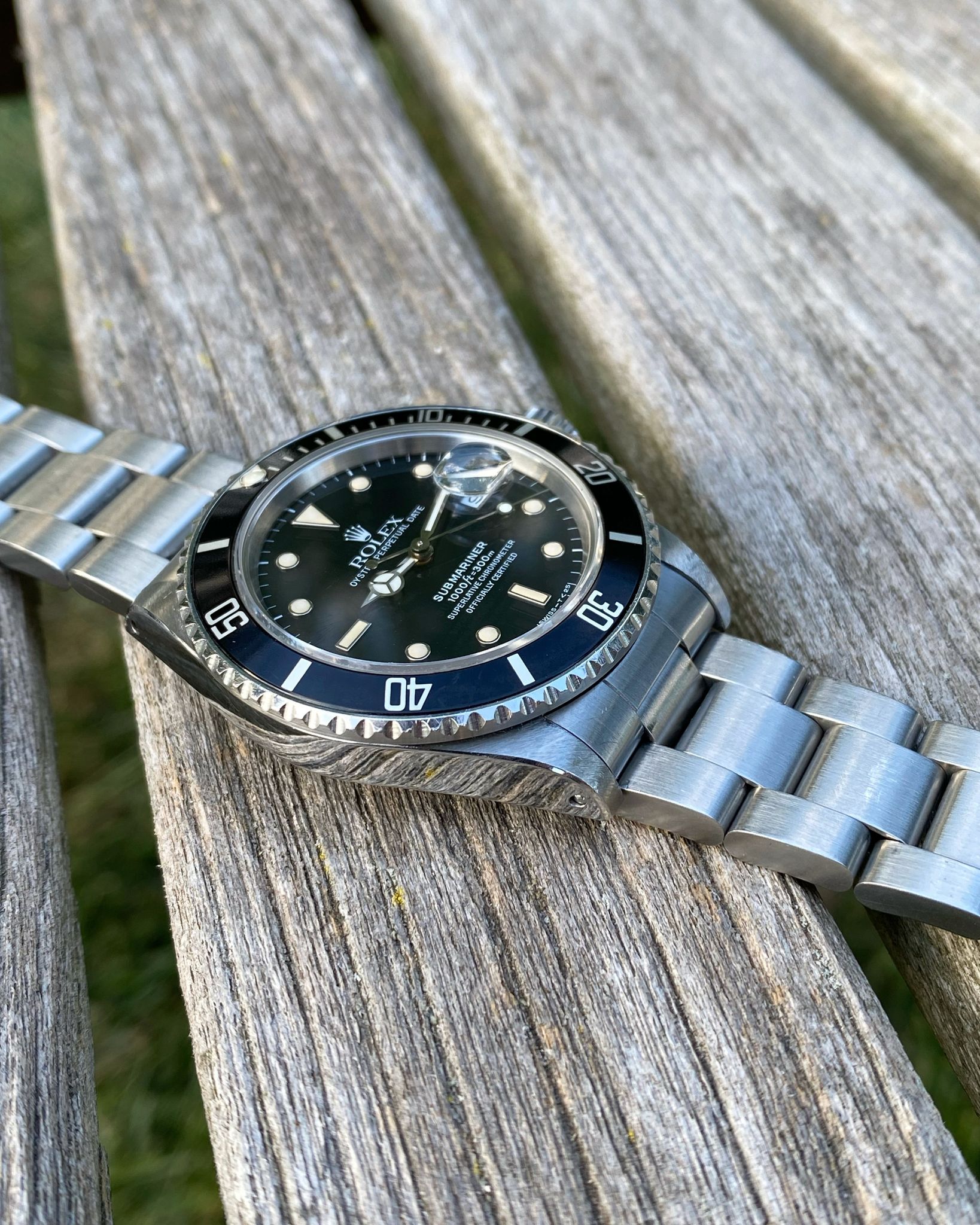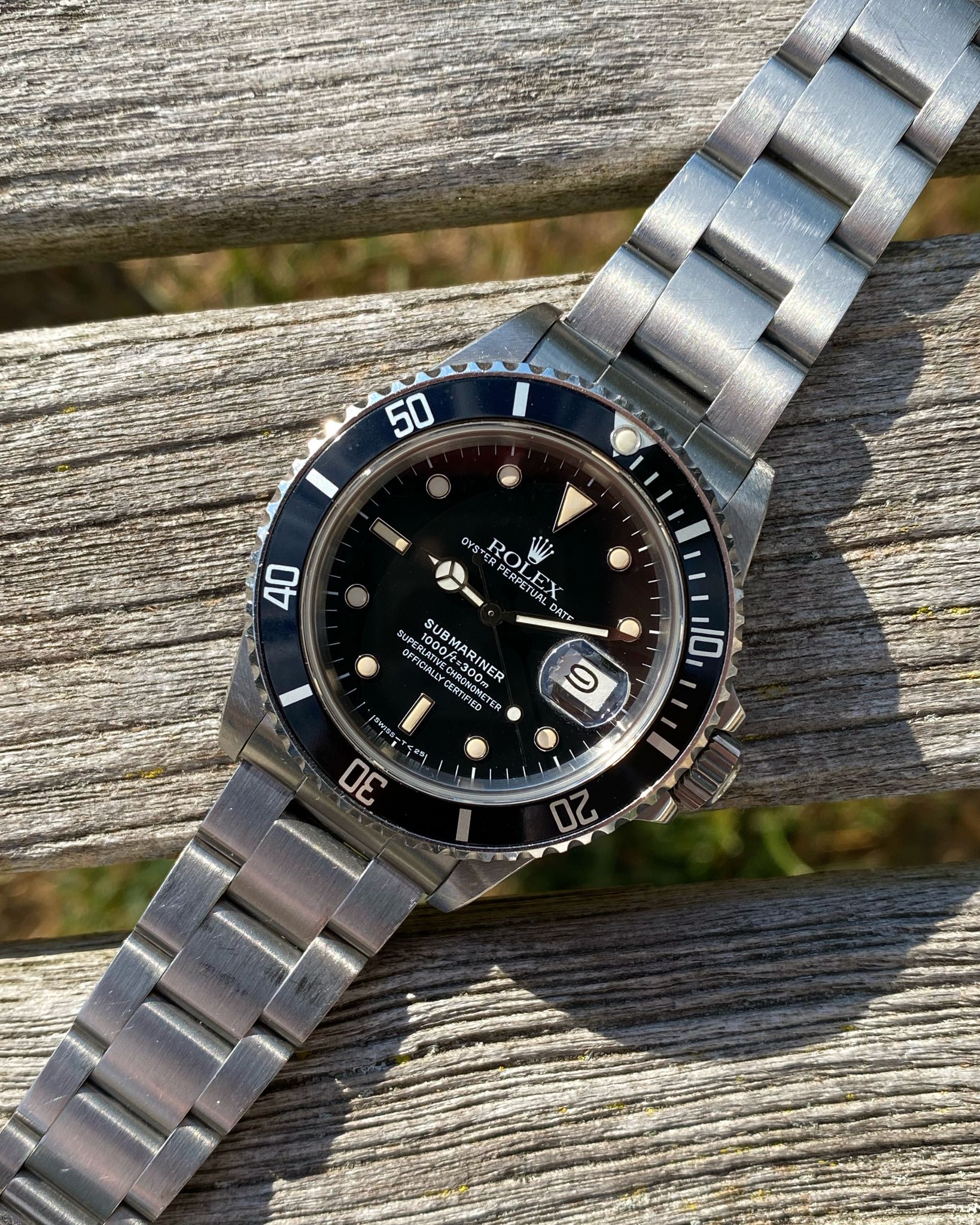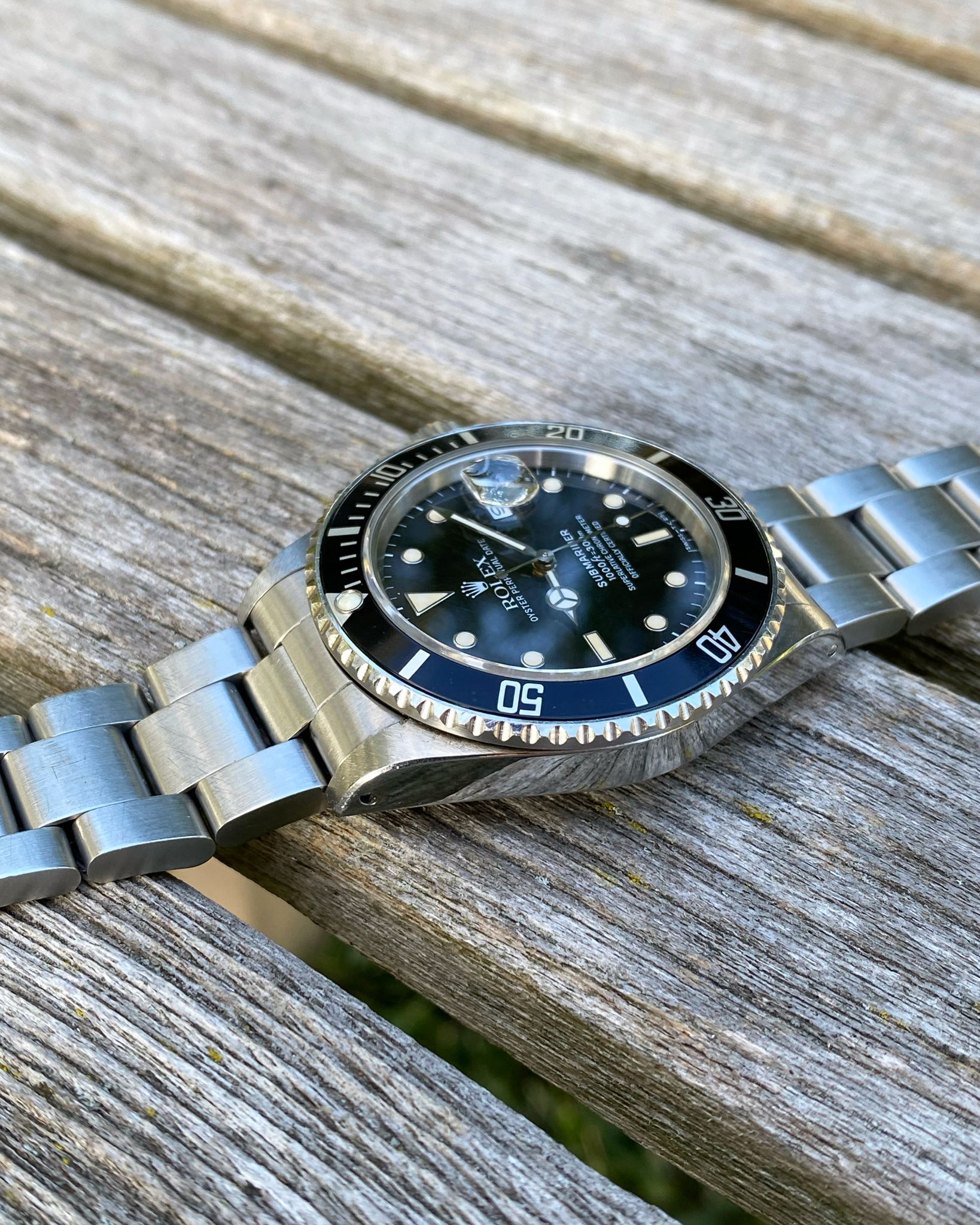 The 168000 is a transitional version of the 16800 Submariner, featuring several improvements over its predecessor, most notably the upgrade from 316L to 904L steel, with the additional “0” in the reference denoting these changes. Produced for only approximately 9 months before being replaced by the 16610, the 168000 remains one of the rarest neovintage Rolex references.