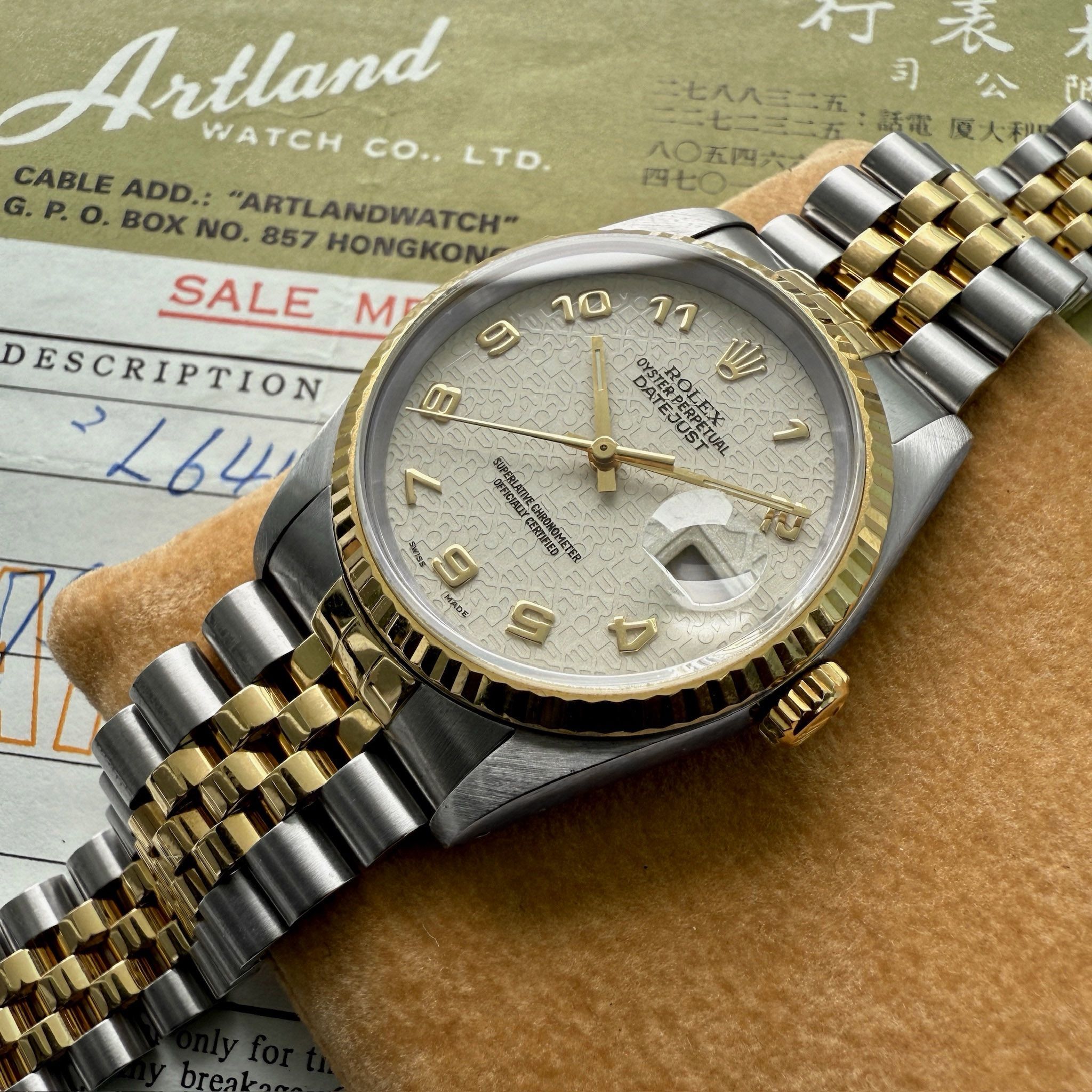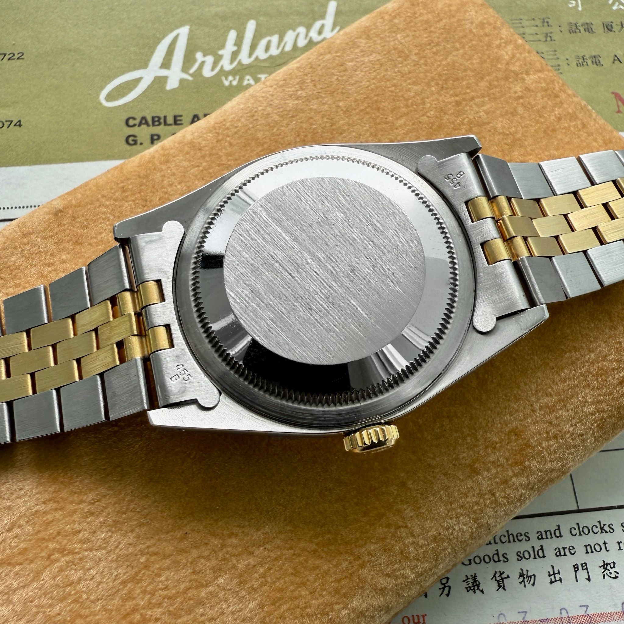• Bracelet/Strap: Factory original Rolex Jubilee Stainless Steel + 18k Solid gold middle links which is in stunning unpolished condition. The bracelet and little to no stretch. The buckle shows a few light marks, remains unpolished and has a bold Rolex symbol. The buckle is marked N10 dating the bracelet correctly to October 1989. The watch will fit an 7.9 inch wrist