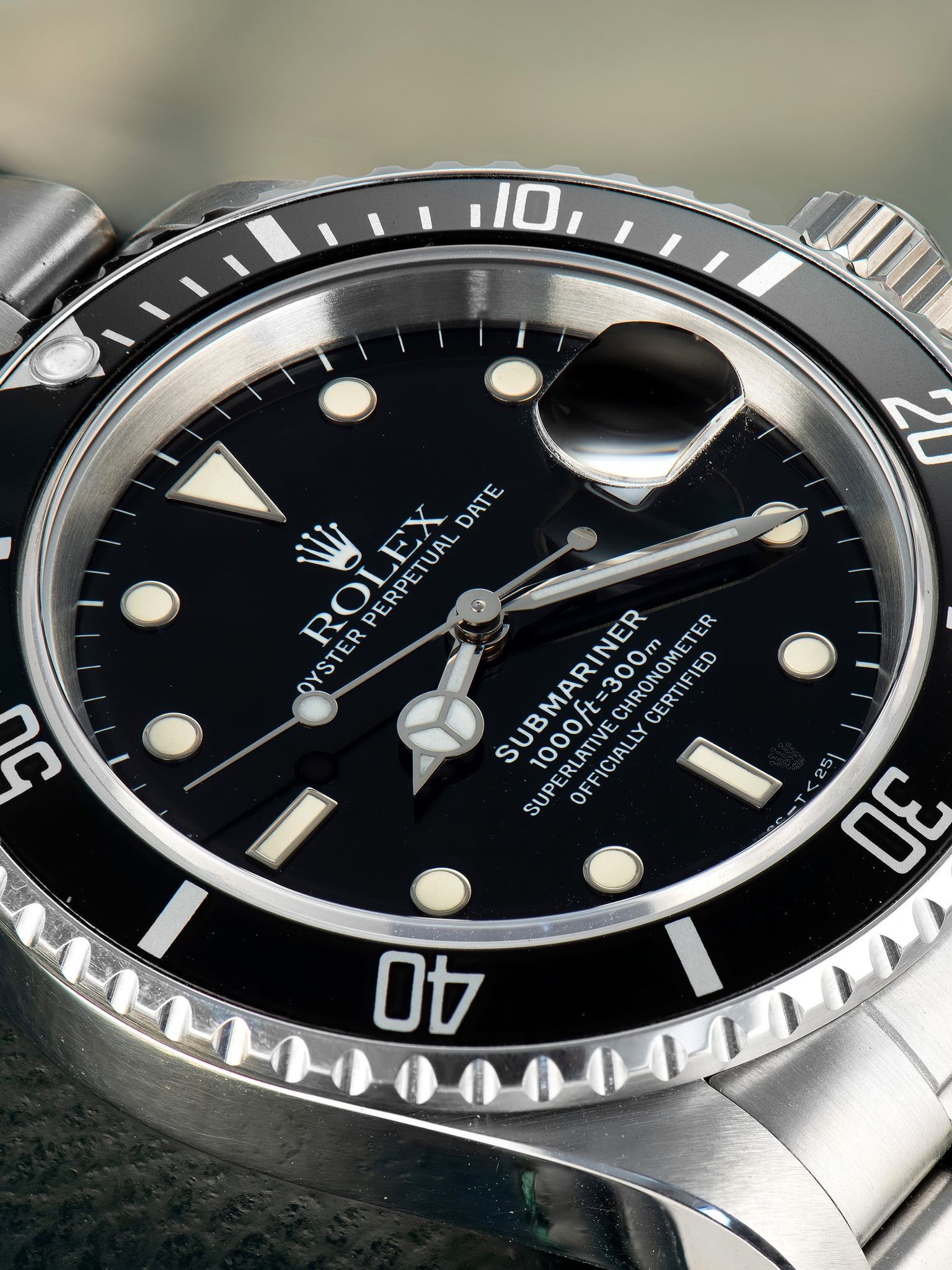 The earlier 16610 Submariner examples still feature tritium dials, which were replaced at the end of 1998 with super-luminova. These early tritium examples have become very desirable due to the charming color changes the lume can take on. Creating a fantastic vintage appeal with useful modern functionality.