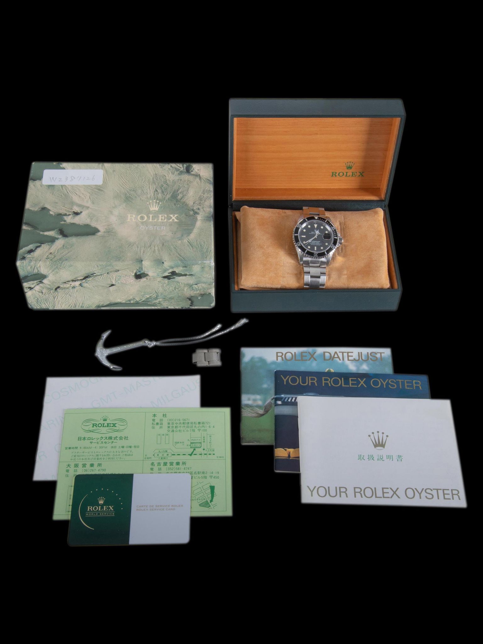 The watch comes complete with its original inner and outer boxes, Rolex Service Center Card and service invoice, additional bracelet links, and Rolex booklets.