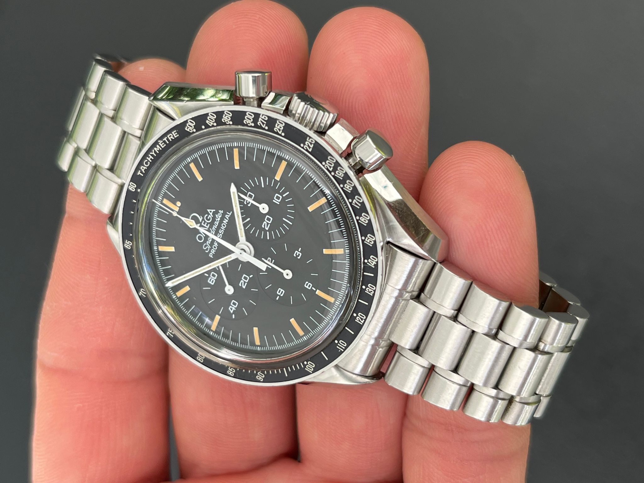 The Vintage Omega Speedmaster reference 3590.50 is a classic timepiece beloved by collectors and enthusiasts alike. This iconic chronograph, renowned for its association with NASA and space exploration, features a striking rich pumpkin patina that adds character and charm to its vintage appeal. The pumpkin patina on the hands and hour markers not only accentuates its retro aesthetic but also signifies its age and history. With its reliable manual-wind movement, durable stainless steel construction, and timeless design, the Omega Speedmaster reference 3590.50 with vivd pumpkin Patina is a standout choice for those seeking a piece of horological history with a distinct vintage flair.
