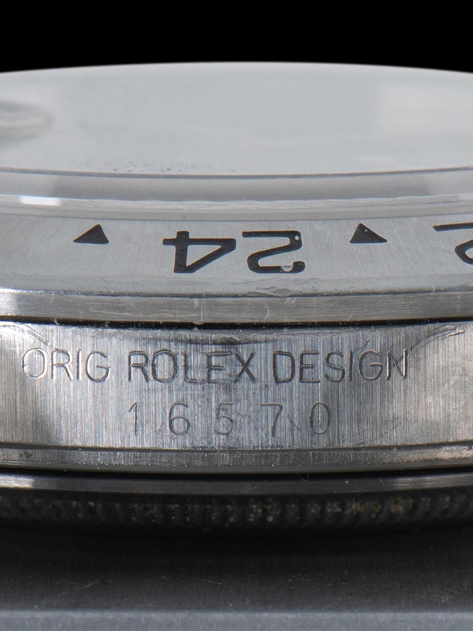 The Rolex Explorer II ref. 16570 was introduced in 1989, directly succeeding the transitional ref. 16550 with some subtle cosmetic and internal upgrades. The Rolex Explorer II ref. 16570 employs the updated and robust cal. 3185 jumping hour movement, and the bezel font was slightly modified from the previous reference.