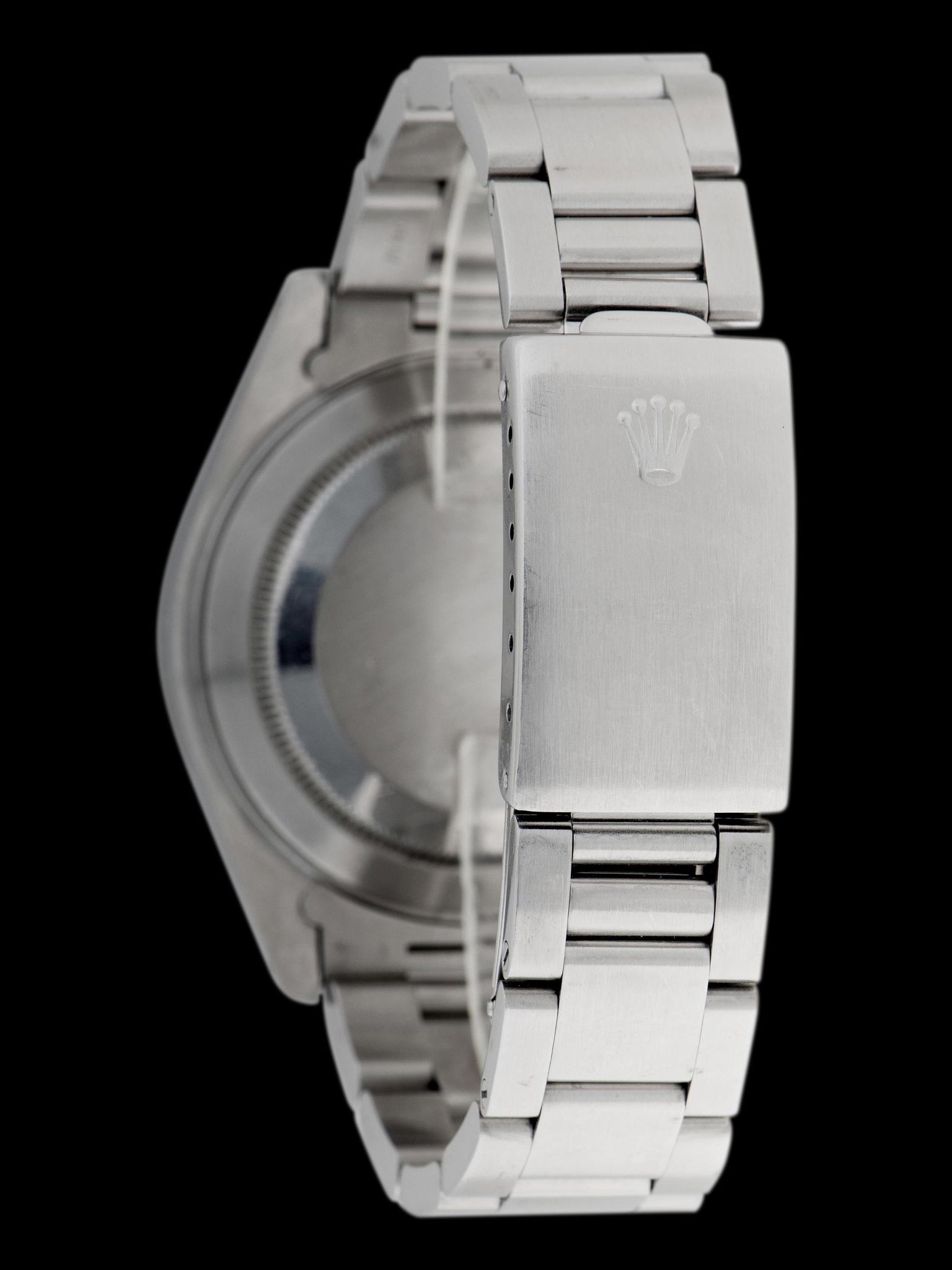 The strong case retains its factory chamfers on the very thick, symmetrical lugs that show honest signs of light use with minimal evidence of being previously polished. The original fixed 24-hour stainless steel bezel is in excellent condition, showing gentle signs of use with minimal loss of the factory black enamel. The original Rolex 78360 Oyster bracelet with 501B end pieces retains 11 links that show nominal stretch and will fit up to a 7-inch wrist.