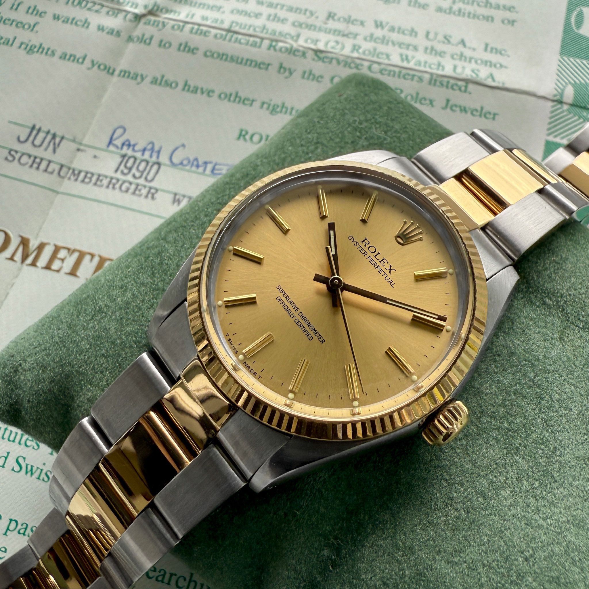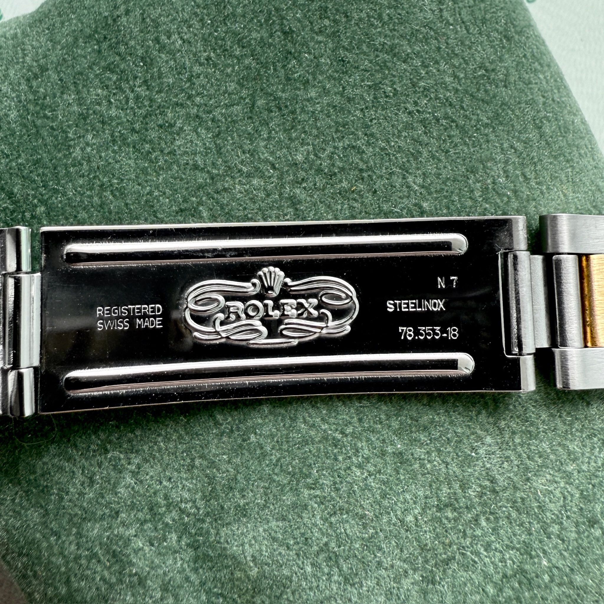 •Bracelet/Strap: Original Rolex Oyster Stainless Steel + 18k solid gold middle links which has been polished by our watchmaker back for factory Rolex condition. This bracelet no stretch. The strap will fit an 8 inch wrist