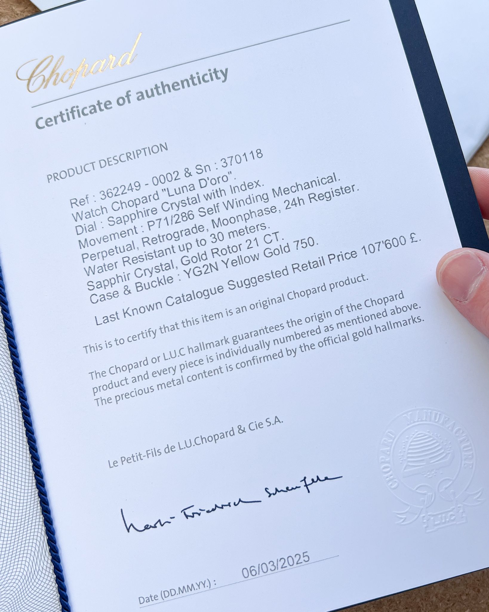 Chopard - 1990’s Chopard Luna D’oro Retrograde Perpetual Calender w/ Certificate