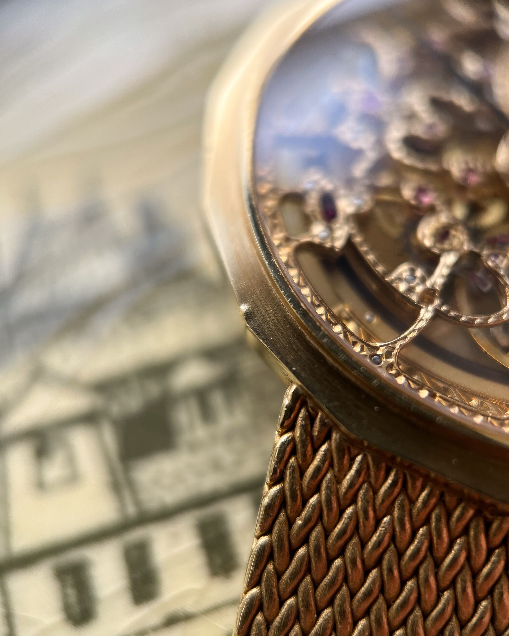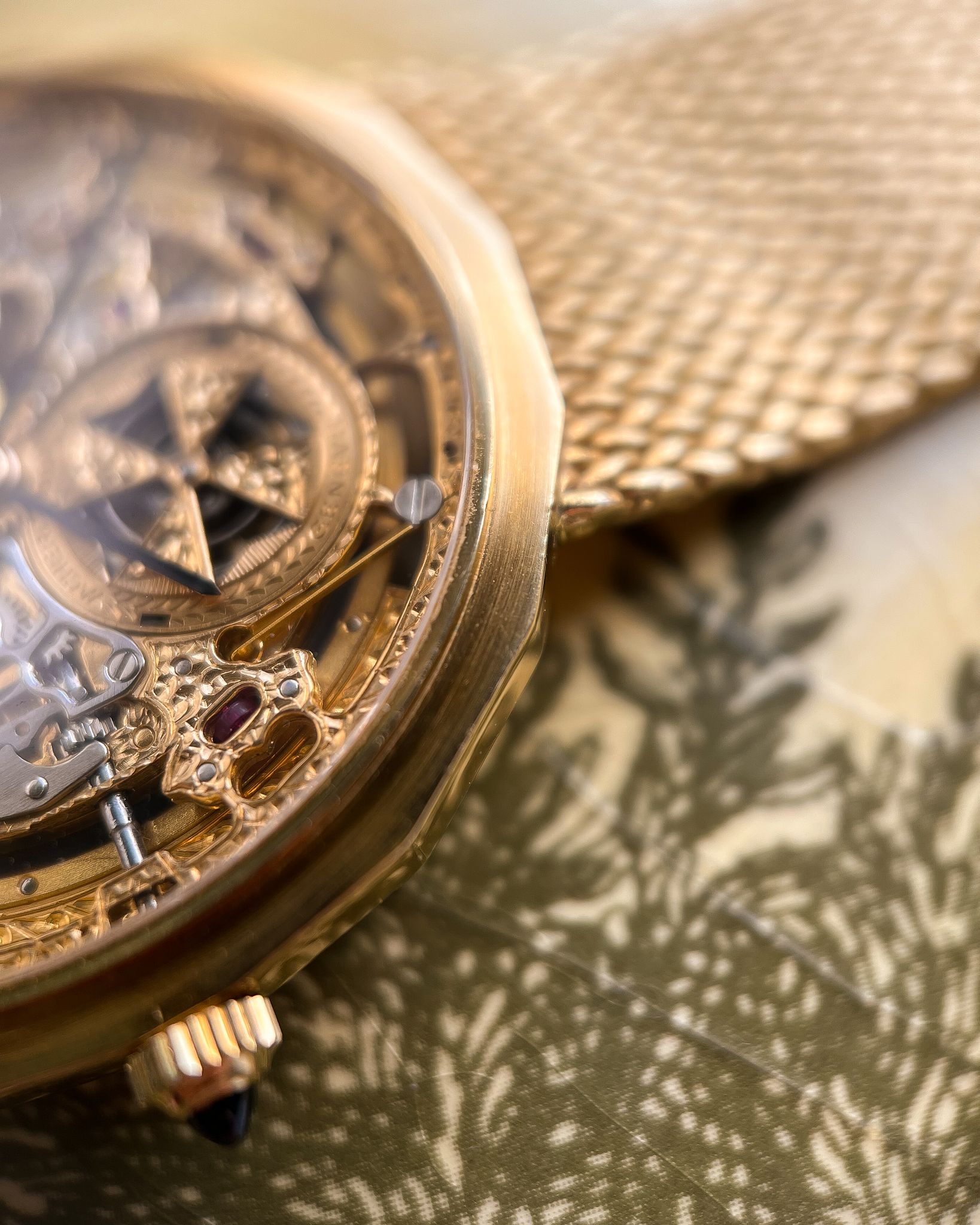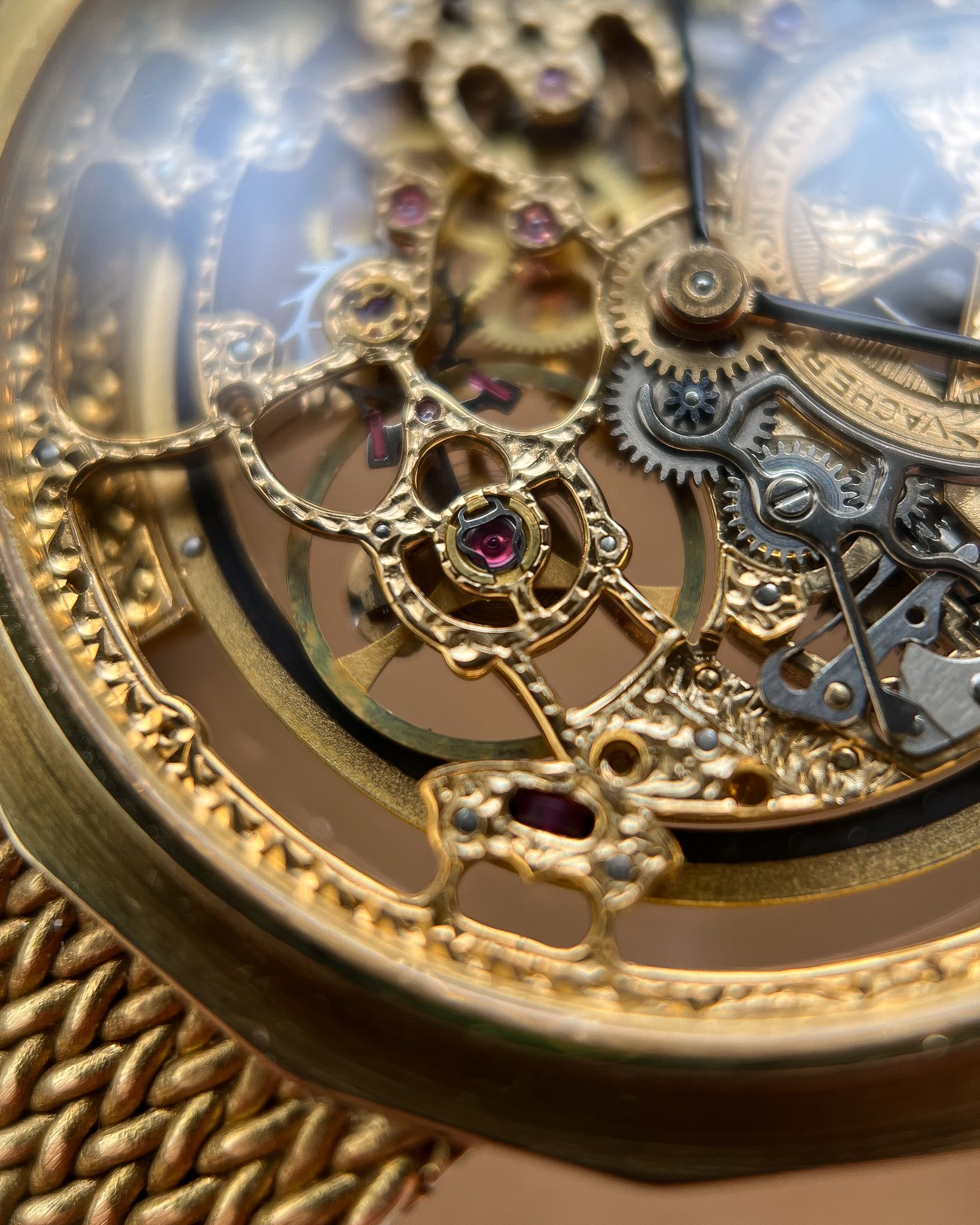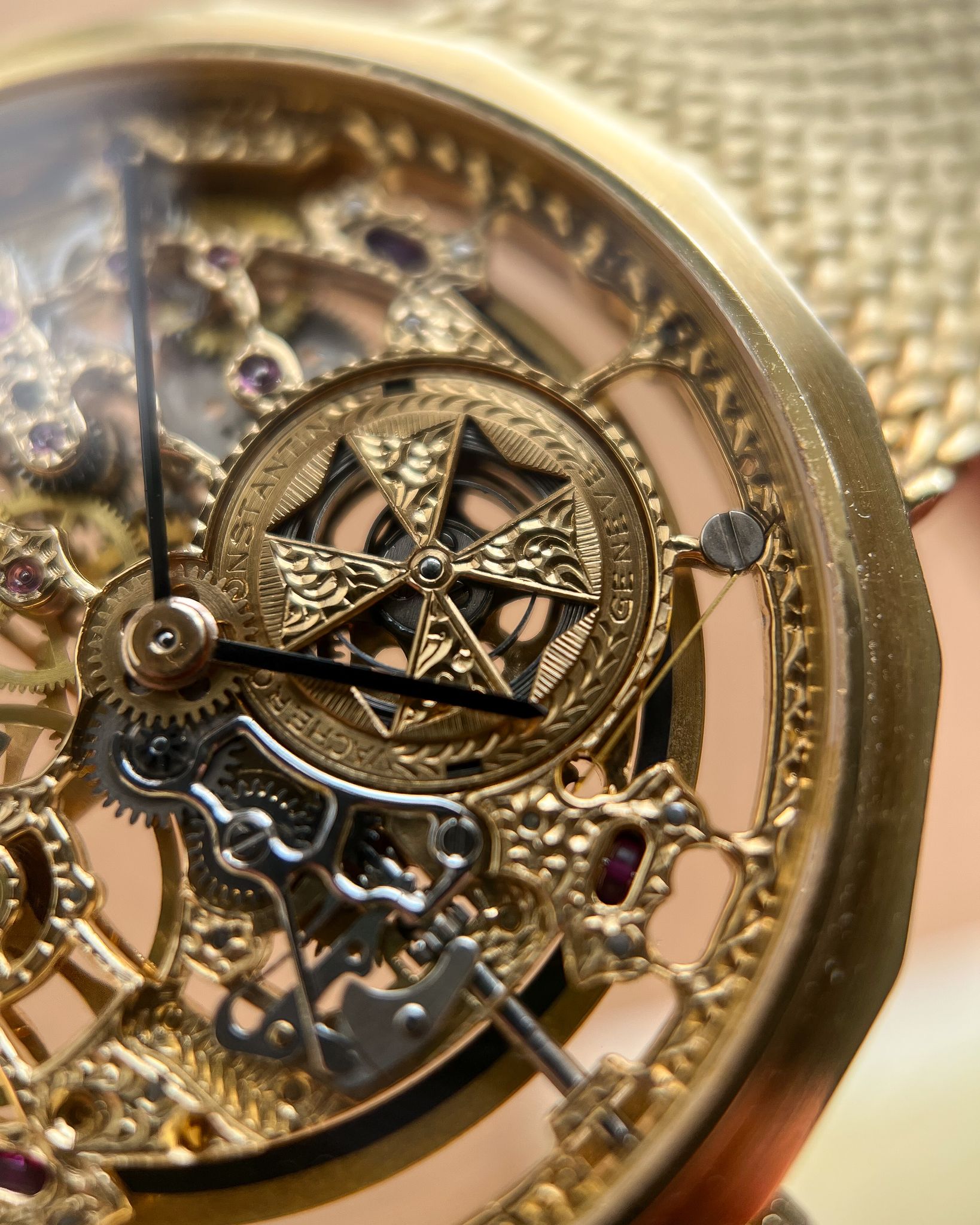 What I love — Rare and beautiful, fully hand engraved skeletonized VC powered by the automatic JLC 920 ébauche. Complete set including the original receipt from the Manchester Watches of Switzerland in 1990. The case is in good condition, rather delightful 16 sided case with hallmarks present on the side. This bracelet variant is very uncommon, the first I’ve seen and will fit up to 19cm. The watch has just had a full mechanical service and ready to roll!