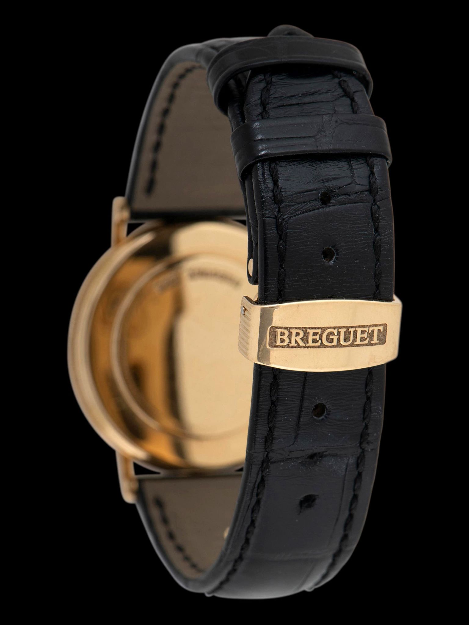 Strap 2pc Breguet Black Alligator Leather Strap W/ 18K YG Breguet Deployant Clasp