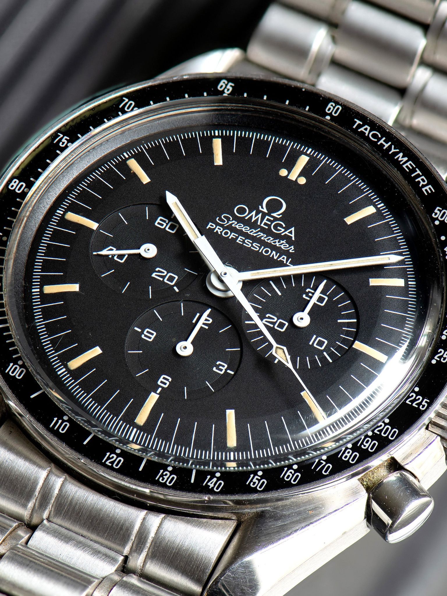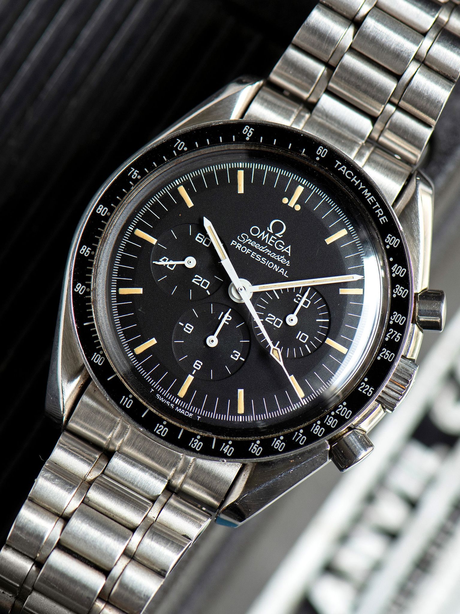 The Omega Speedmaster Professional is by far one of our most favorite chronographs. The Speedmaster has an incredible history starting with automotive racing moving into flight and eventually to NASA and the U.S. Space Program. There are many subtle differences within the vintage Omega Speedmaster range of references that make them all slightly unique and different.