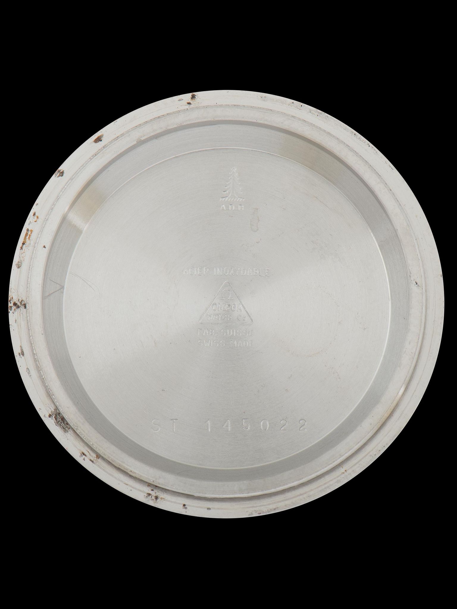 The classic asymmetrical case is in excellent overall condition, showing elements of gentle wear with minimal evidence of light polishing in the past and crisp finishing throughout. The black aluminum tachymetre bezel remains very clean with only minor signs of use shown. The case retains its original pump pushers and Omega-signed crown. The case back is in very crisp condition with the medallion fully intact and most of the factory black enamel is intact as well. The Omega 1479 bracelet with 812 end pieces retains 23 links that show almost no stretch and will fit up to a 7 3/4-inch wrist.