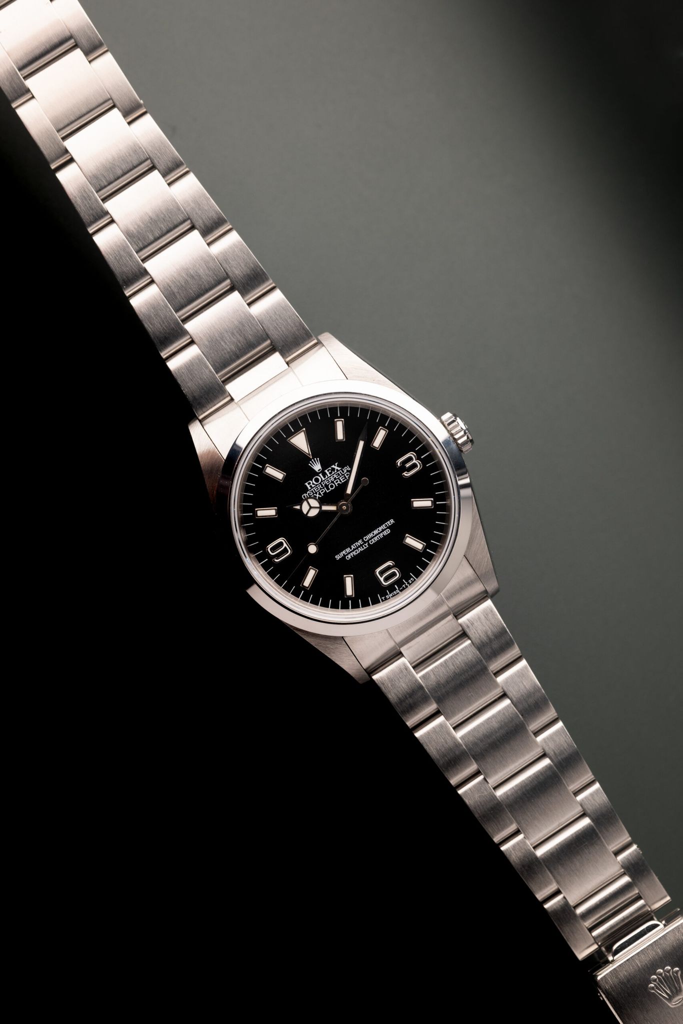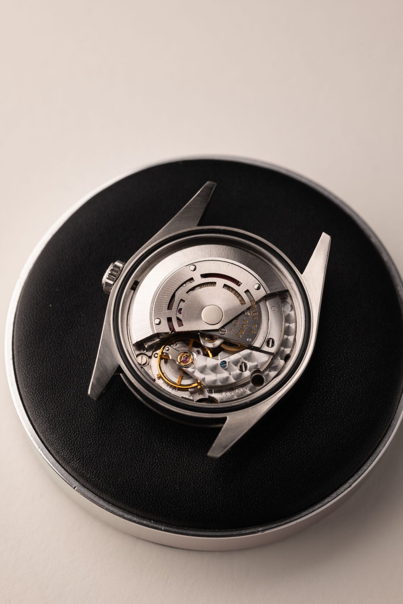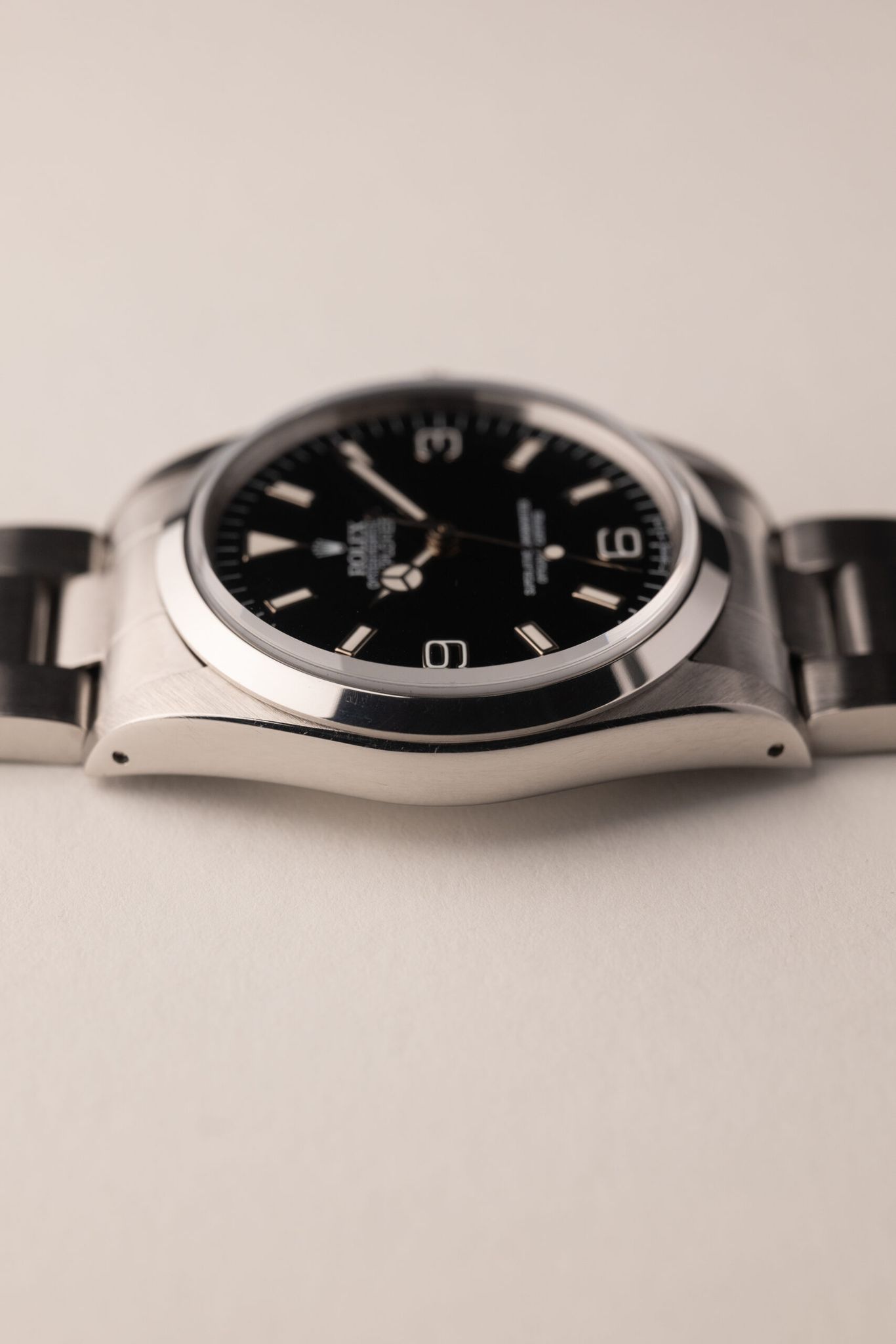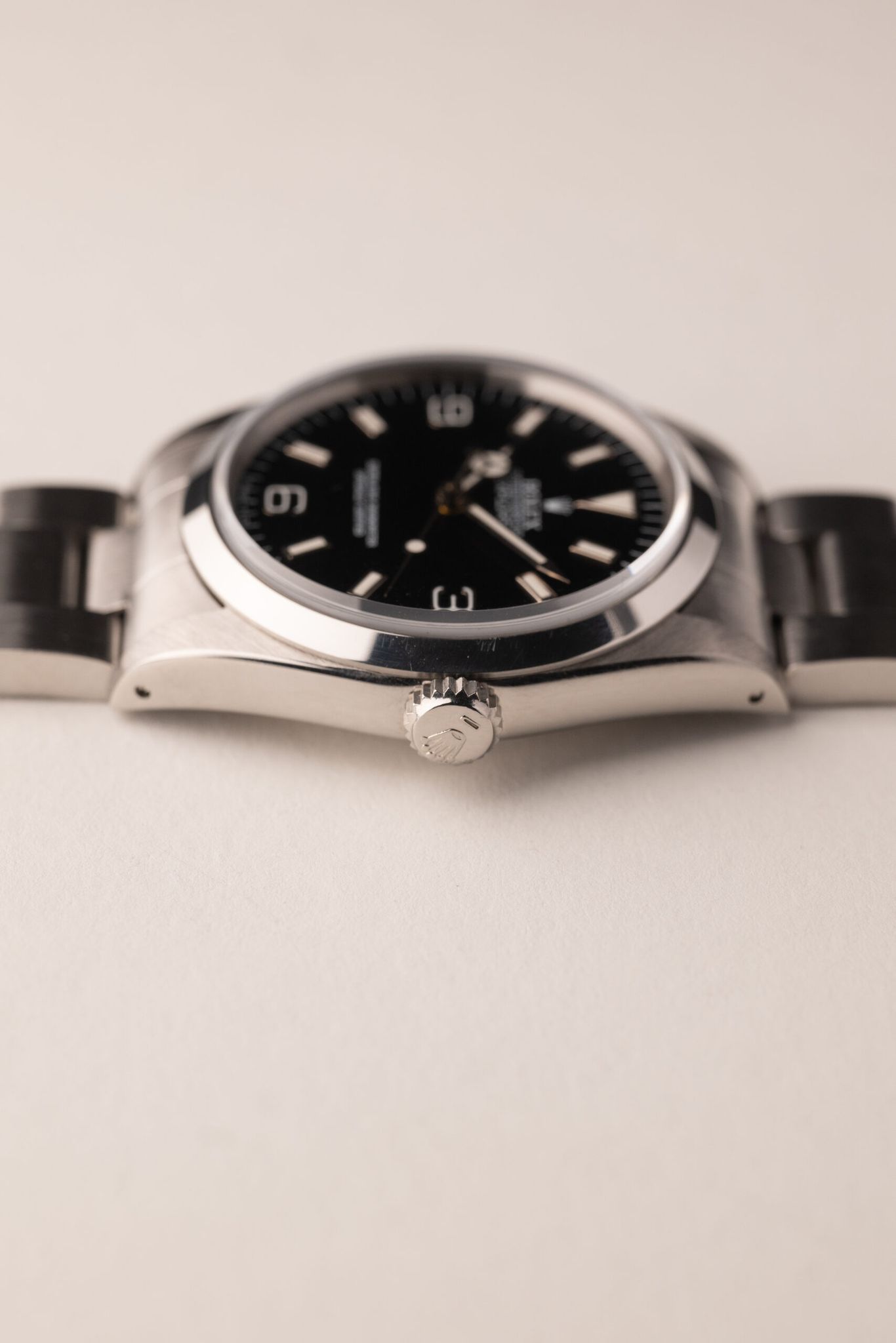 If you’ve been following our page, you’ll notice patterns develop across Rolex from certain years. 1991 was an aberrant as the marquee experienced an experimental lume transition from the late 80’s into to 91 seen in the drastic dial and lume color variations. On this Explorer, the tritium developed a frosted patina across the dial face giving it a topographical appearance. Case comes excellent with original sticker., lume churned soft yellow.