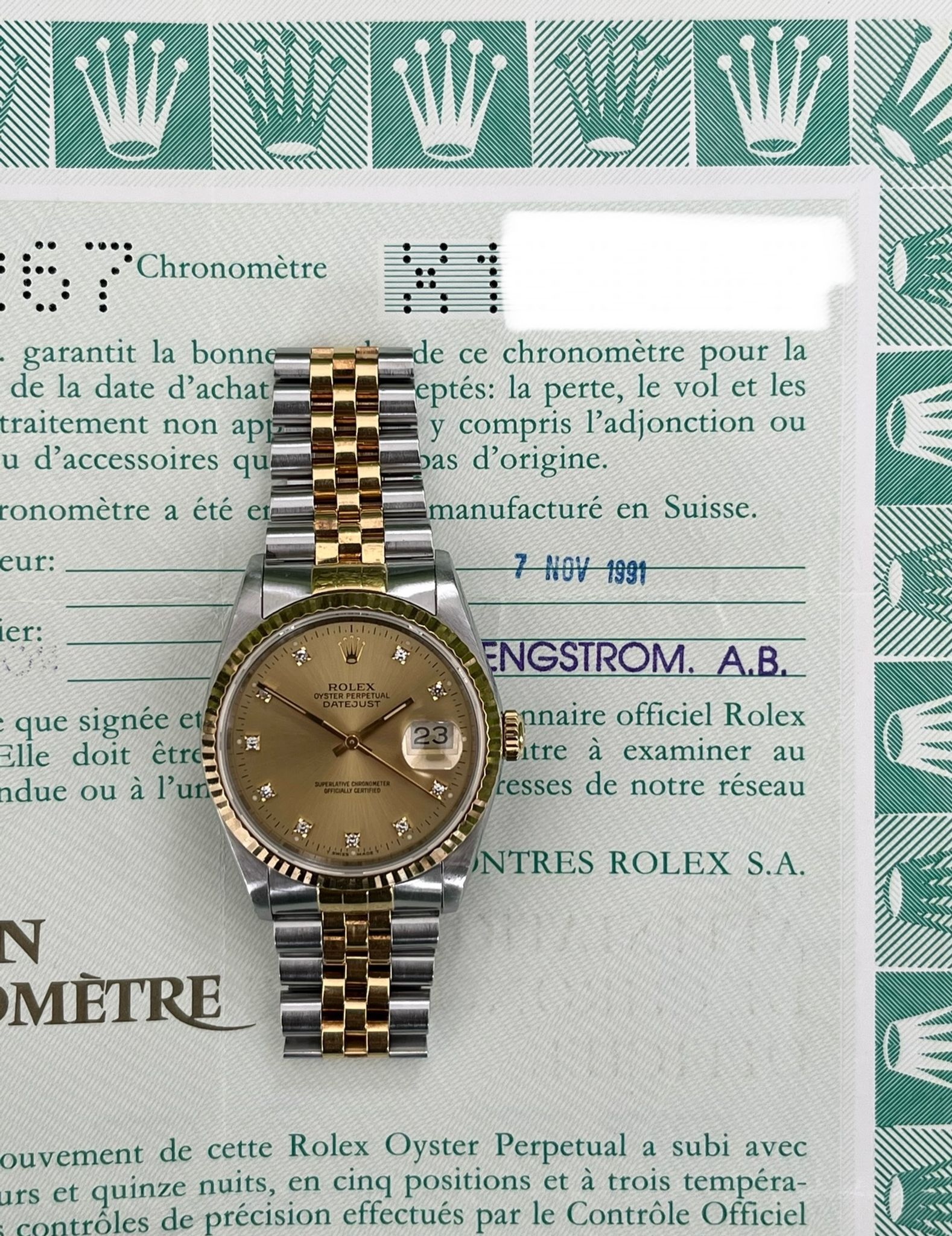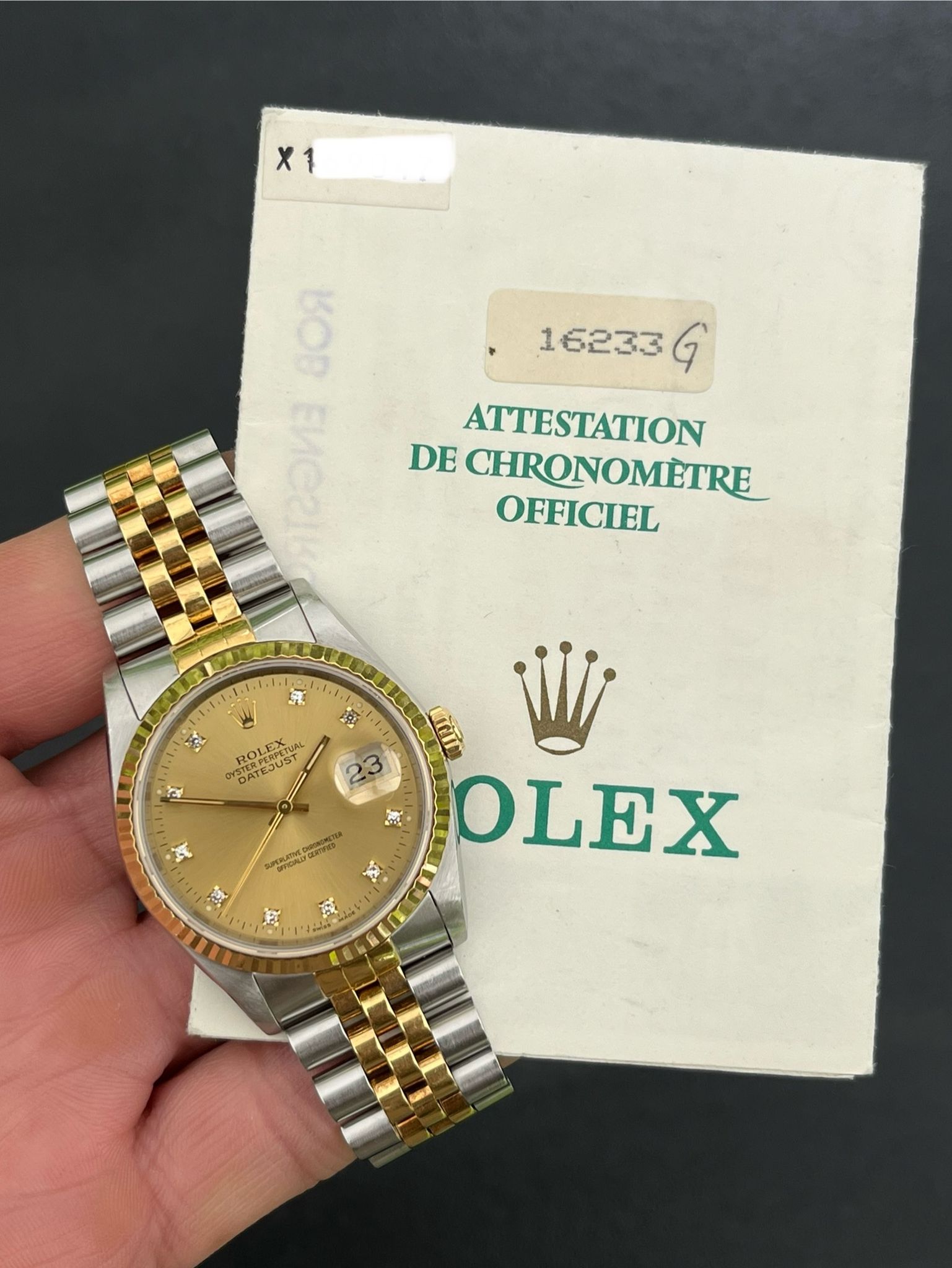 Rolex - 1991 Vintage Rolex Date Just Ref. 16233G Diamond Dial w/Papers