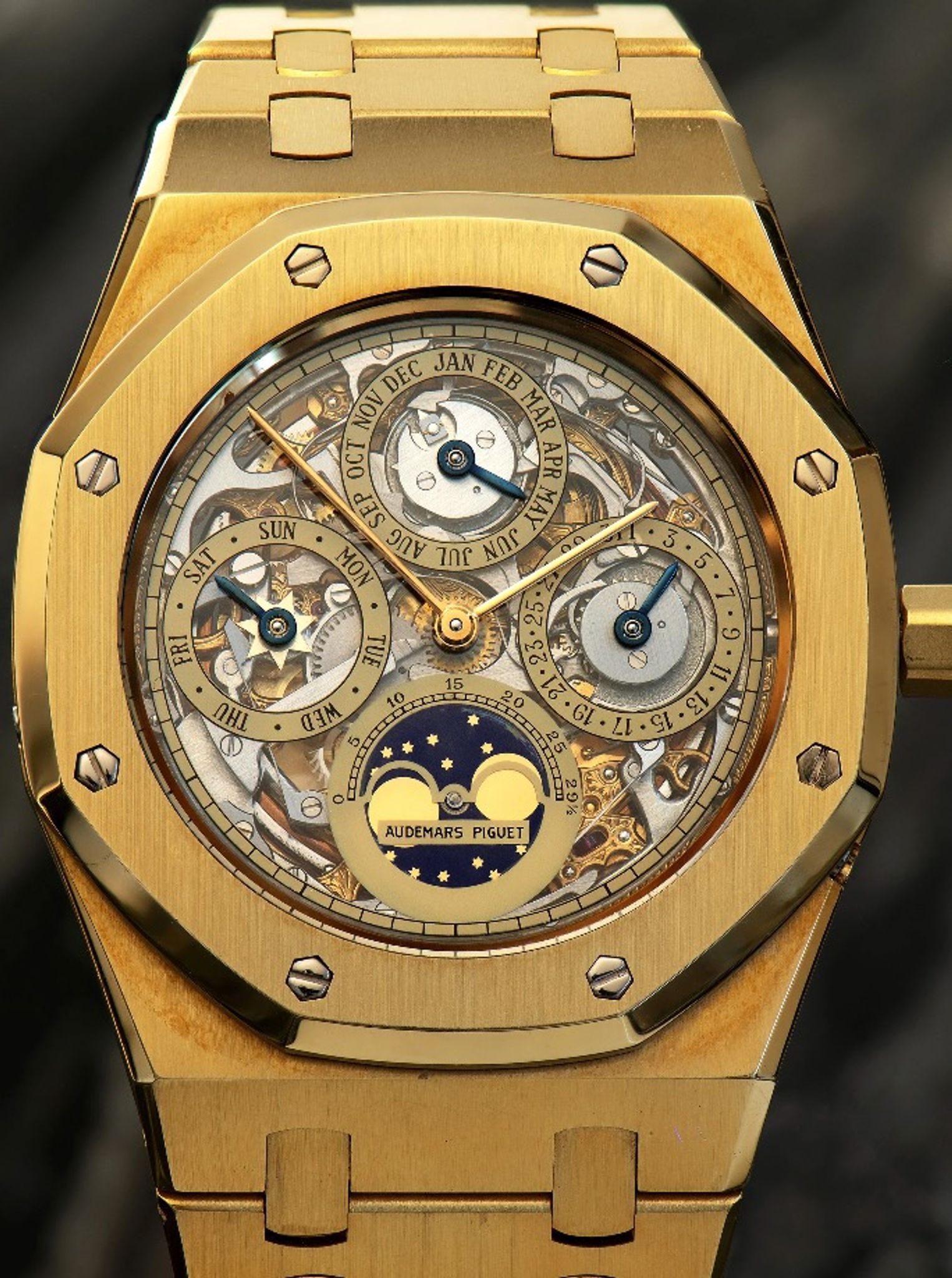 Audemars Piguet - 1992 Audemars Piguet Royal Oak Quantième Perpetual Calendar 18K YG (Ref. 25636BA) Openwork "Small Font" Dial W/ Box, Winder, AP COA, AP Extract, AP Service Papers, & Accessories