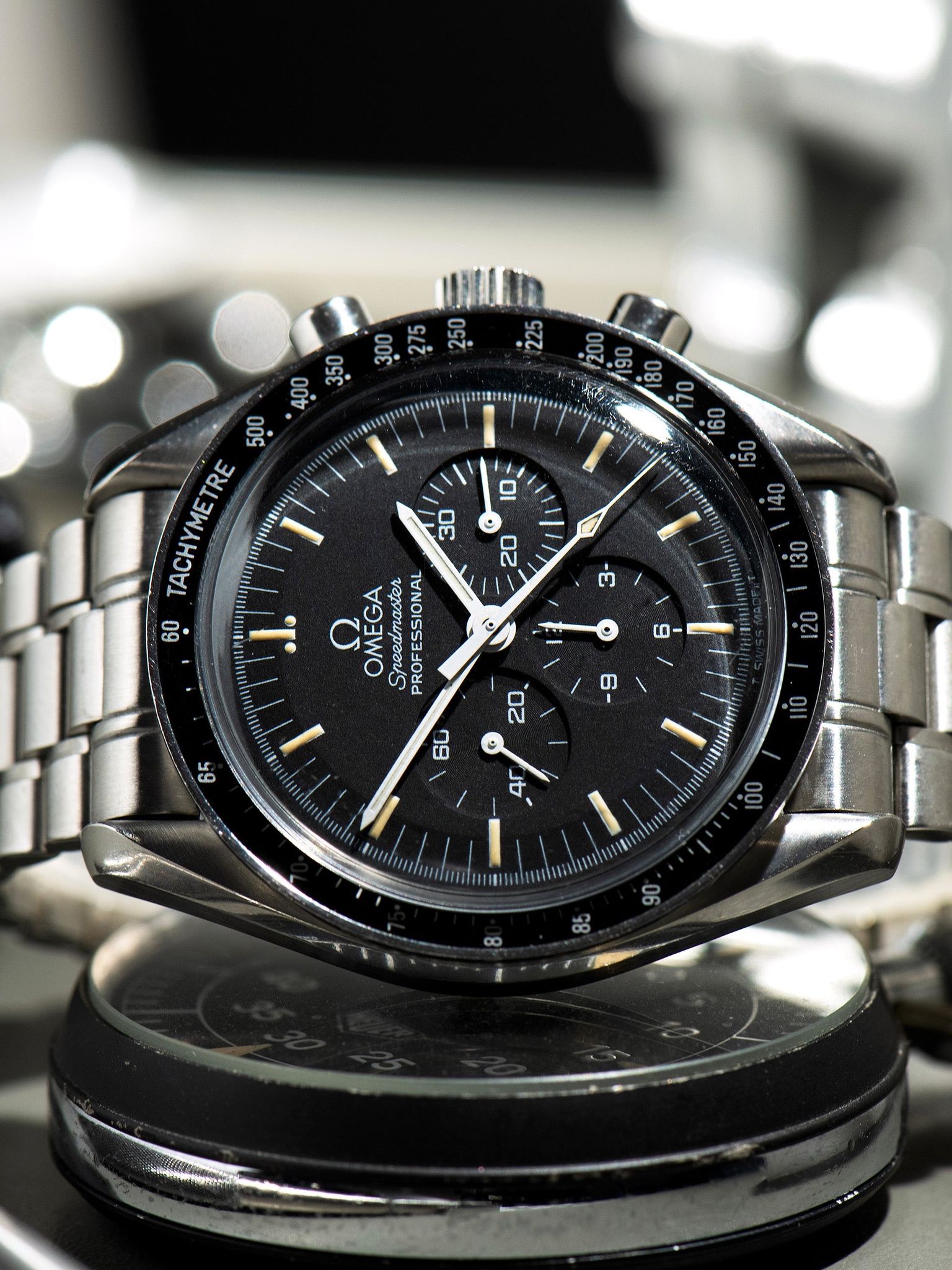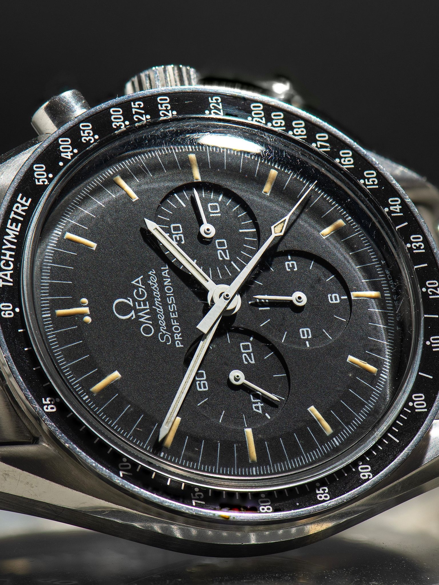 The Speedmaster looks great on the bracelet as well as a handcrafted leather strap. It is one of our favorite chronographs due to its timeless design and functionality. Its versatility to be paired with the most formal and casual of wardrobes also makes the Speedmaster a good choice for the first vintage timepiece and a classic daily driver.