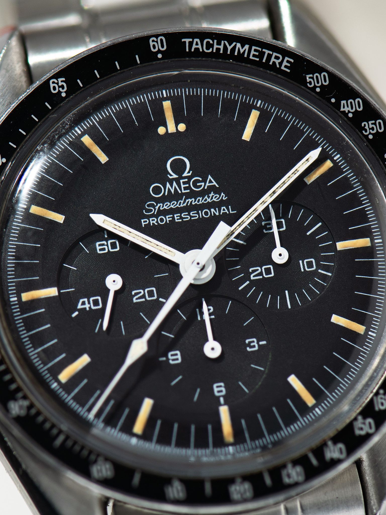 The Speedmaster looks great on the bracelet as well as a handcrafted leather strap. It is one of our favorite chronographs due to its timeless design and functionality. Its versatility to be paired with the most formal and casual of wardrobes also makes the Speedmaster a good choice for the first vintage timepiece and a classic daily driver.