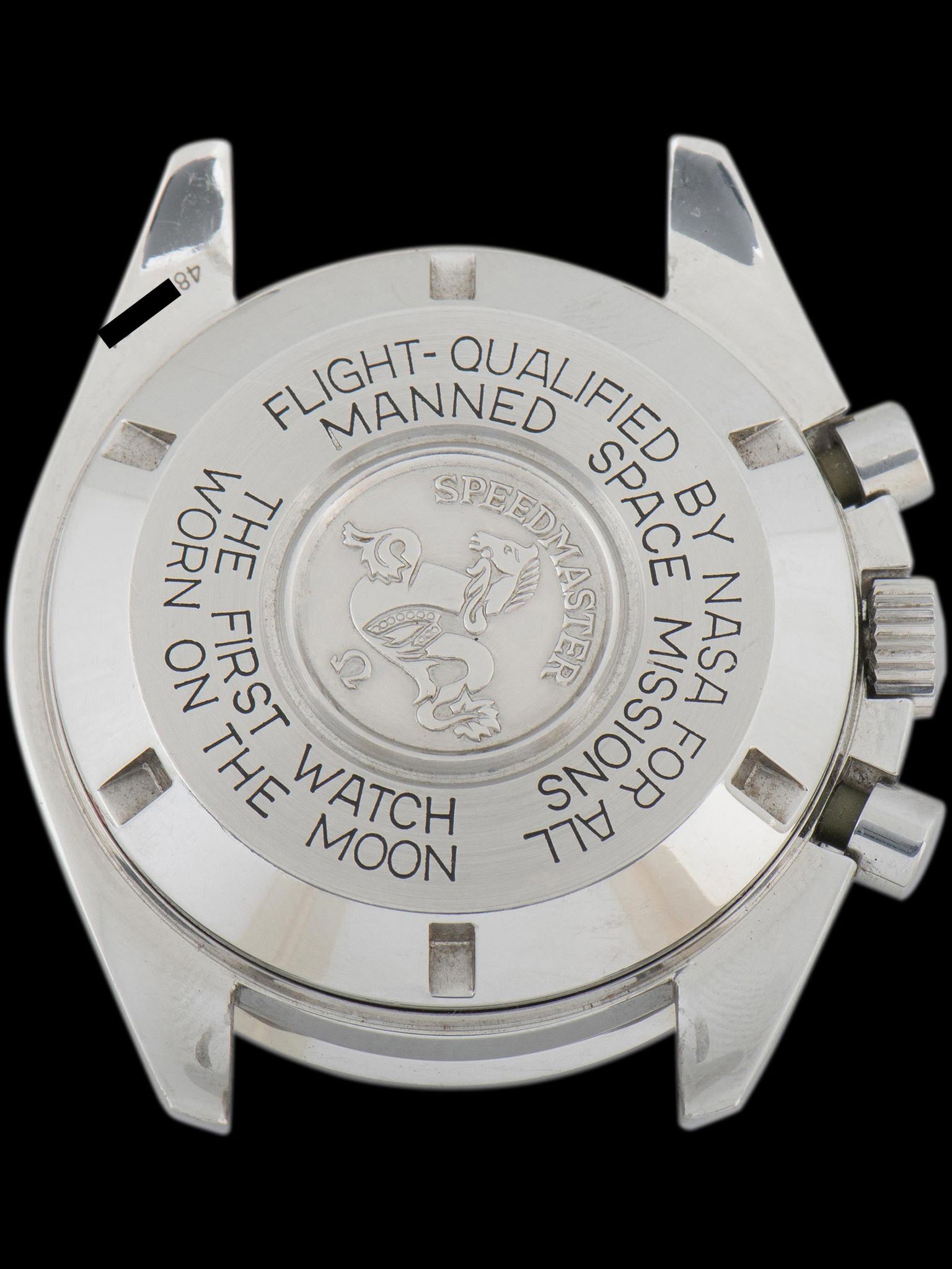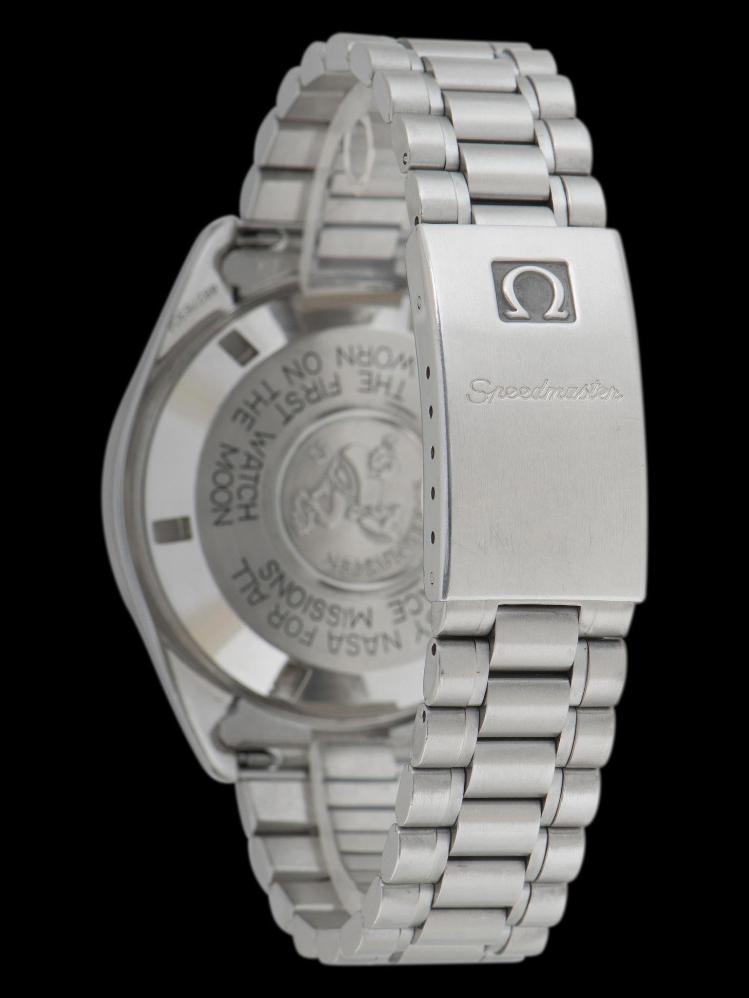 The classic asymmetrical case is in excellent overall condition, showing elements of gentle wear and minimal evidence of light polishing while retaining crisp finishing throughout. The black aluminum tachymetre bezel remains very clean with no notable signs of use shown. The case retains its original pump pushers and Omega-signed crown. The case back is in very crisp condition with the medallion fully intact along with all of the factory black enamel intact as well. The Omega 1479 bracelet with 812 end pieces retains 21 links that show virtually no stretch and will fit up to a 7 1/4-inch wrist. The bracelet comes with 4 additional links as well.