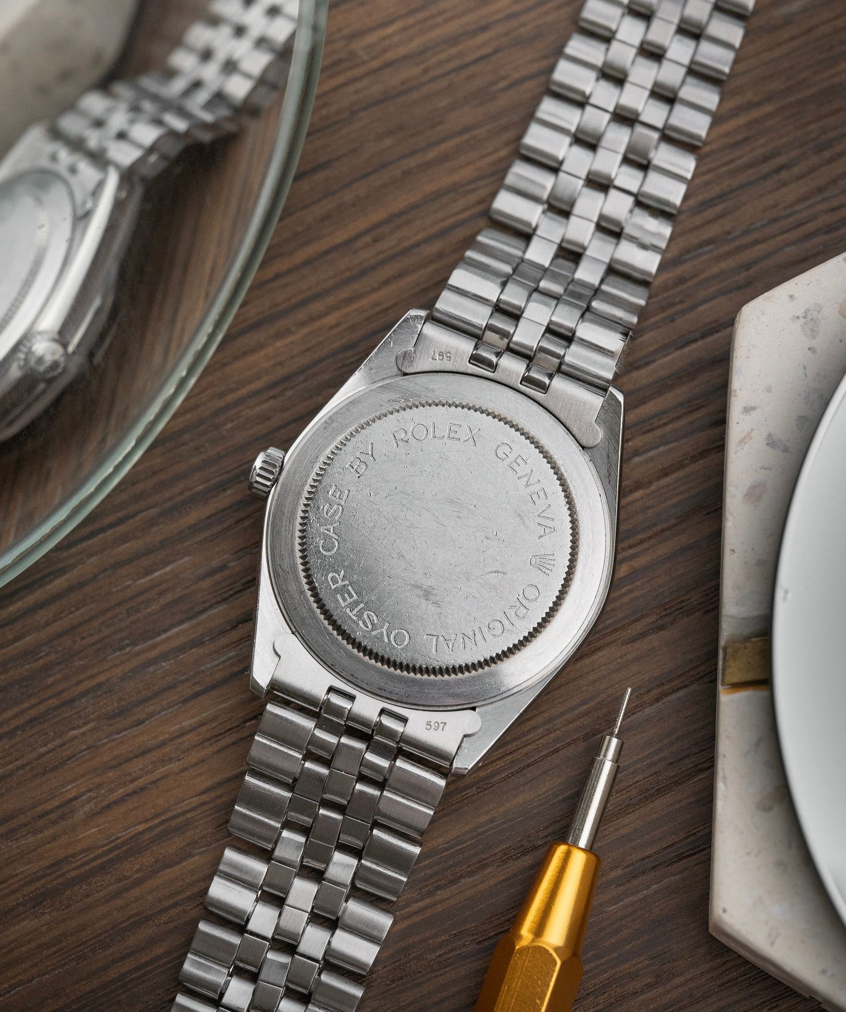 Caseback: Original stainless steel case in attractive condition.