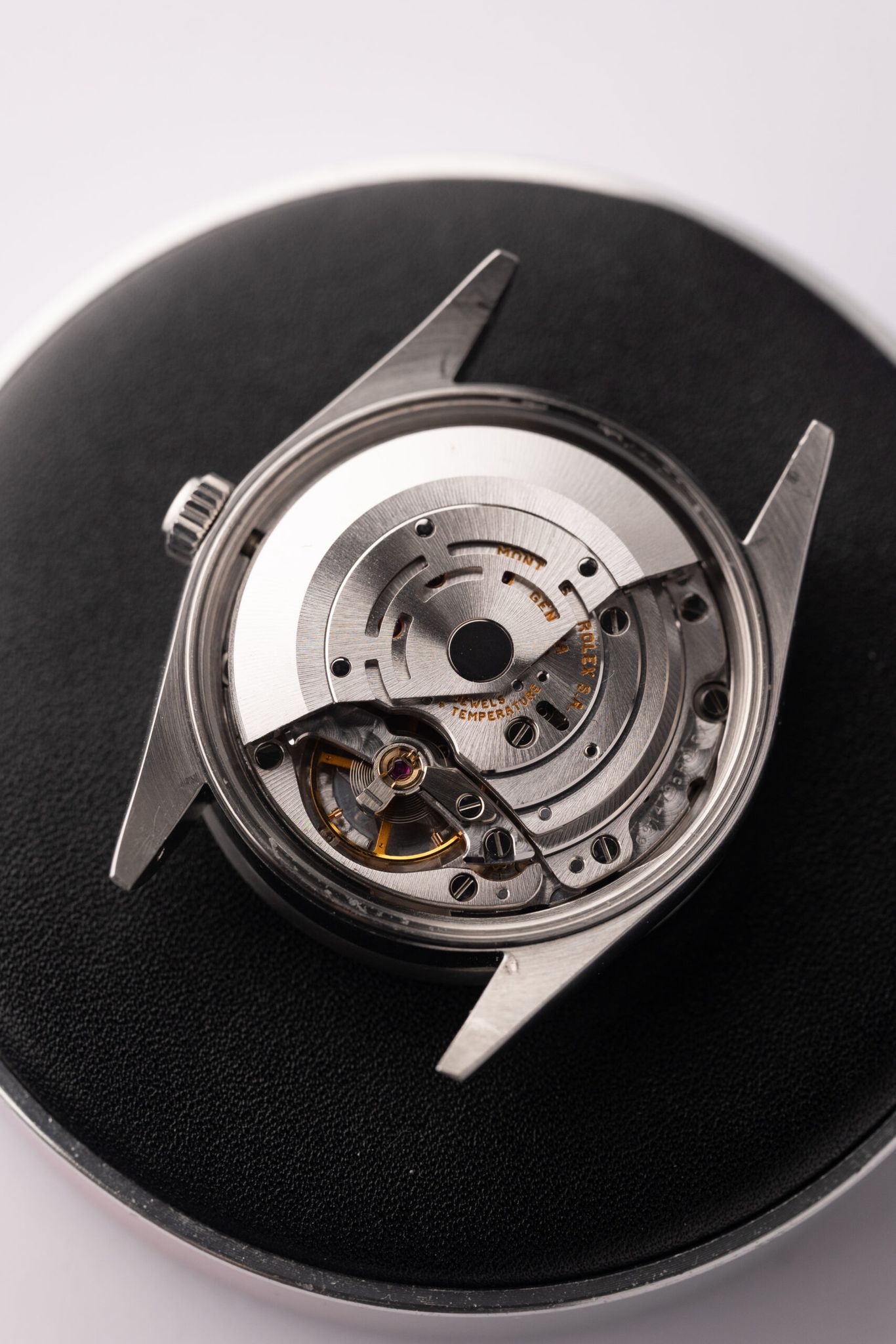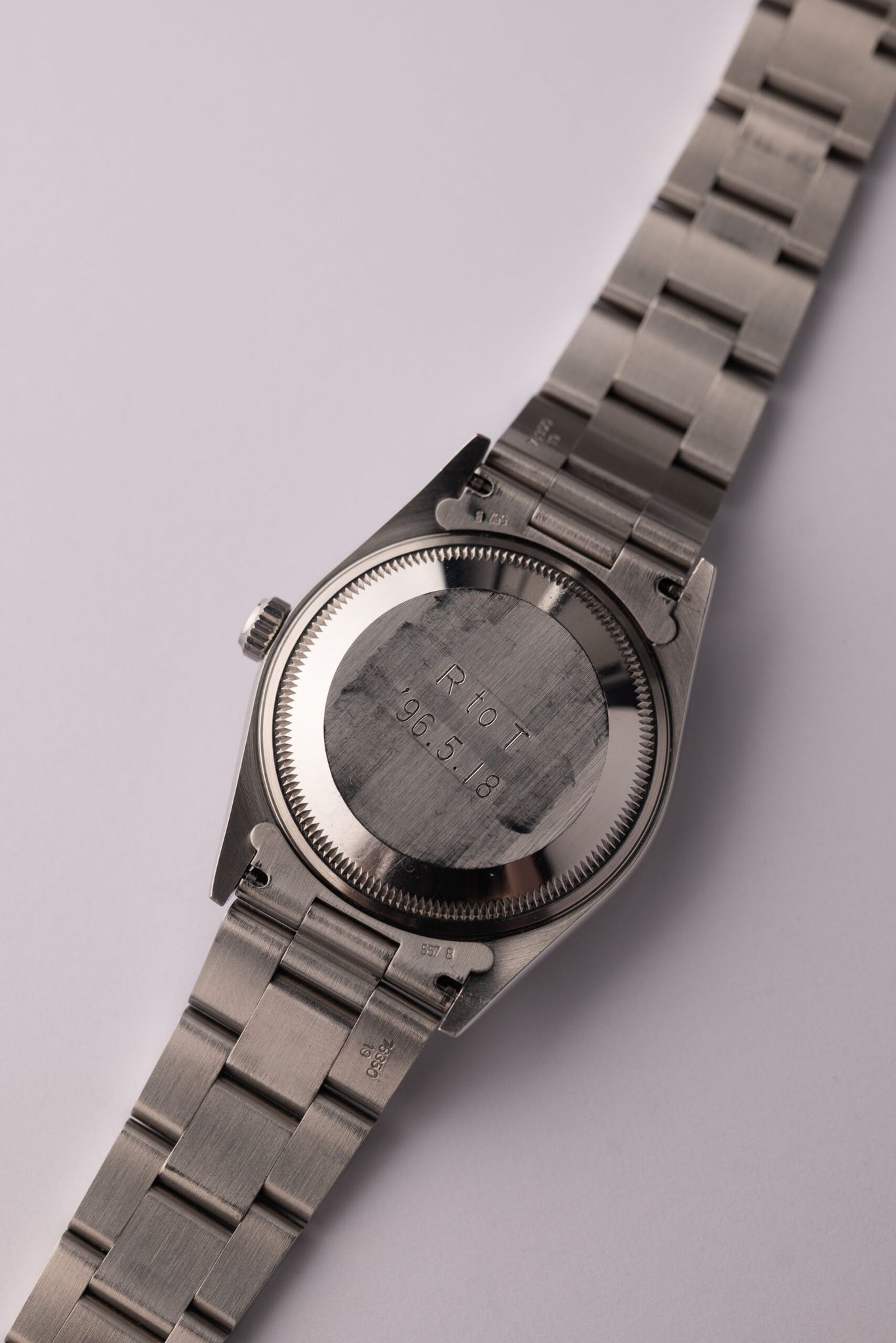 A beautiful 34mm turnograph style Oyster Perpetual with a tropical silver dial that has aged to champagne. Excellent case and beautiful lume plots.