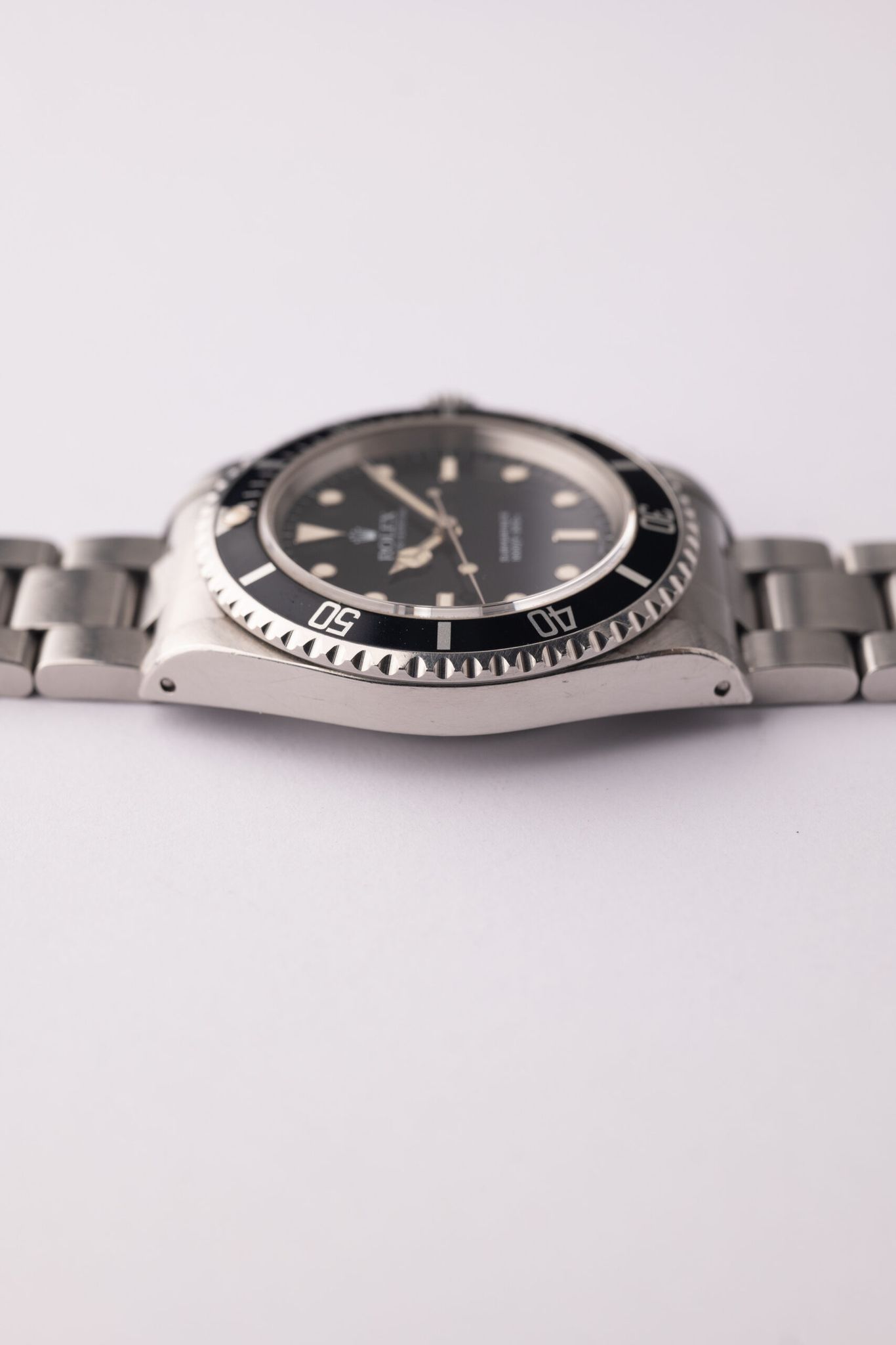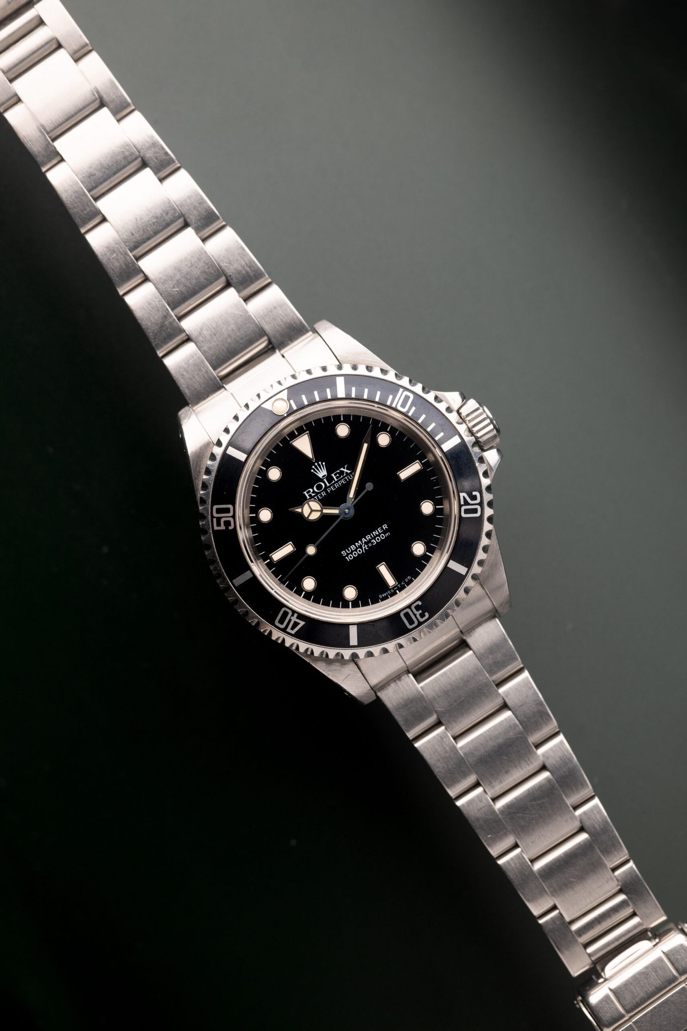 A minimalist neo-vintage tool-watch whose no-date aesthetic mirrors the pure function of Submariner lore. Purists and vintage enthusiasts alike appreciate the 14060 for its symmetrical dial sans date. The dial plots have turned a creamy yellow and contrasts nicely in which vintage and Neo-vintage dials are known to do.