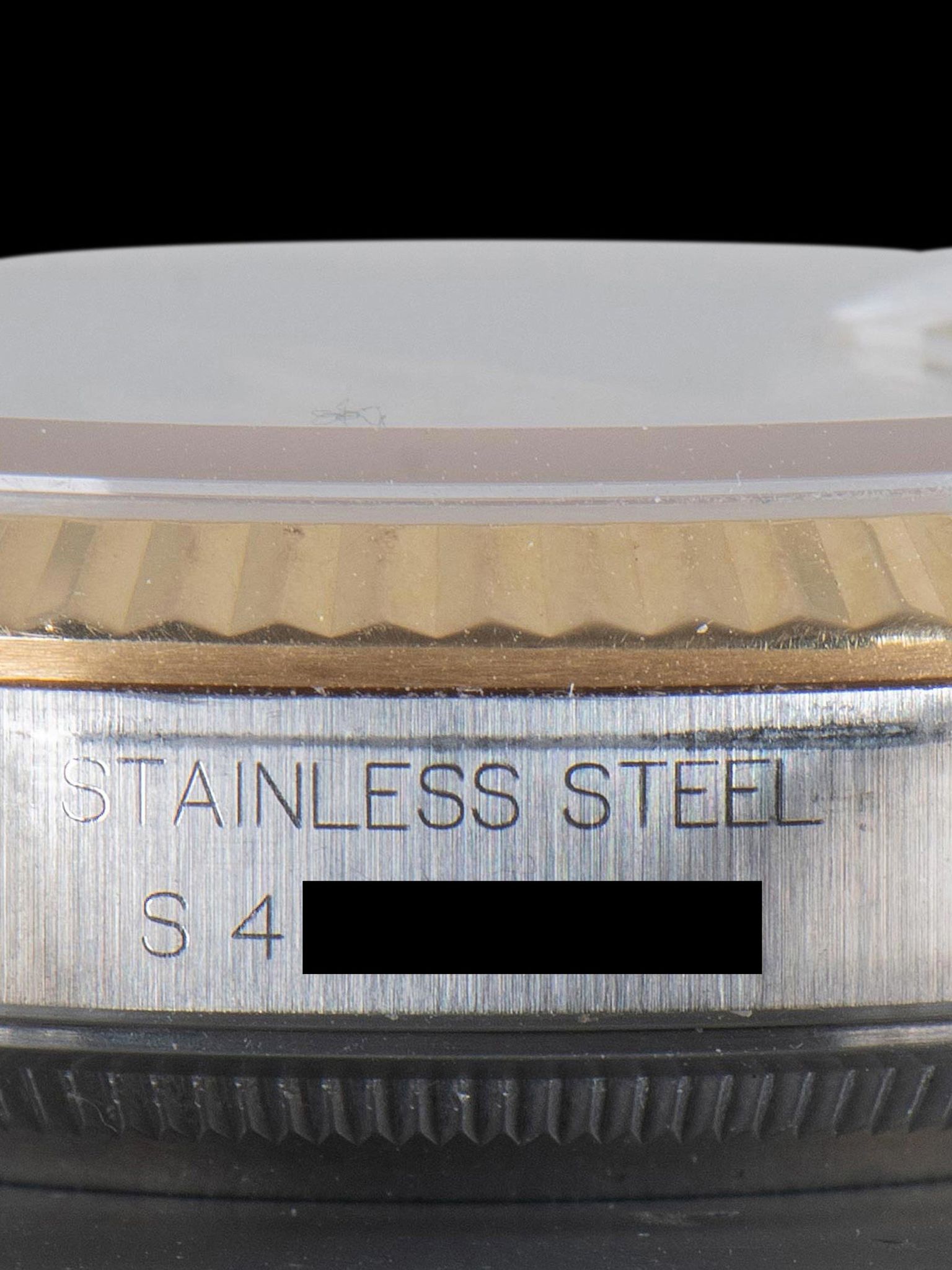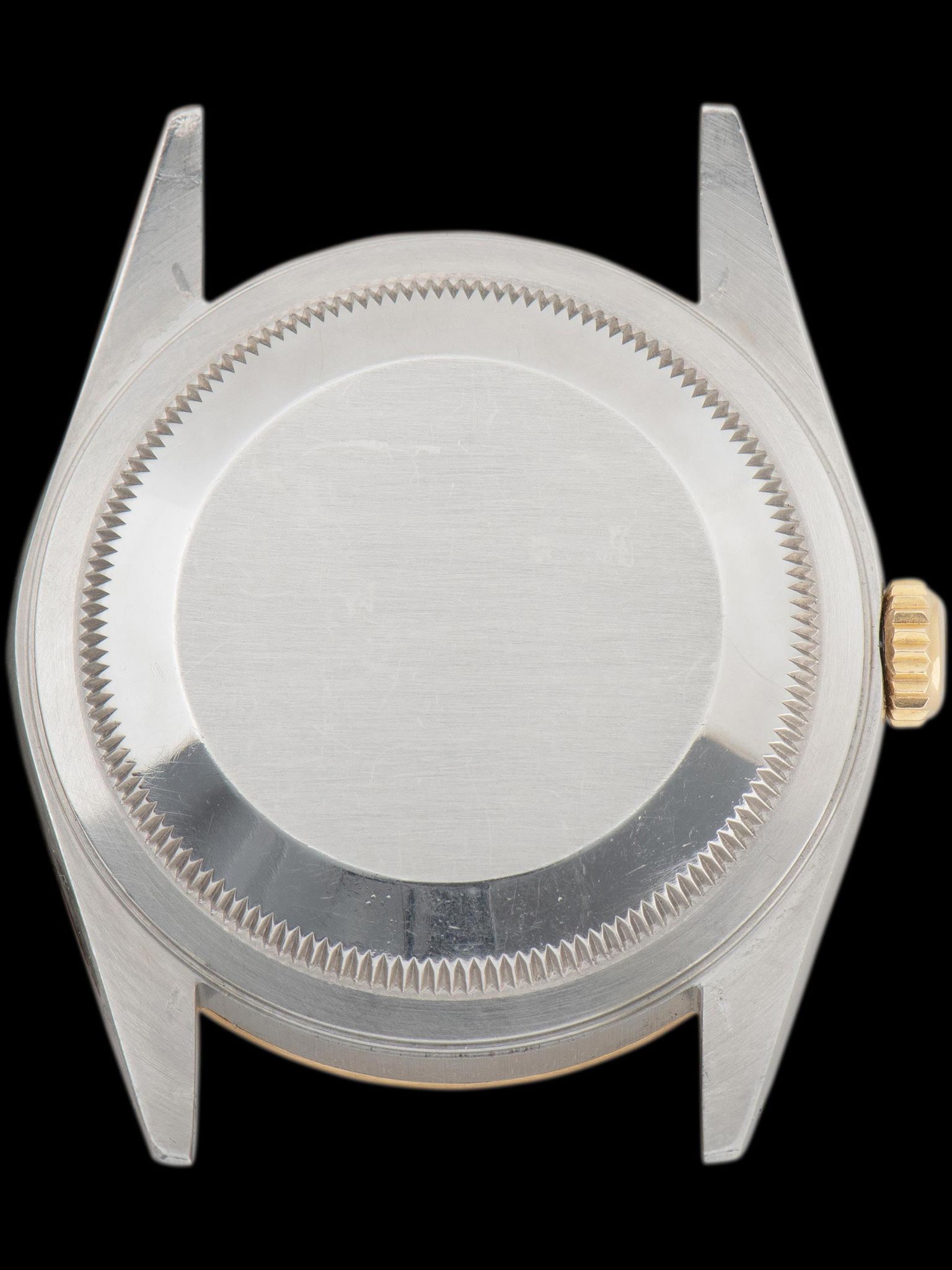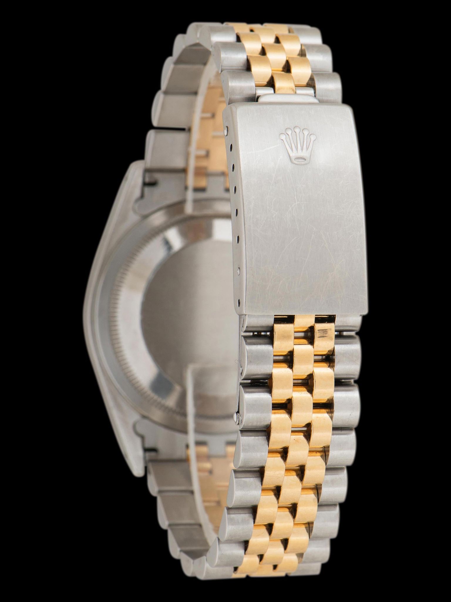 The excellent case retains crisp, full, and symmetrical lugs that show minimal evidence of previous polishing and light signs of honest use. The original 18K yellow gold fluted bezel features crisp angles and finishing throughout with only minor signs of previous use present. The original Rolex two-tone 62523H-18 Jubilee bracelet with 455B end pieces retains 20 links that show minor stretch and will fit up to a 7 1/2-inch wrist.