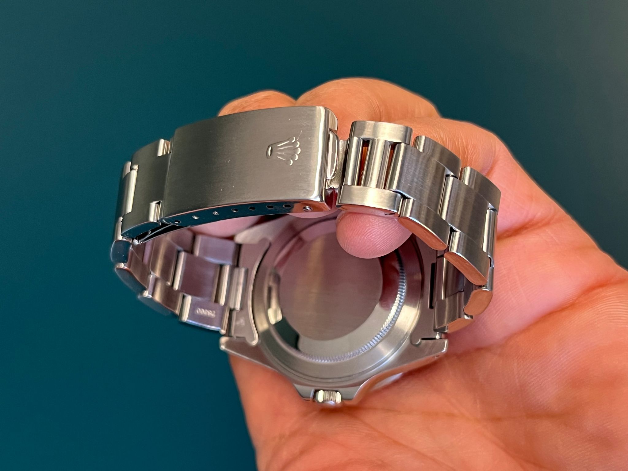 This example comes in nice vintage condition. The watch itself is in very nice pre owned condition. The case lugs are thick and even. The GMT Coke insert is excellent showing only light wear. The dial is excellent with matching patina. The bracelet has 11 total links and show very minimal stretch. Here is a very nice example that has a great look.