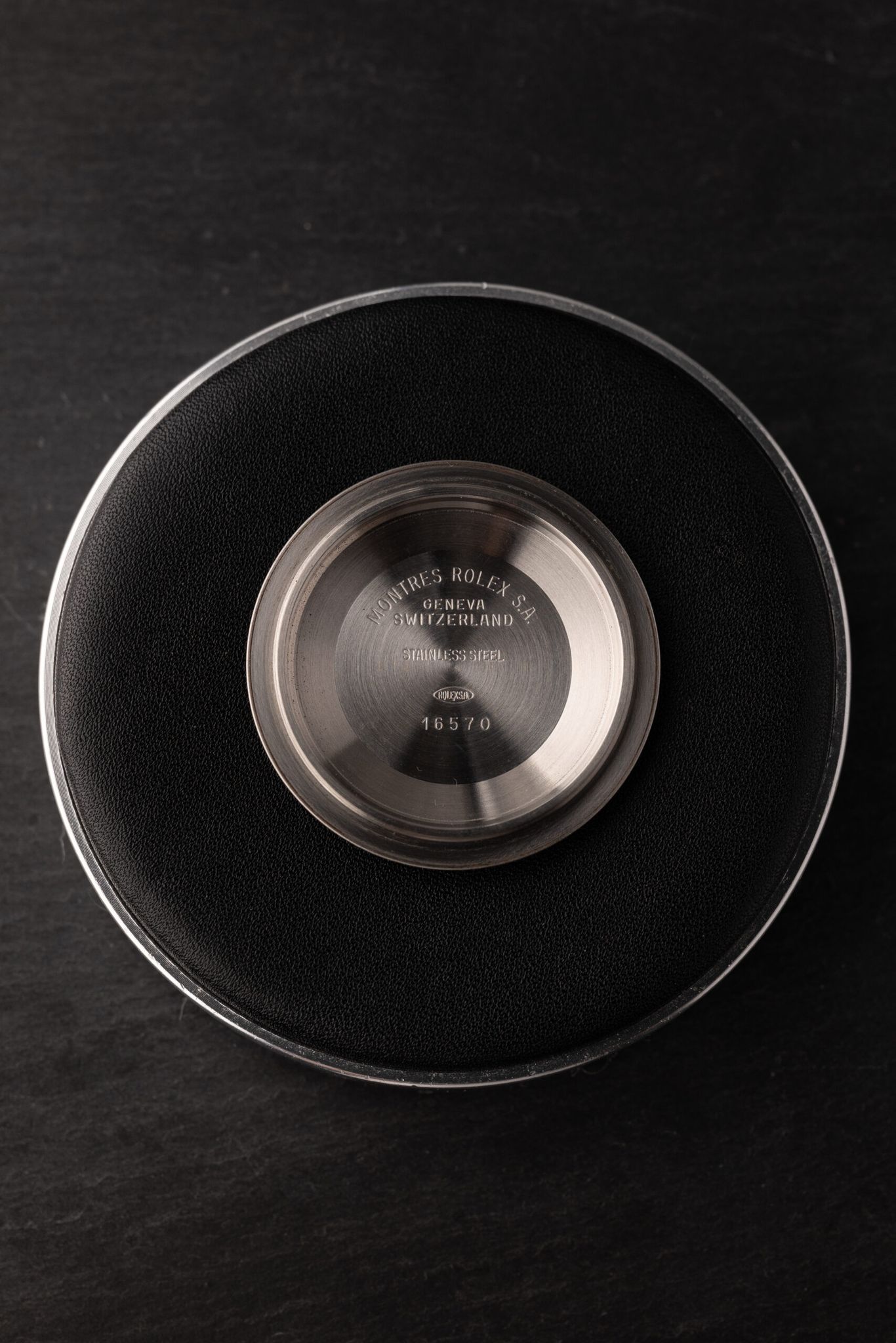Perfect for daily wear, the 16570 Polar is a neo-vintage tool watch. A recent light polish has preserved the thick case and sharp bevels, while the lume has aged to a pleasing cream tone. Often overlooked, the Polar 16570 offers rugged charm ideal for everyday carry.