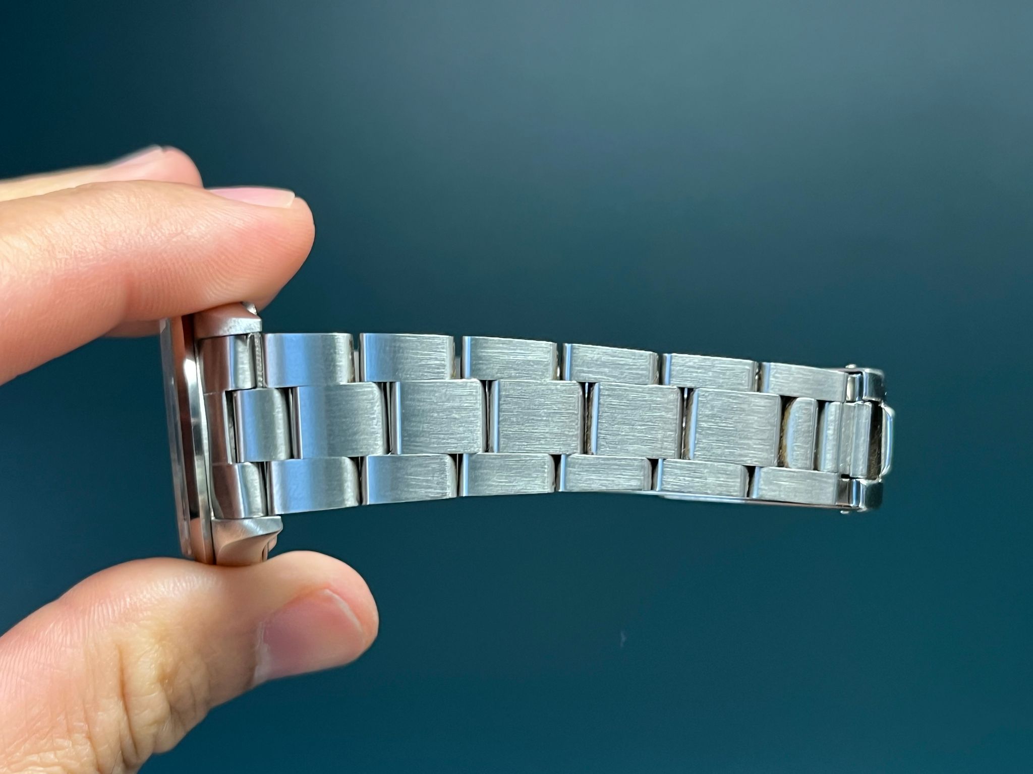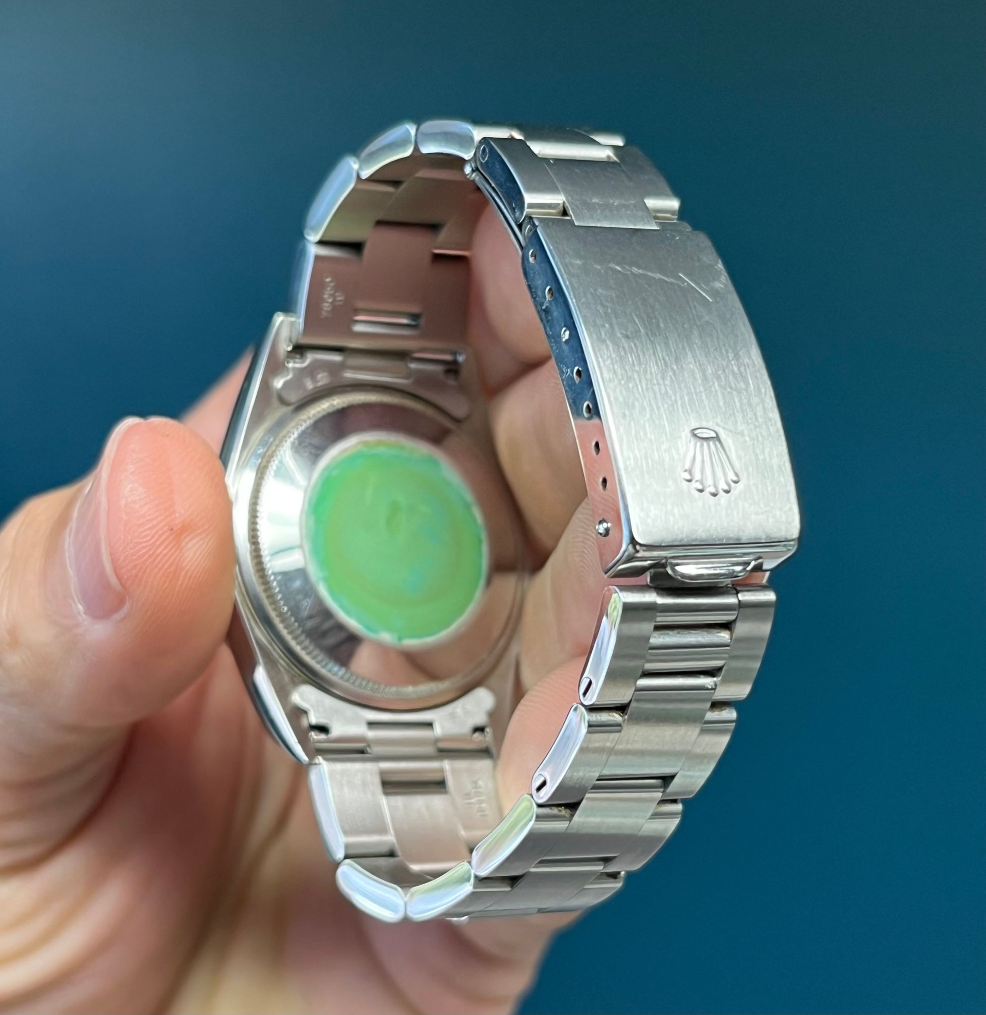 Today's example comes to us as a full complete set dated 8/15/95 with box, papers, tags, booklets, wallet and more. The unpolished no holes case is razor sharp and crisp, with the full case back sticker still present. The cream toned dial is excellent and has lots of charm. The bracelet has 12 links and shows no stretch. A top example in its reference class with a charming dial and its full set is now up for grabs.