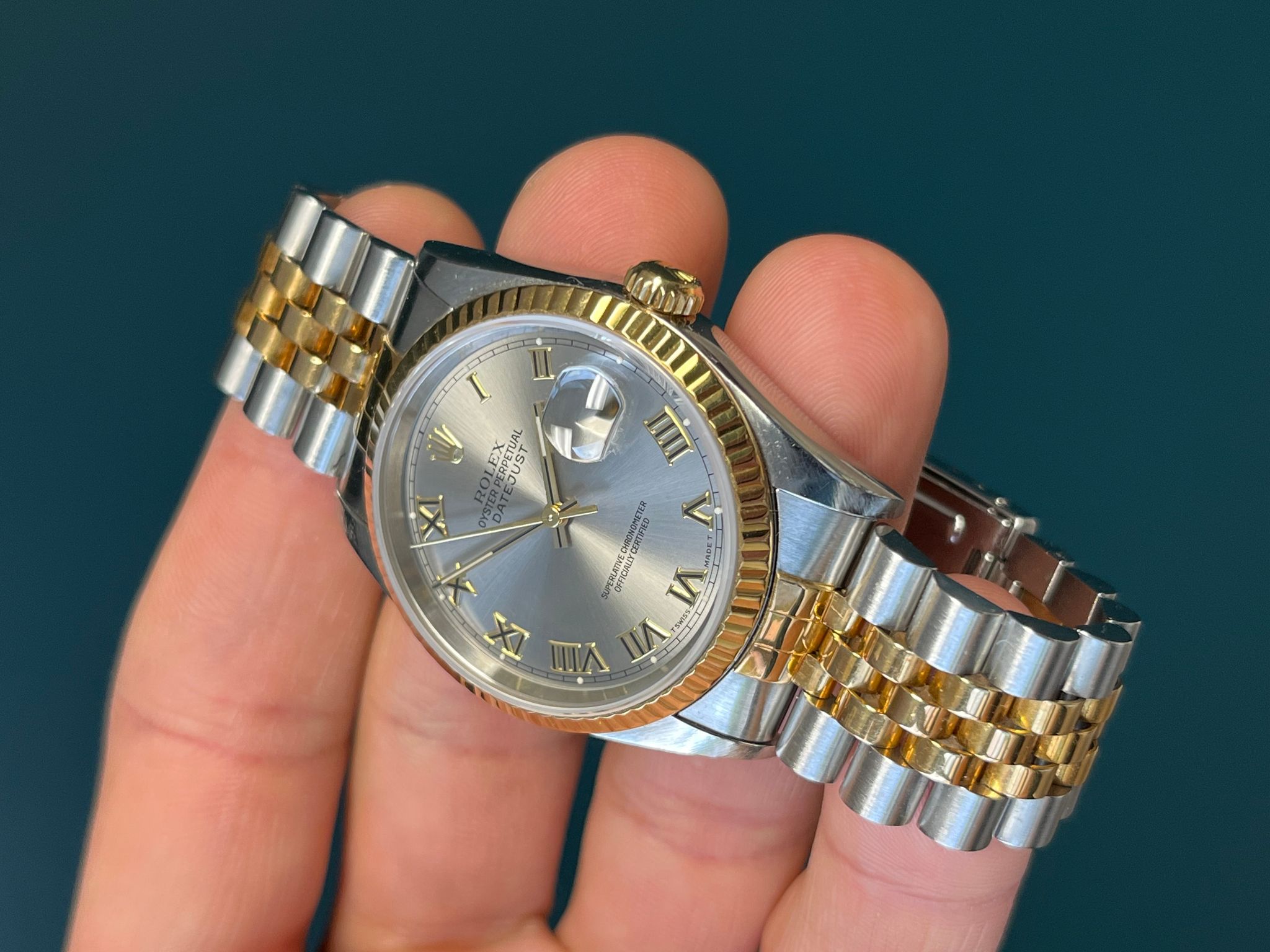 Rolex - 1995 Vintage Rolex Date Just Ref. 16233 No Holes Grey Roman Dial