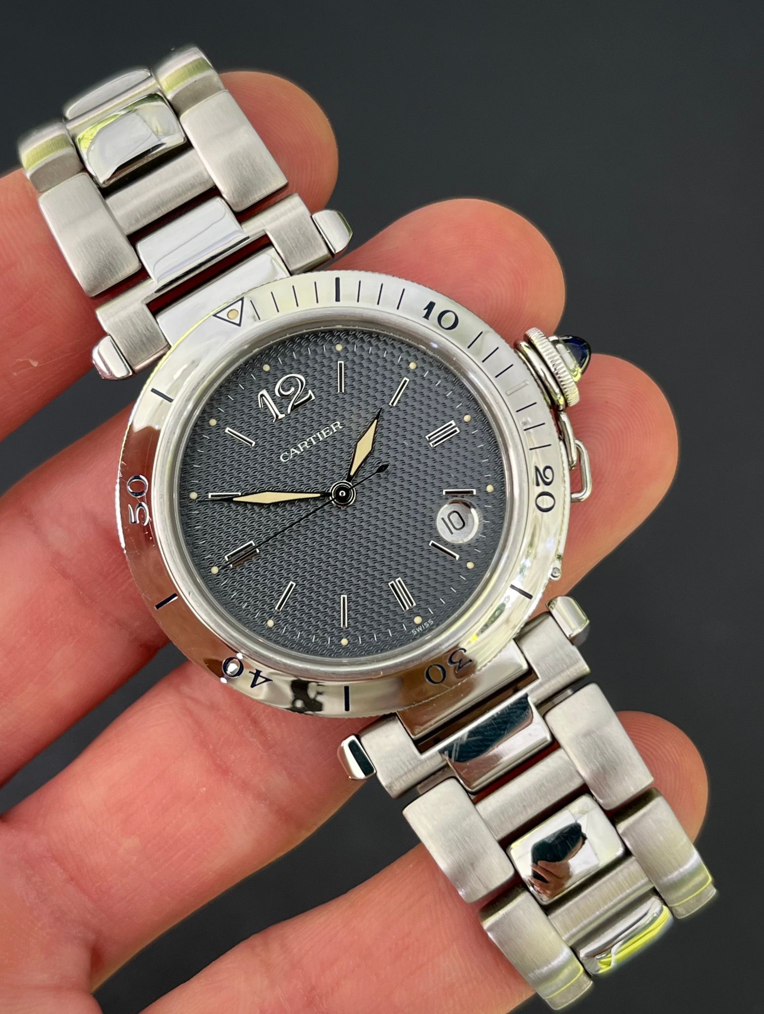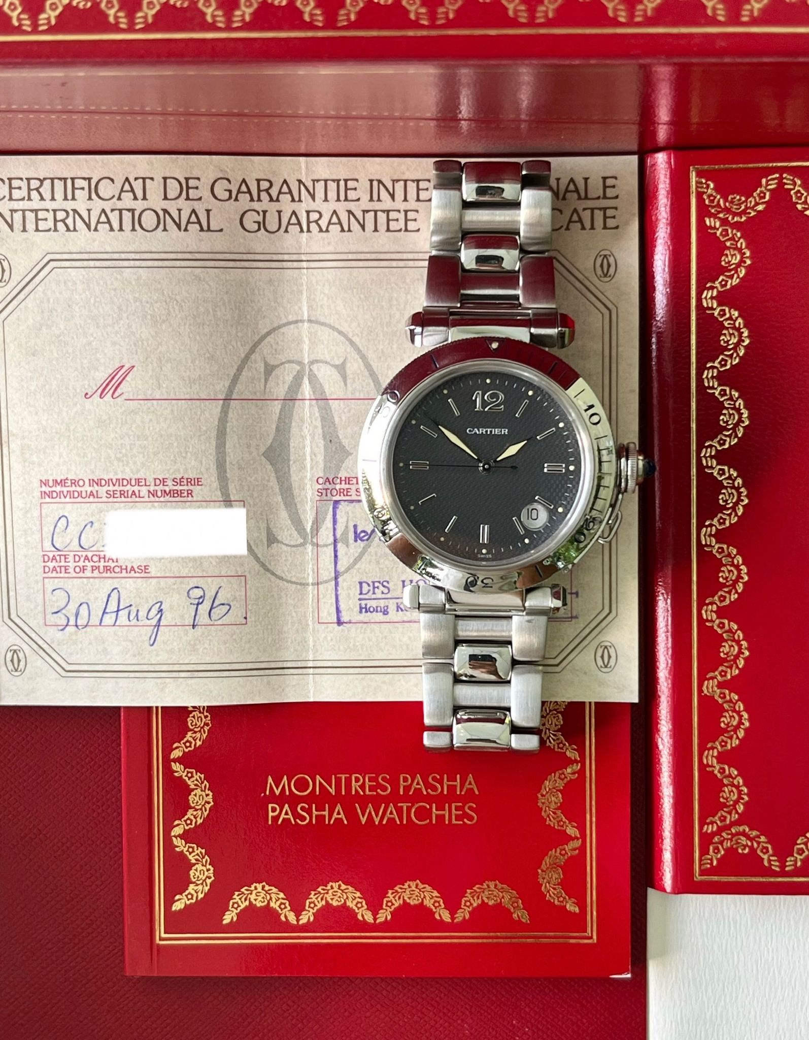 Cartier - 1996 Vintage Cartier Pasha Ref. 1040 (W31017H3) Full Complete Set Guilloché dial
