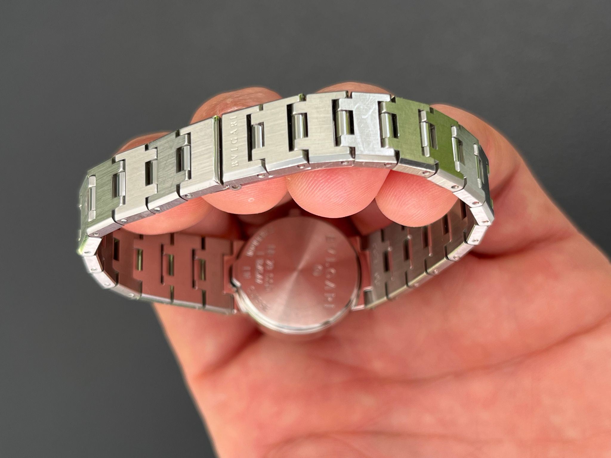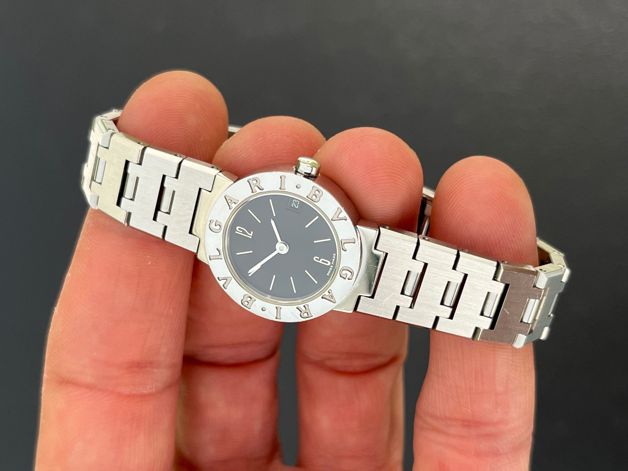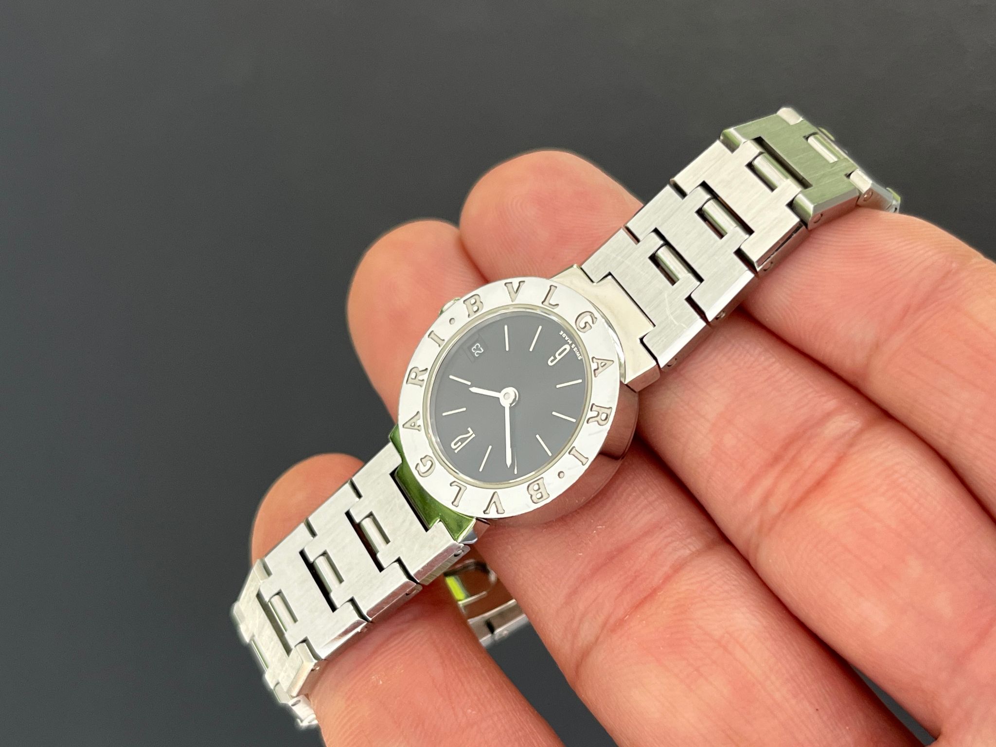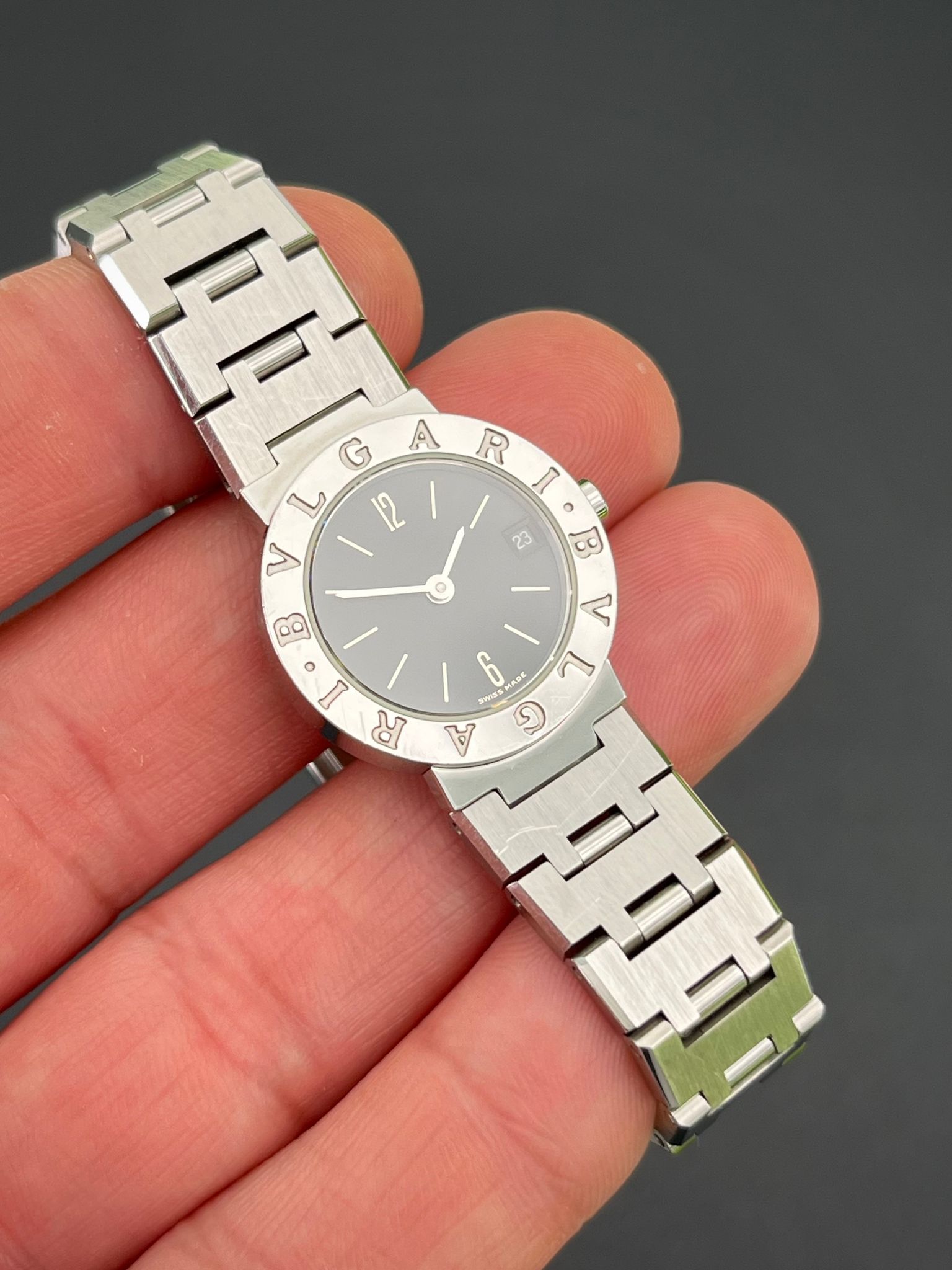 The ladies' Bvlgari reference L184644 is an elegant and timeless wristwatch that epitomizes Italian luxury and precision. Its refined stainless steel case and bracelet feature the iconic Bvlgari “Bvlgari Bvlgari” branding on the bezel, highlighting the brand’s unique and instantly recognizable style. The dial, minimalist in design, radiates sophistication with its classic layout, making it perfect for daily wear or special occasions. This complete set includes the original box, papers, and full documentation, underscoring its value for collectors and ensuring authenticity. For those seeking a refined, versatile timepiece with heritage and luxury, the Bvlgari L184644 makes a beautiful and enduring choice.