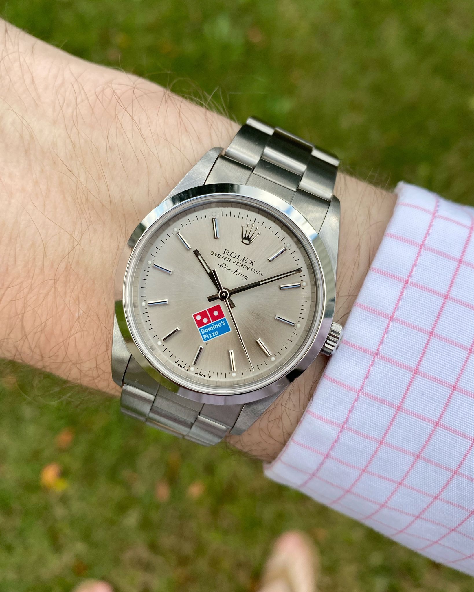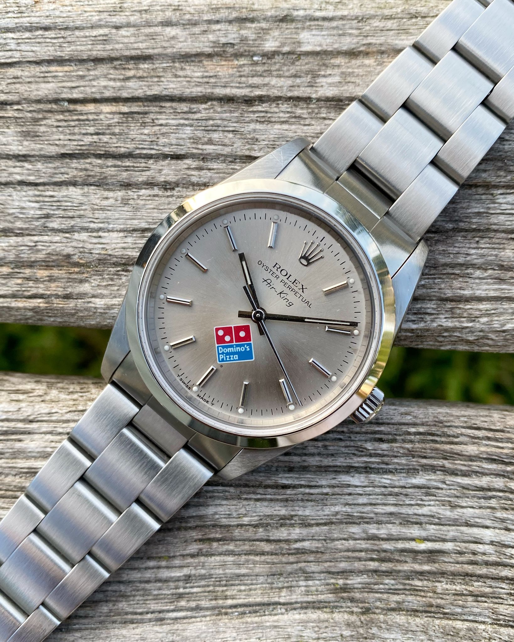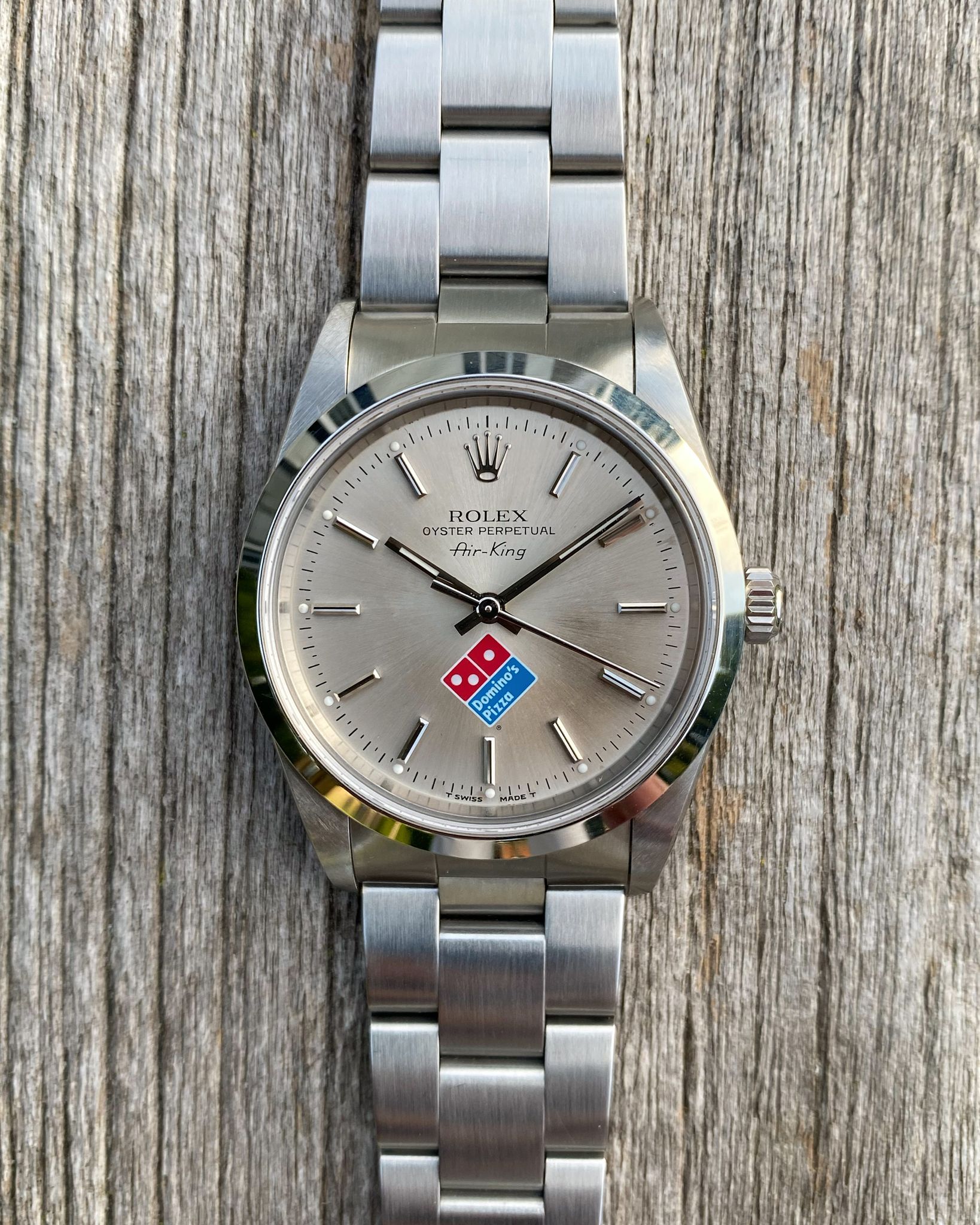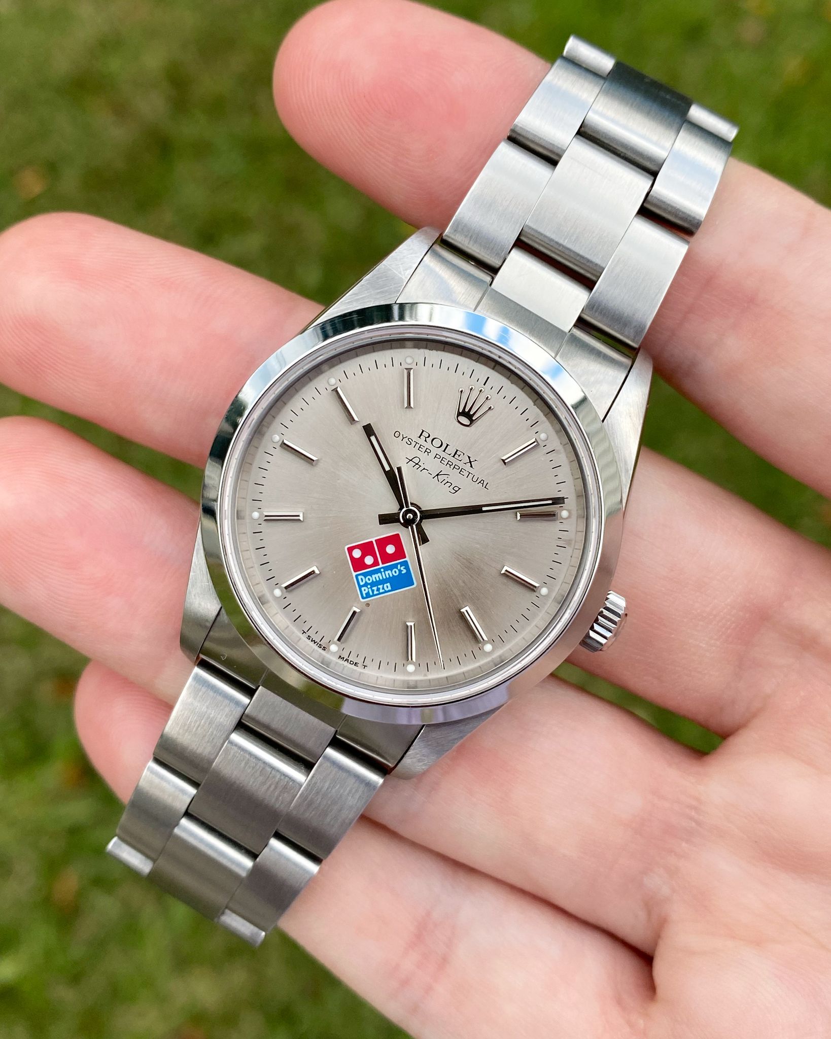 Rolex - 1997 Rolex 14000 Air-King Dominos Pizza Tilted Logo Tritinova Dial No Holes Case