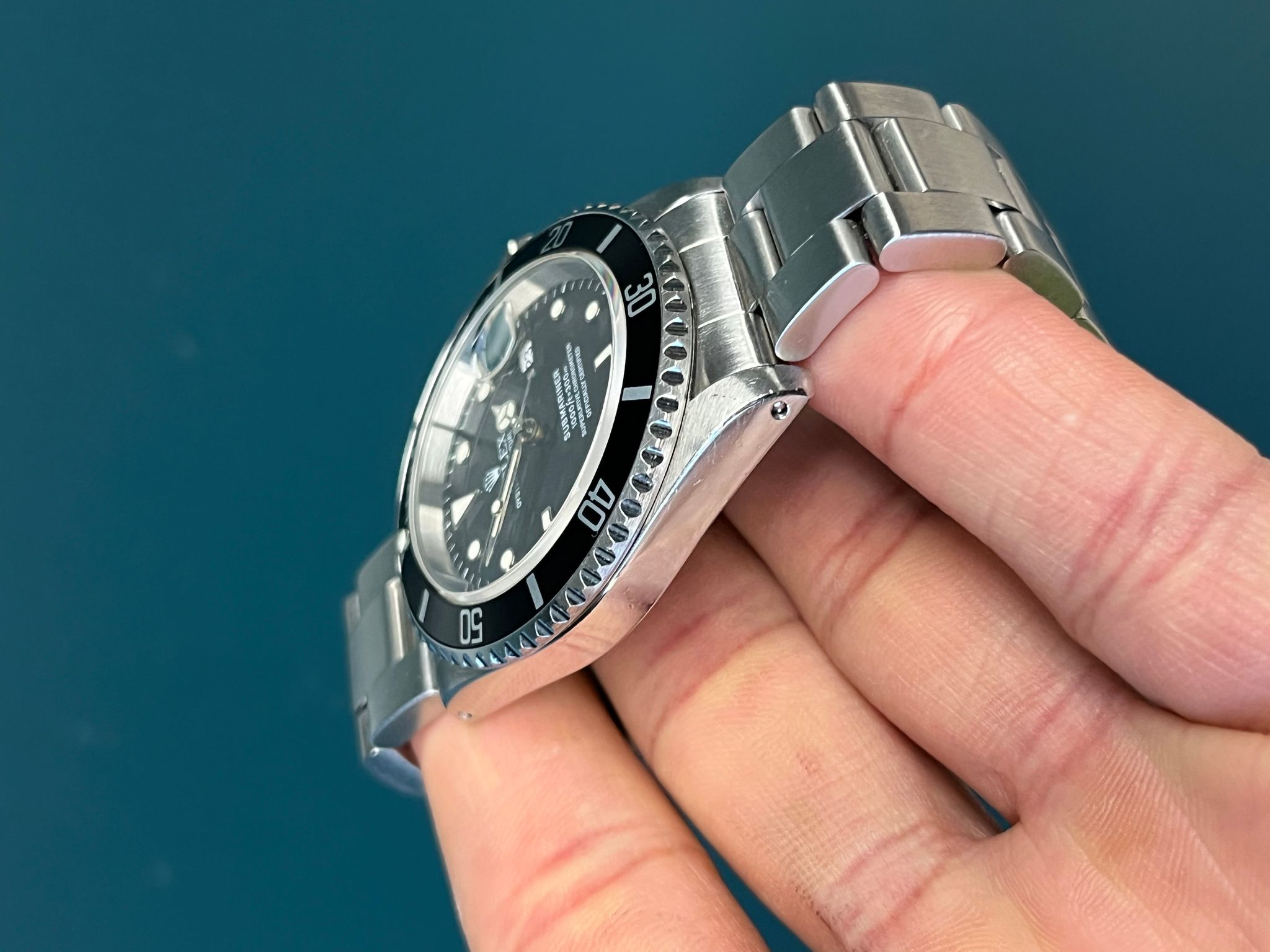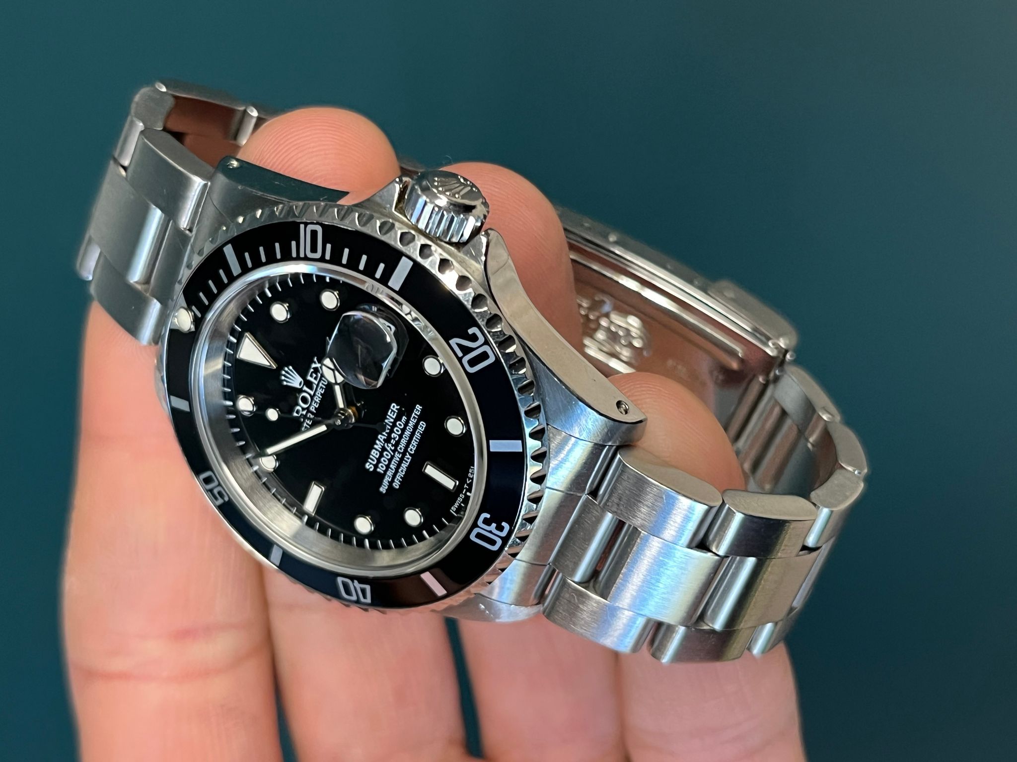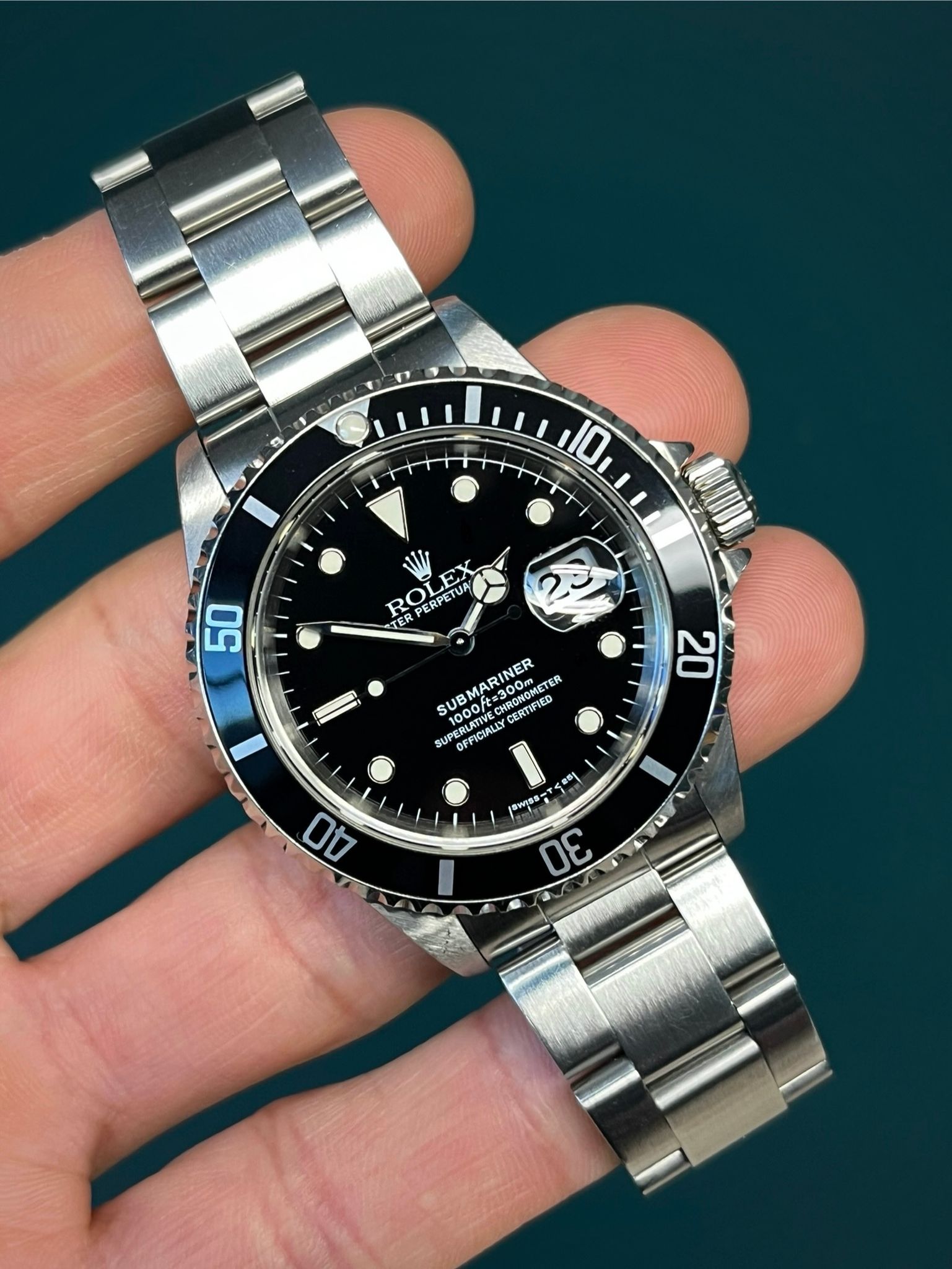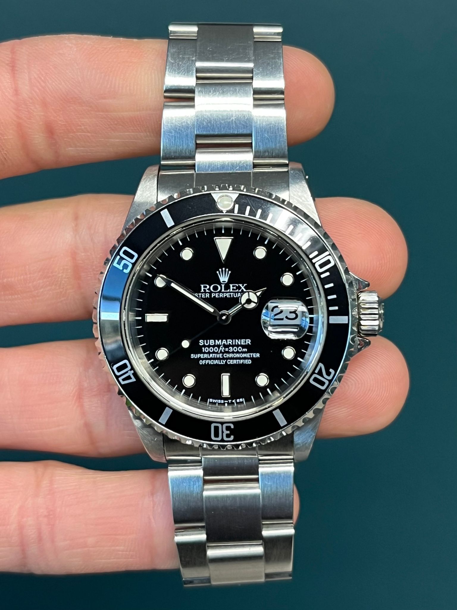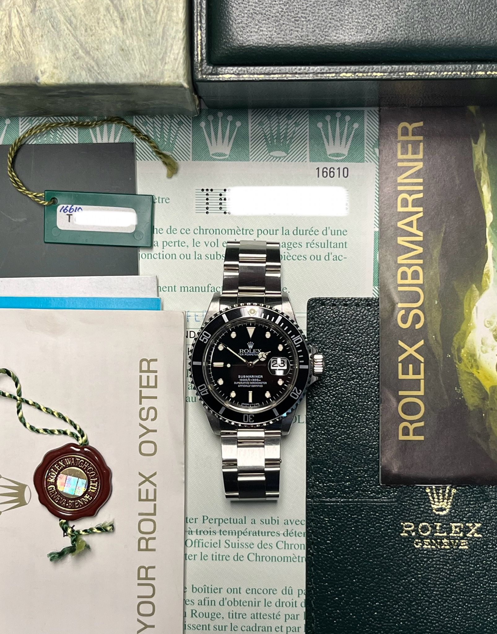 The Rolex 16610 is a highly sought-after vintage timepiece known for its distinctive design. This classic Submariner model, produced until the mid-2000s, features a stainless steel case giving it a sleek and timeless appearance. Renowned for its durability, water resistance, and iconic aesthetics, the Rolex 16610 is a beloved choice among watch enthusiasts and collectors.