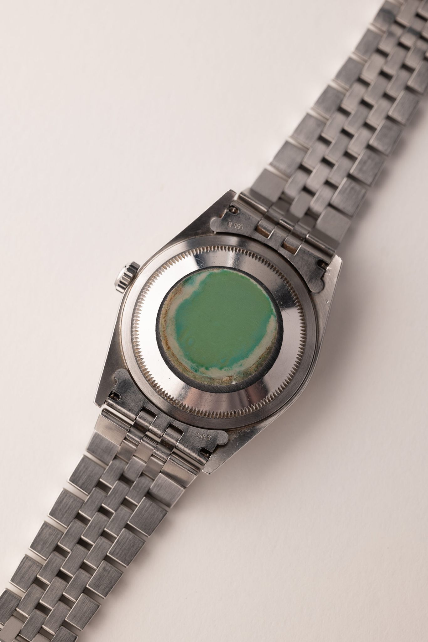 A beautiful glossy 16234 with black dial and white chapter ring circle. Case is unpolished and bracelet is very stiff and sharp.