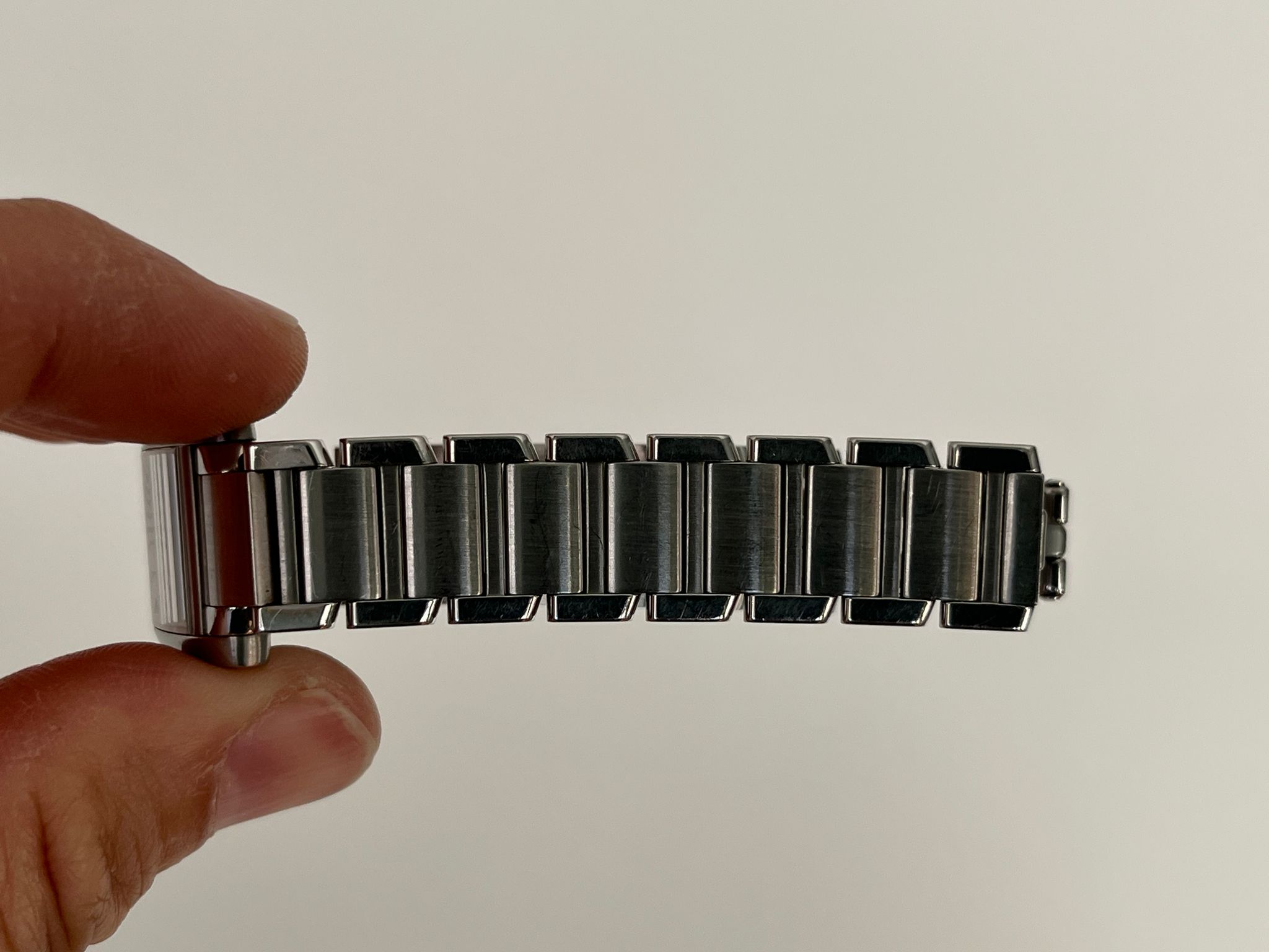 Today's example comes to us in excellent preowned condition and has a fully linked bracelet showing no stretch along with its original Papers dated 12/7/98. Mounted with a new battery, this example is running excellent and keeping time.